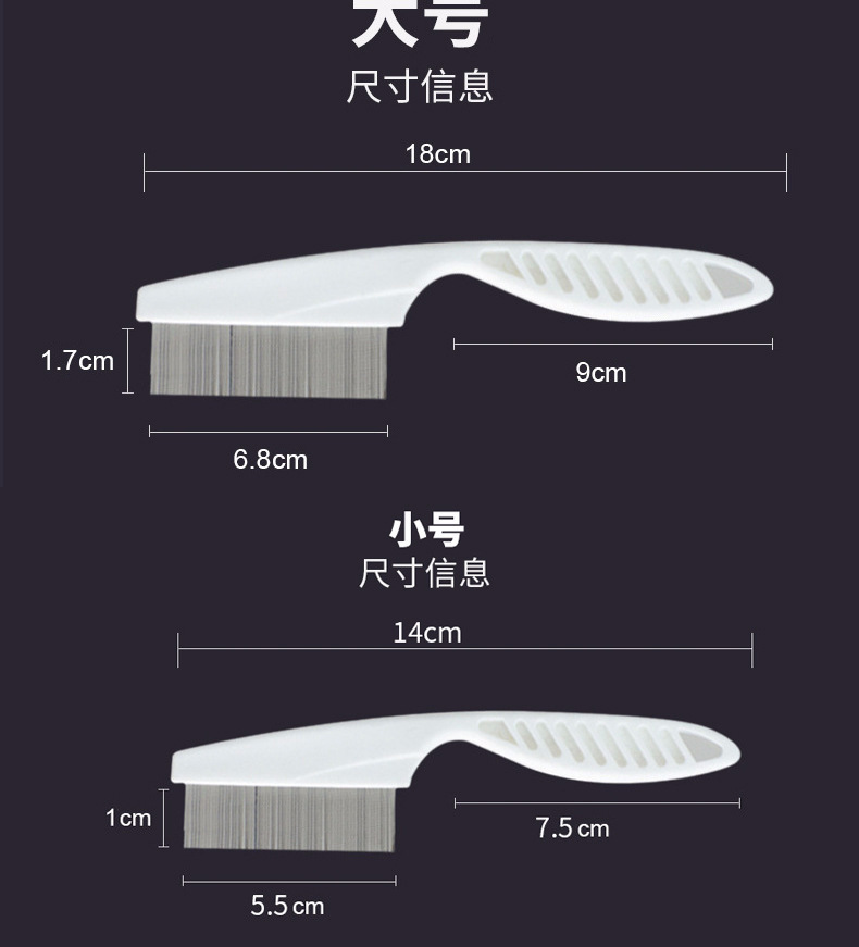 개 고양이 애완 동물 가게 청소 얼굴 빗 벼룩 제거 빗 플라스틱 손잡이 강철 바늘 부동 머리 제거 작은 흰색 빗