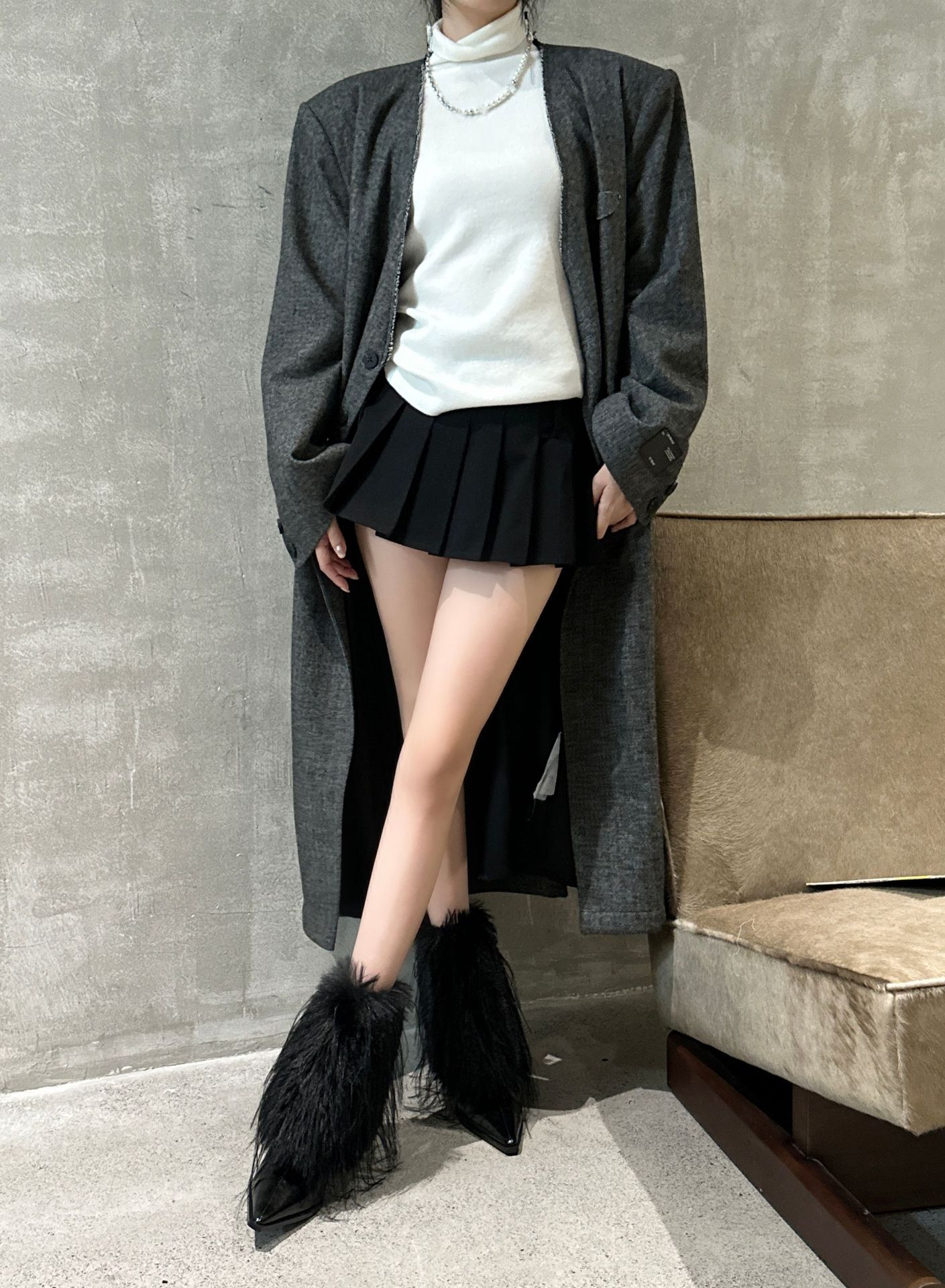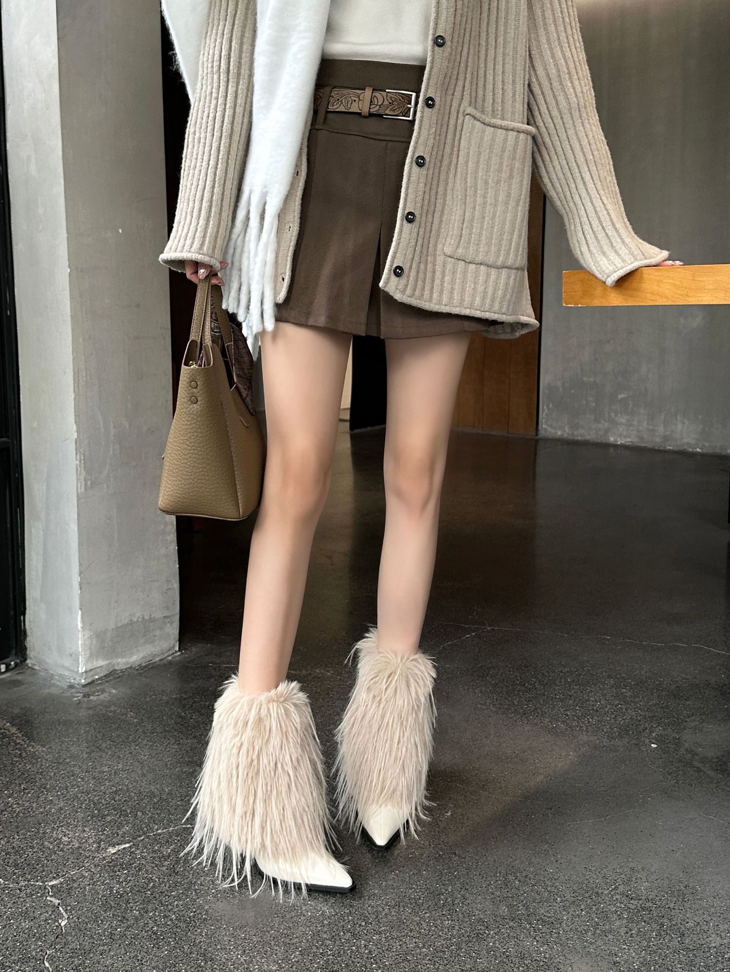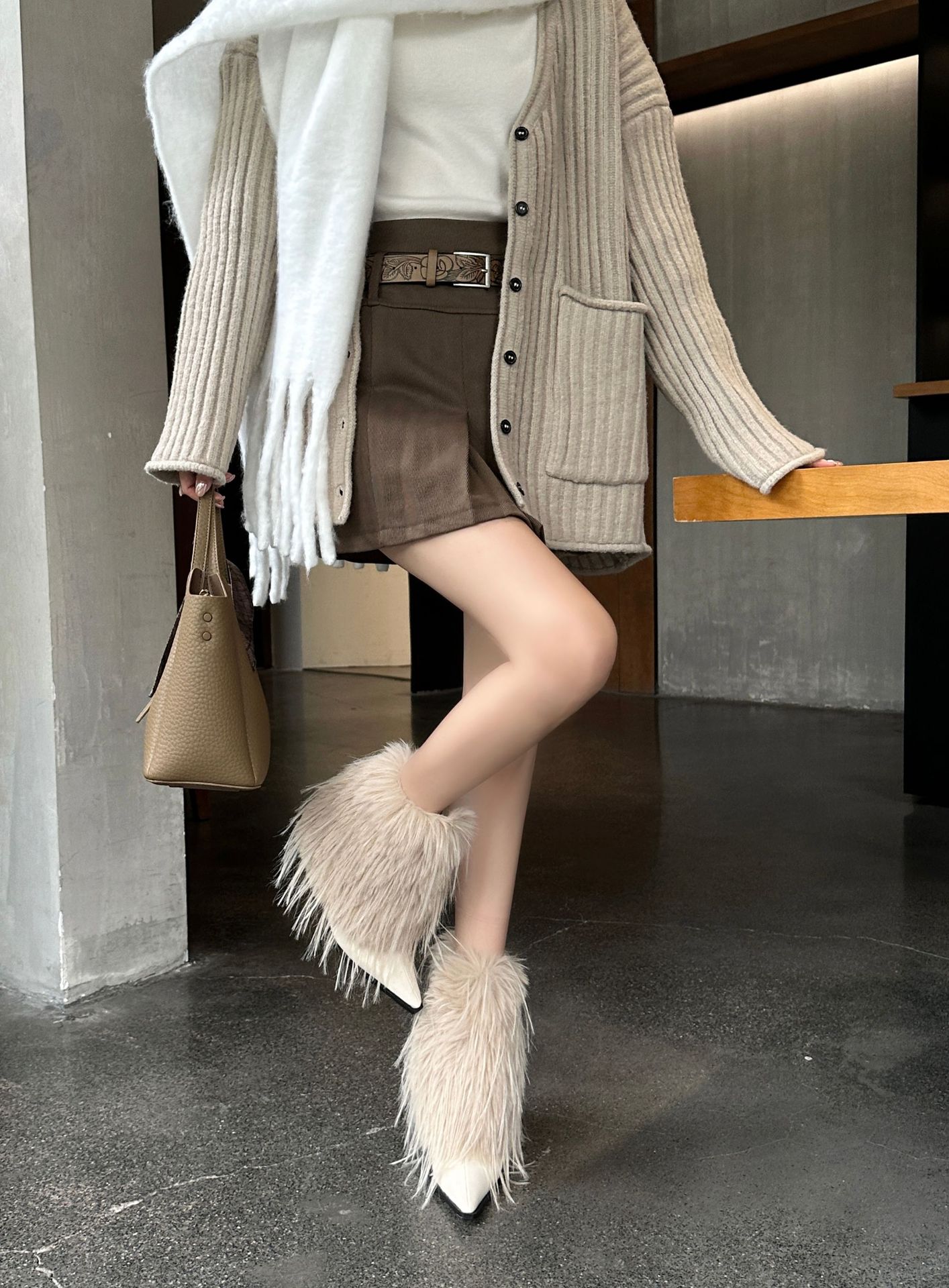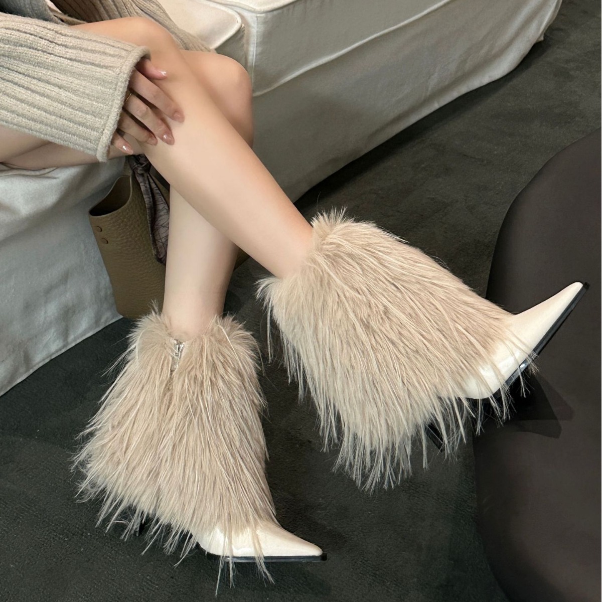 유럽과 미국의 모피 모피 부츠 따뜻한 패션 하이힐 부츠 2023 가을과 겨울 여성을위한 새로운 뾰족한 로우 튜브 여성용 부츠 스노우 부츠스토어 가기