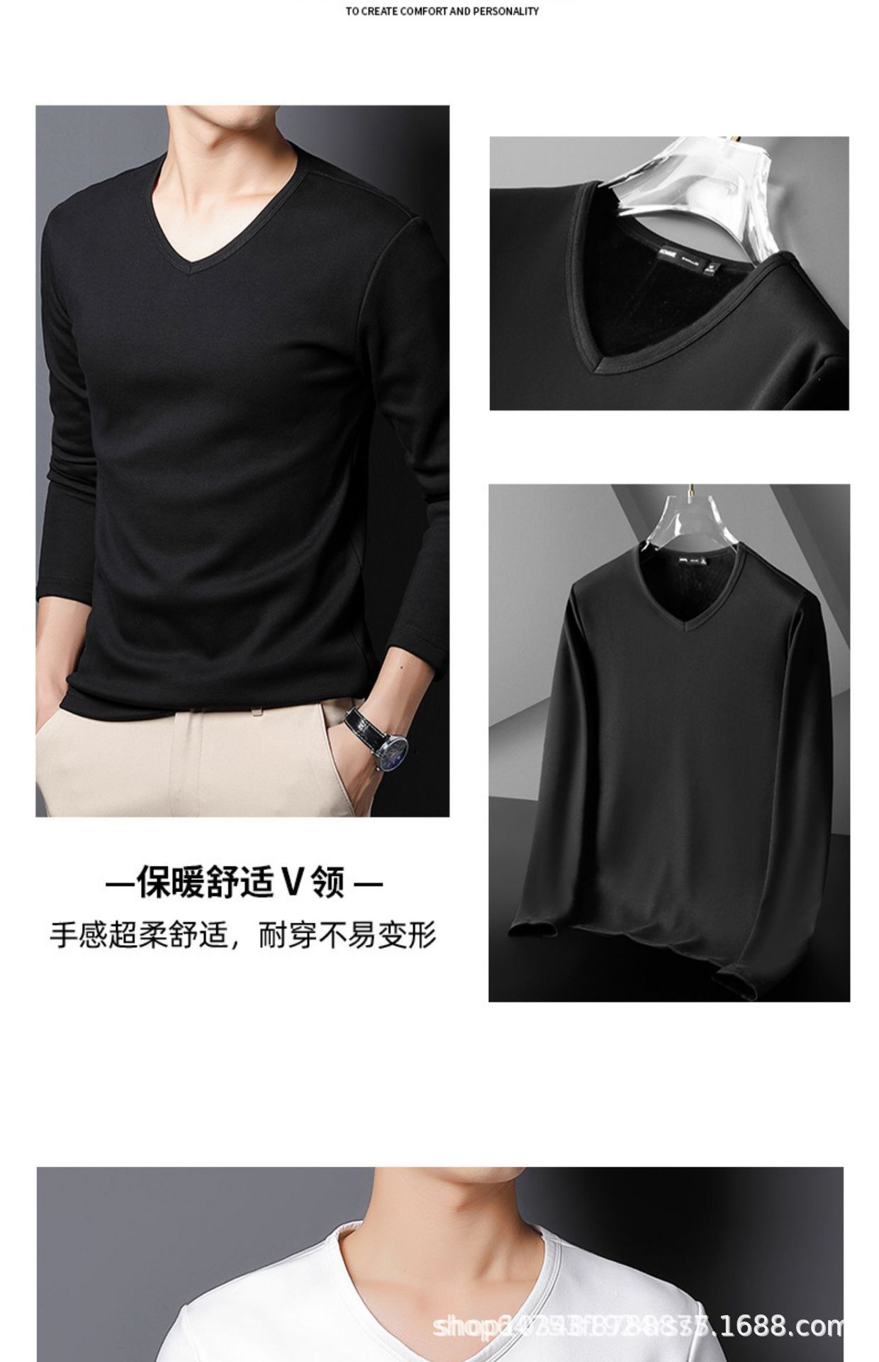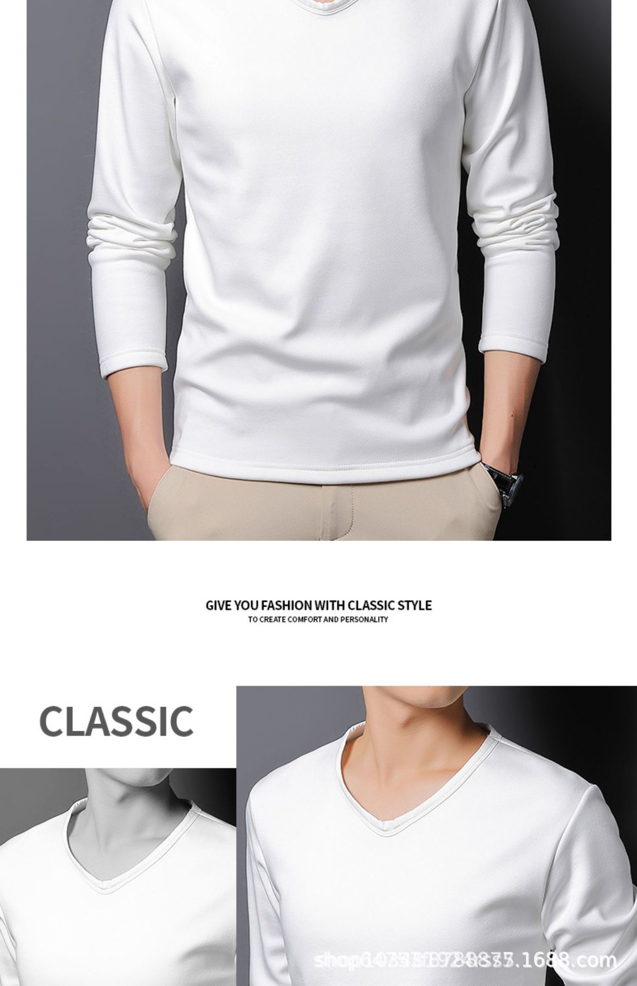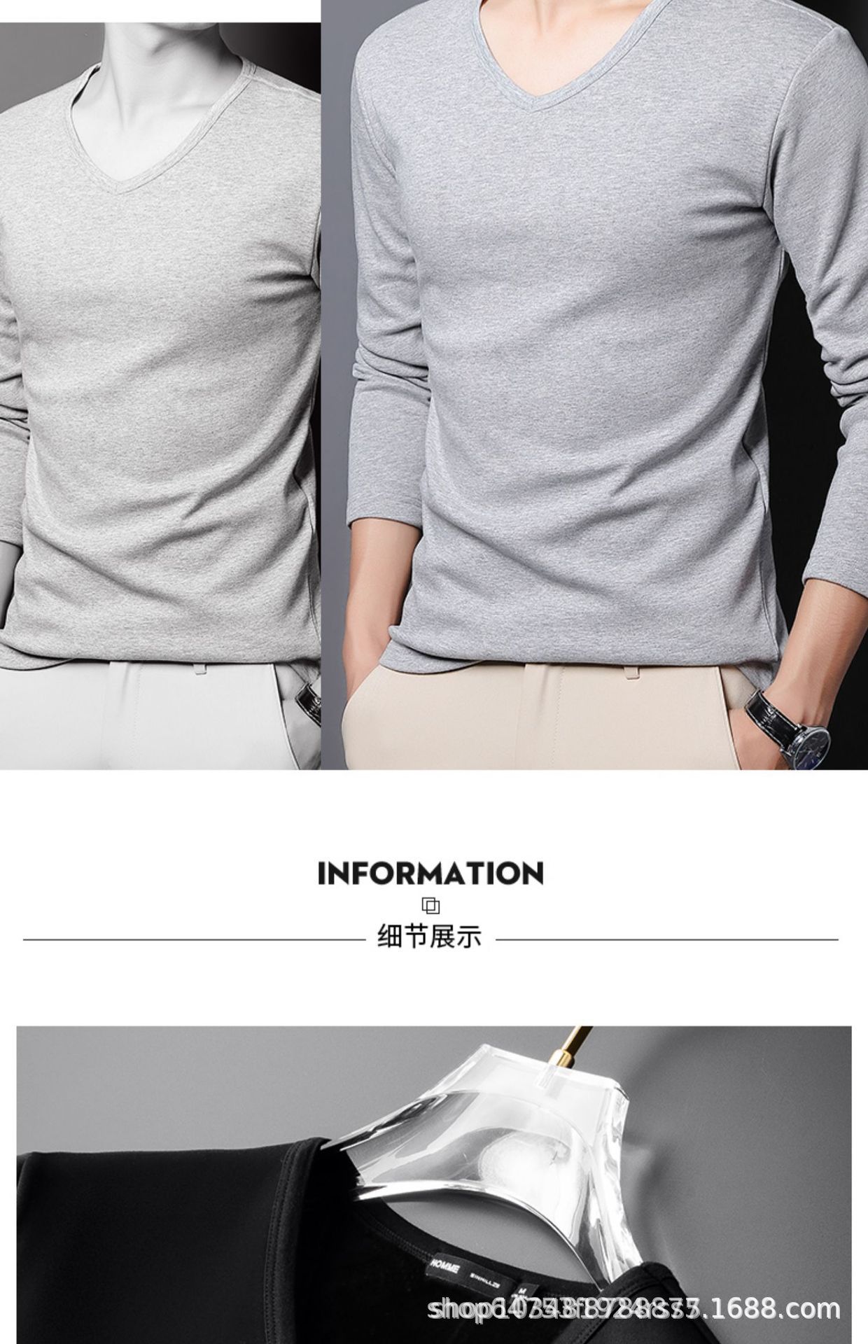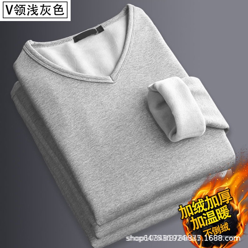 기모 남성 긴팔 티셔츠 봄 가을 옷 열 속옷베이스 셔츠 솔리드 컬러 라운드 V-넥 비즈니스 최고 대외 무역스토어 가기