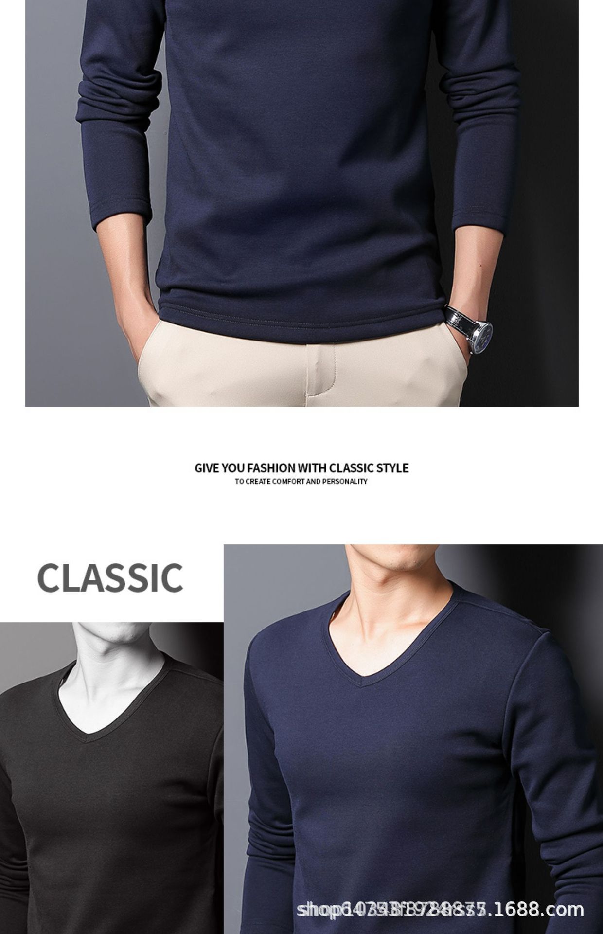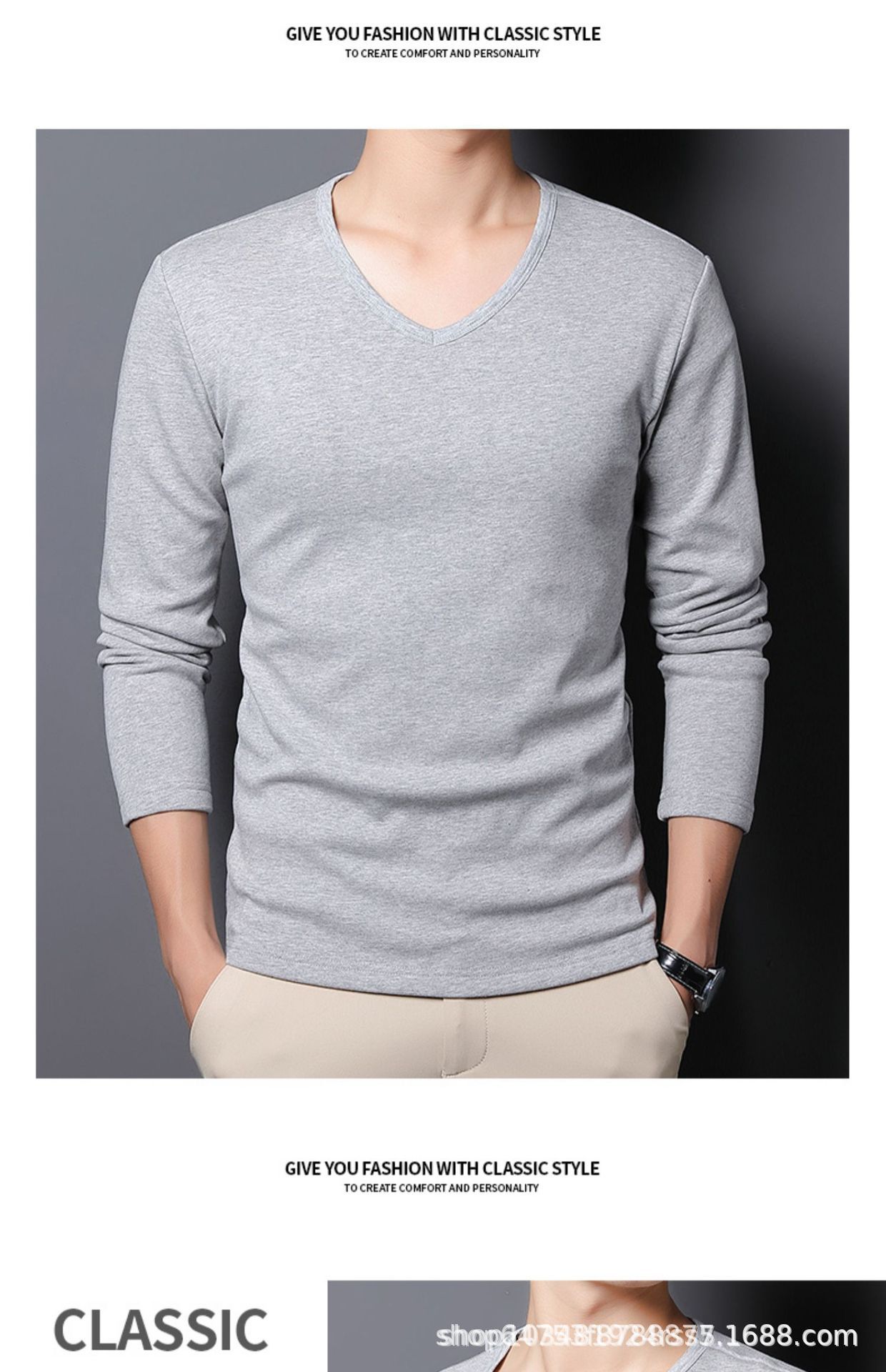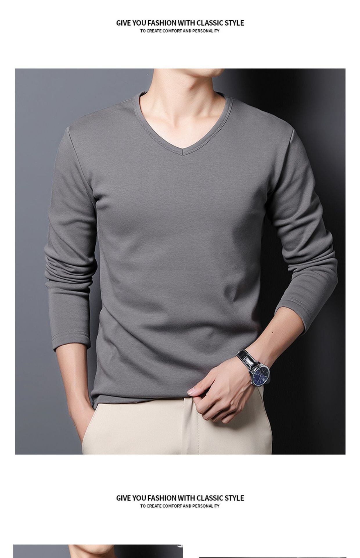 기모 남성 긴팔 티셔츠 봄 가을 옷 열 속옷베이스 셔츠 솔리드 컬러 라운드 V-넥 비즈니스 최고 대외 무역스토어 가기