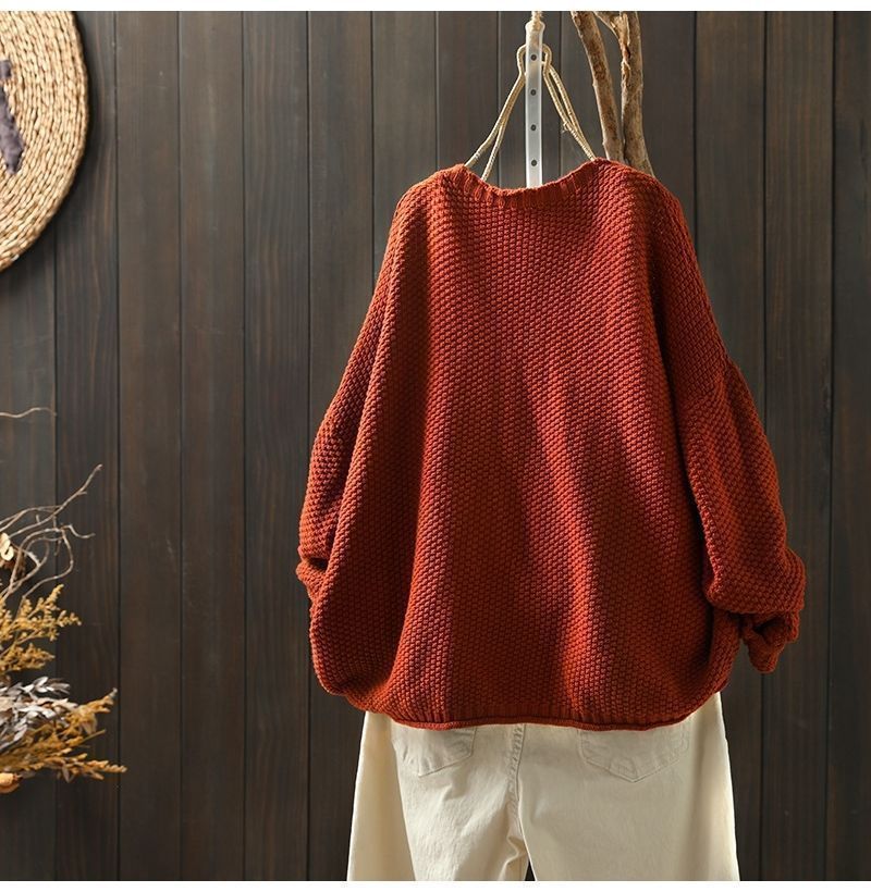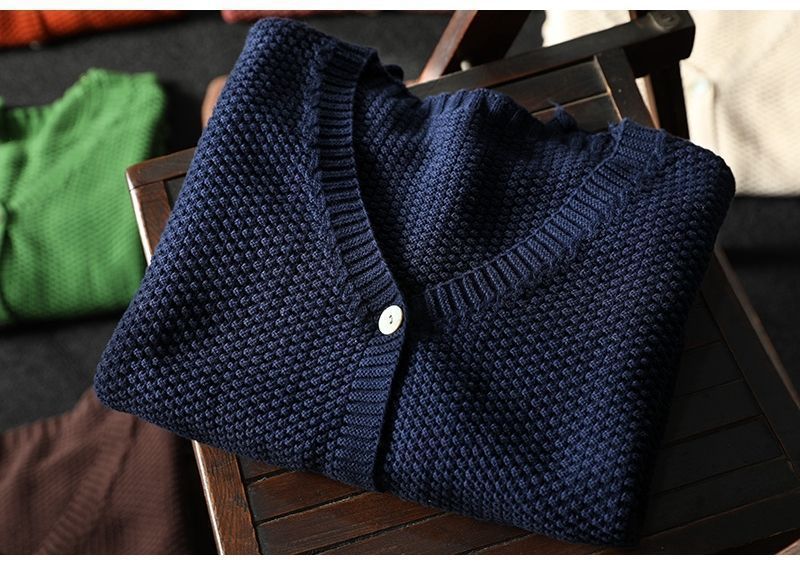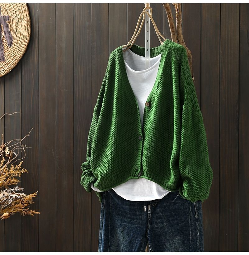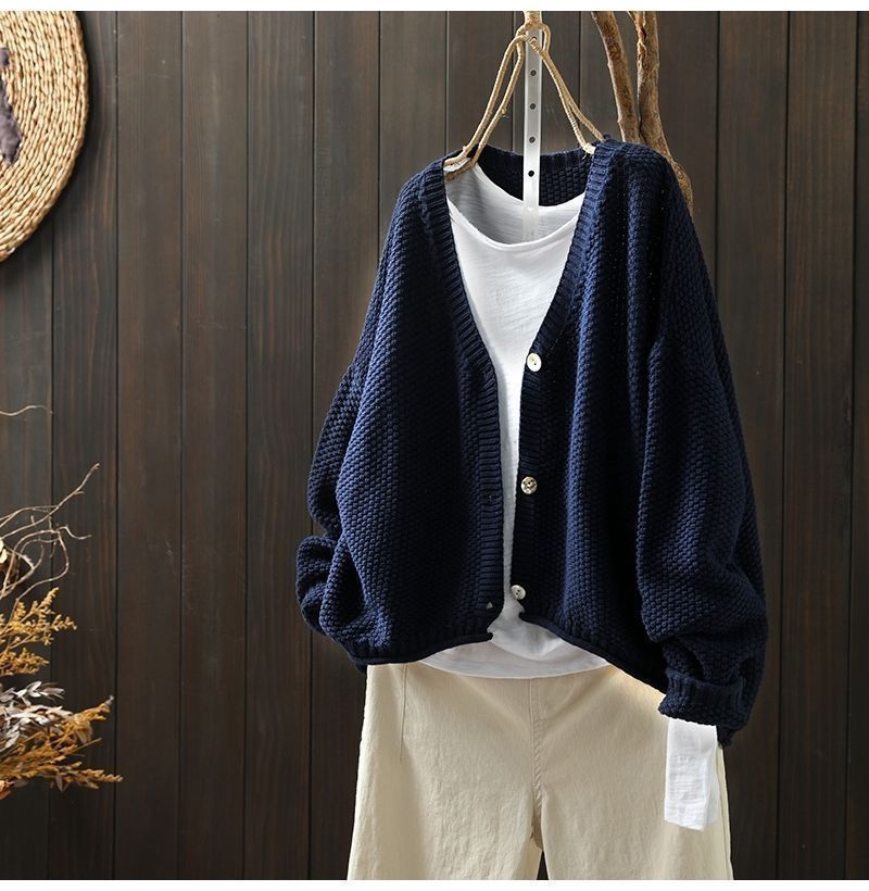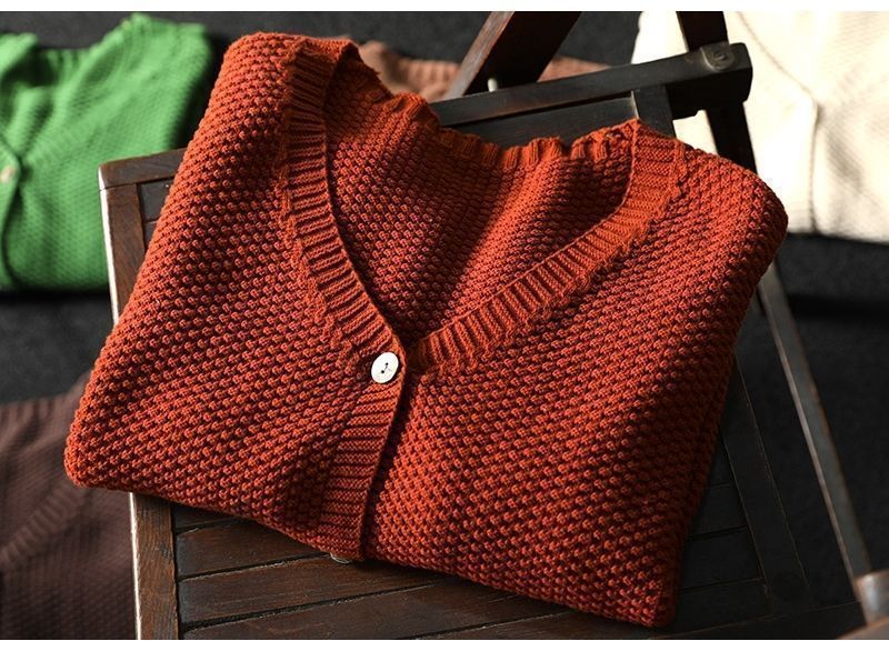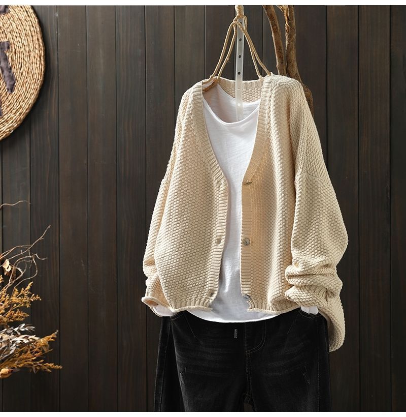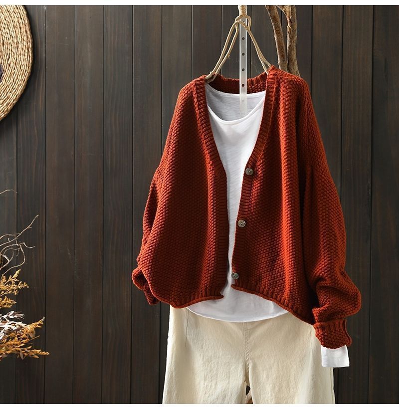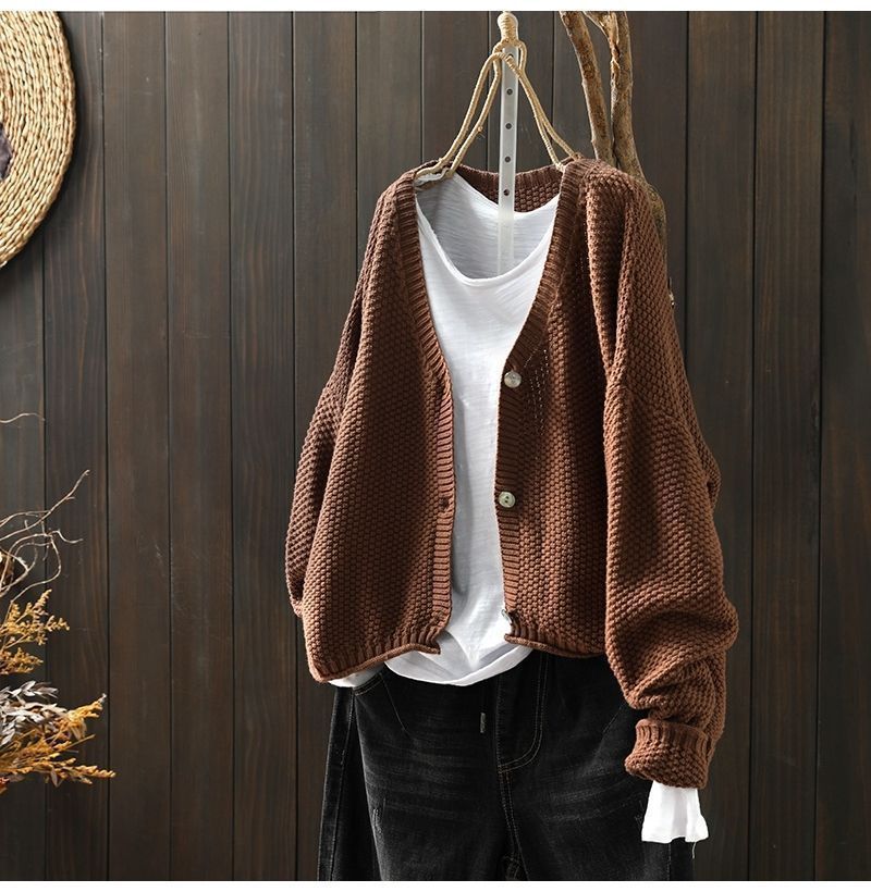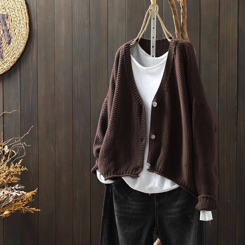 가을 새로운 예술적 올 매치 느슨한 짧은 스웨터를 2023 여성을위한 레트로 V 넥 코튼 니트 코트스토어 가기