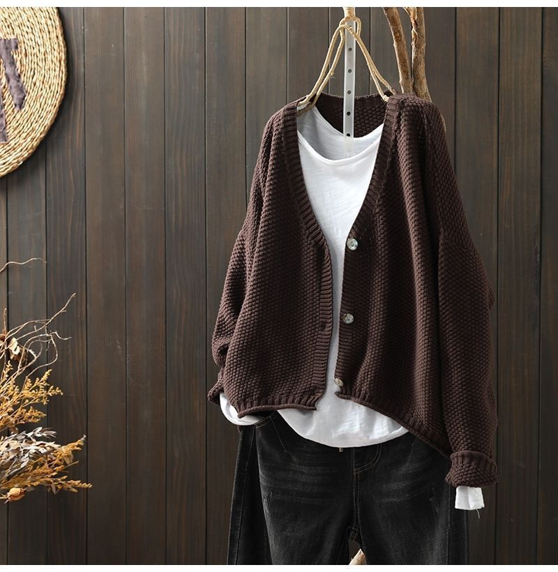 가을 새로운 예술적 올 매치 느슨한 짧은 스웨터를 2023 여성을위한 레트로 V 넥 코튼 니트 코트