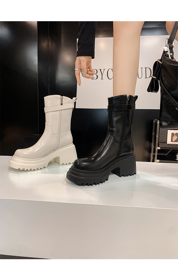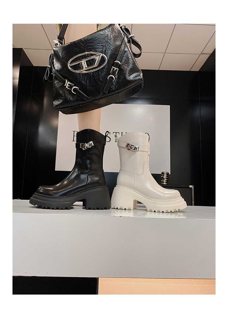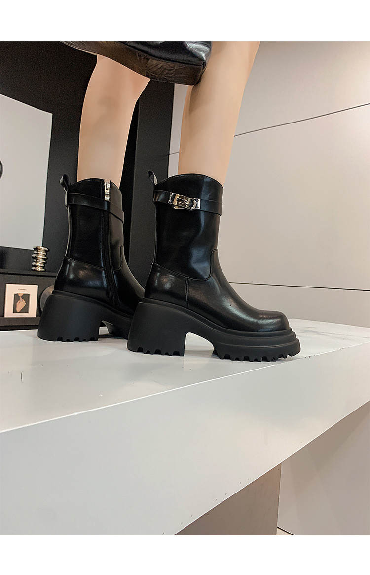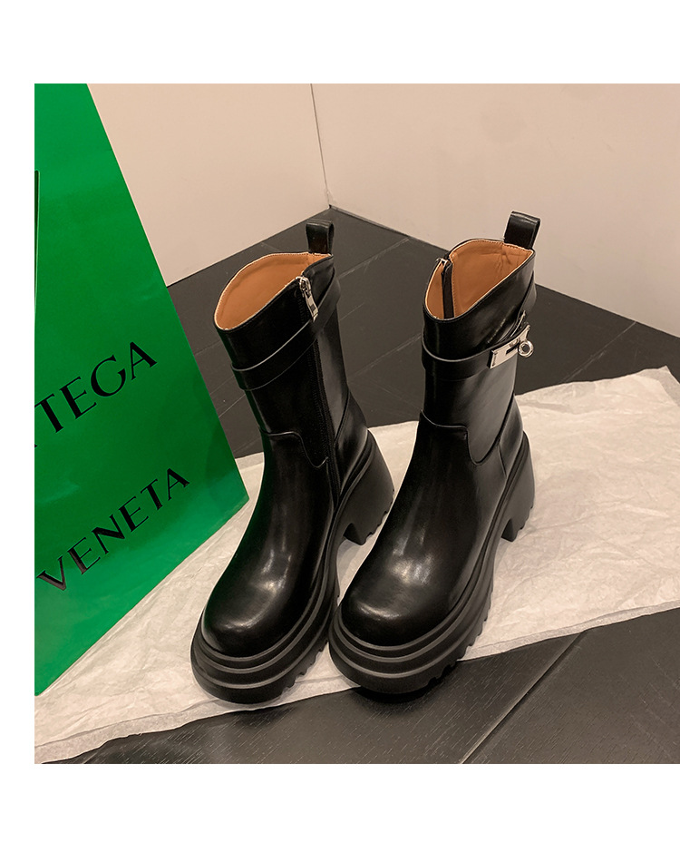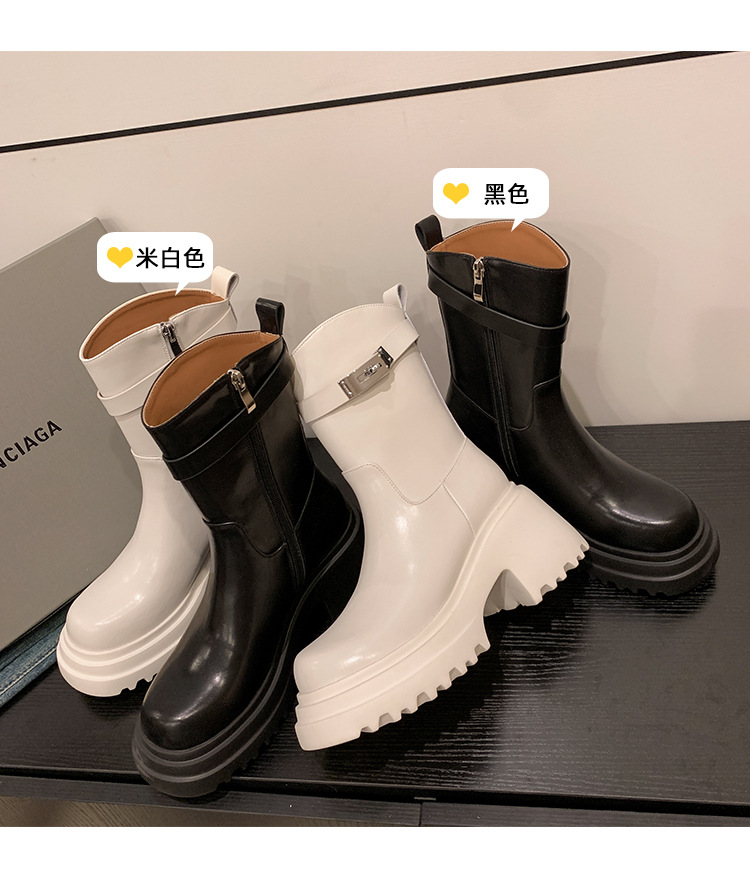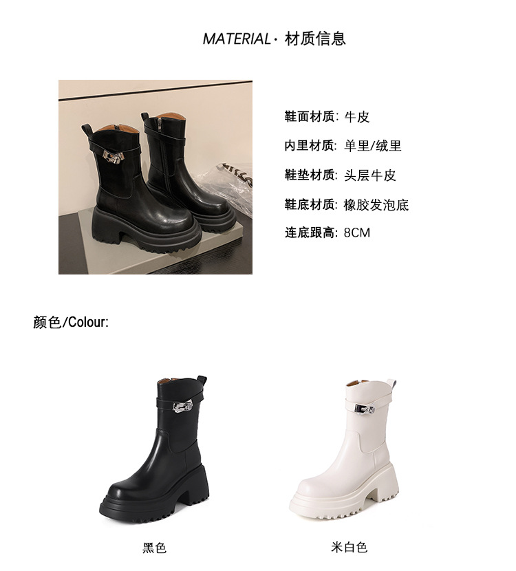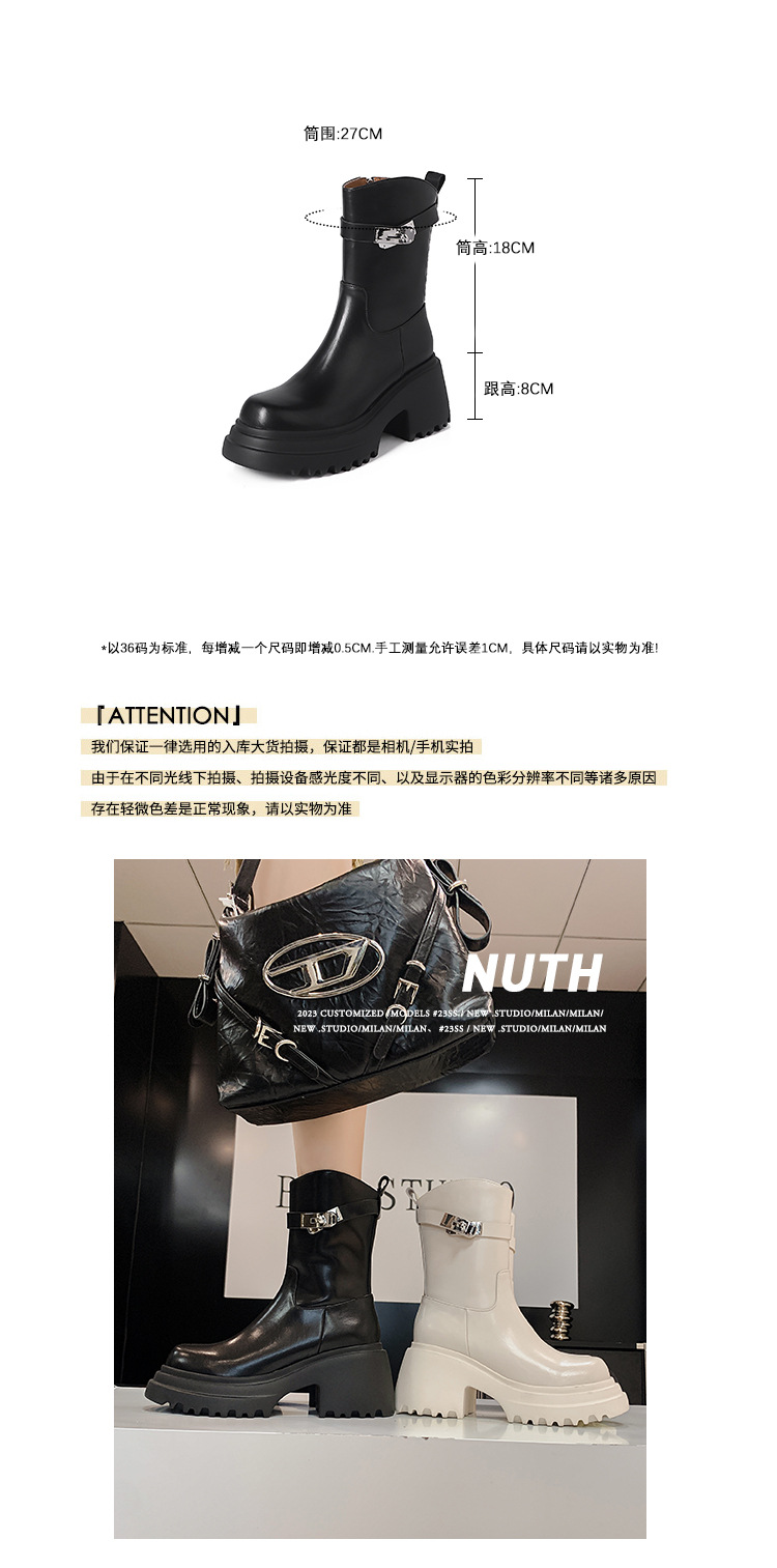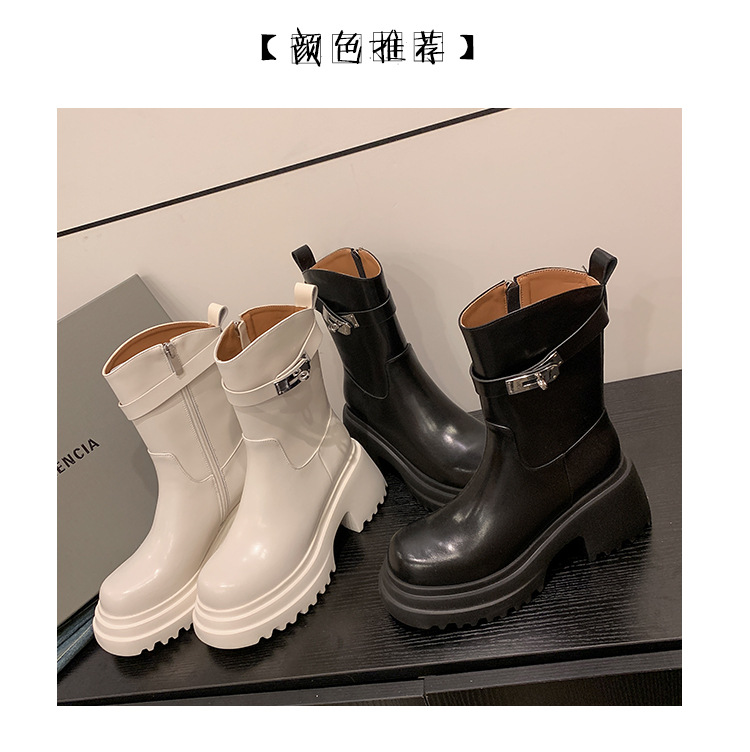2023 여성을위한 작은 높이 증가 짧은 부츠 새로운 두꺼운 밑창 정품 가죽 기사 담배 부츠 얇은 마른 다리 가을과 겨울 마틴 부츠스토어 가기