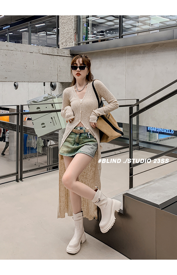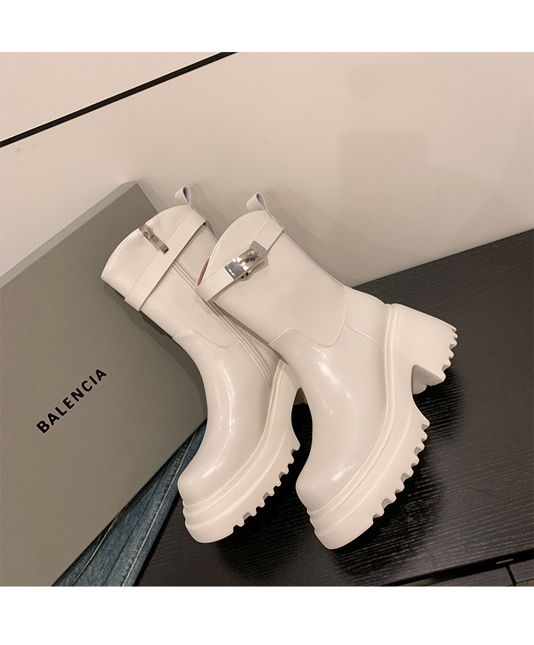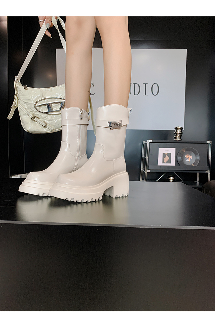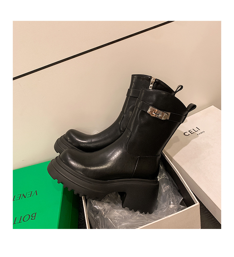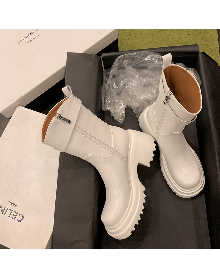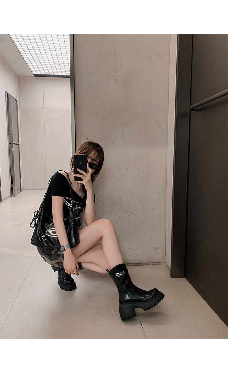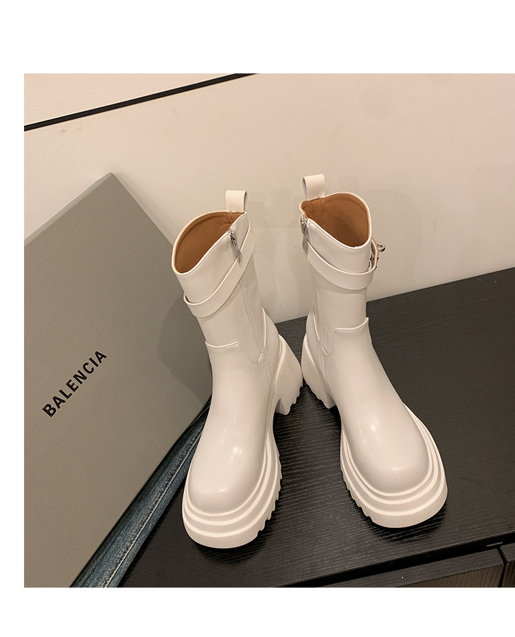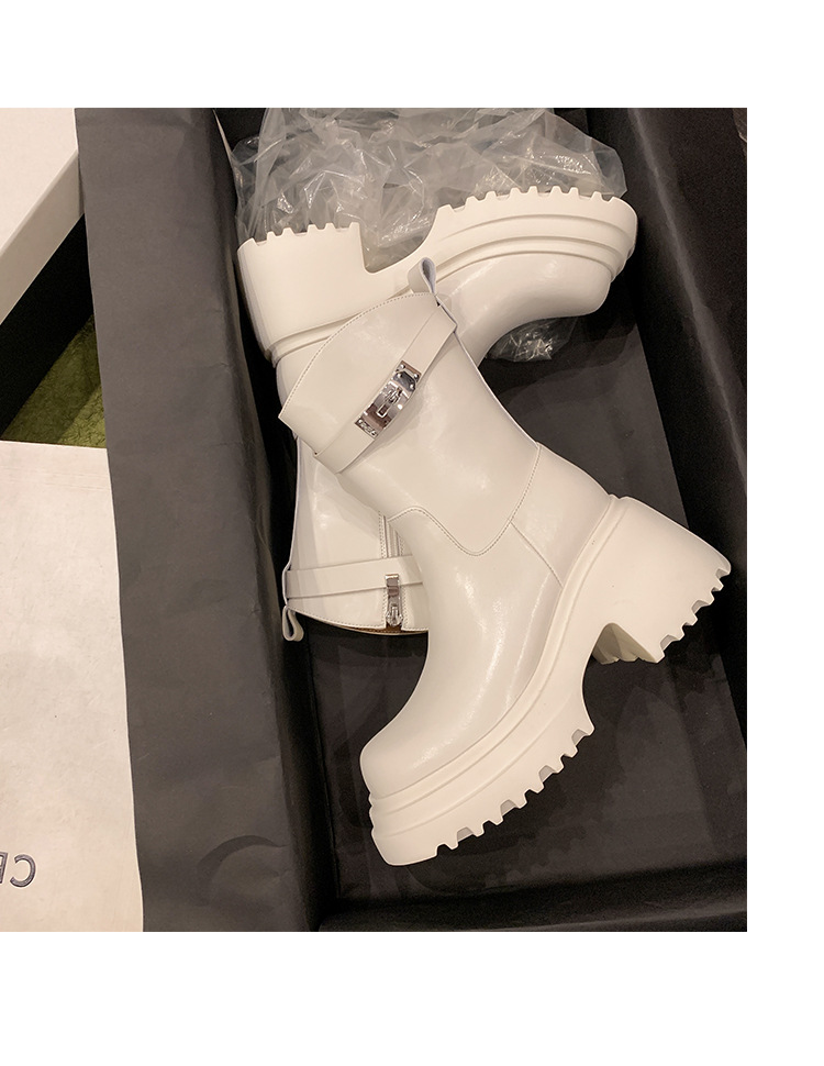 2023 여성을위한 작은 높이 증가 짧은 부츠 새로운 두꺼운 밑창 정품 가죽 기사 담배 부츠 얇은 마른 다리 가을과 겨울 마틴 부츠스토어 가기