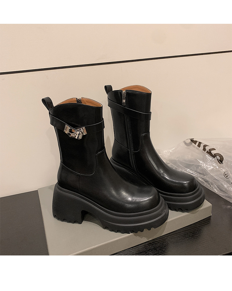 2023 여성을위한 작은 높이 증가 짧은 부츠 새로운 두꺼운 밑창 정품 가죽 기사 담배 부츠 얇은 마른 다리 가을과 겨울 마틴 부츠