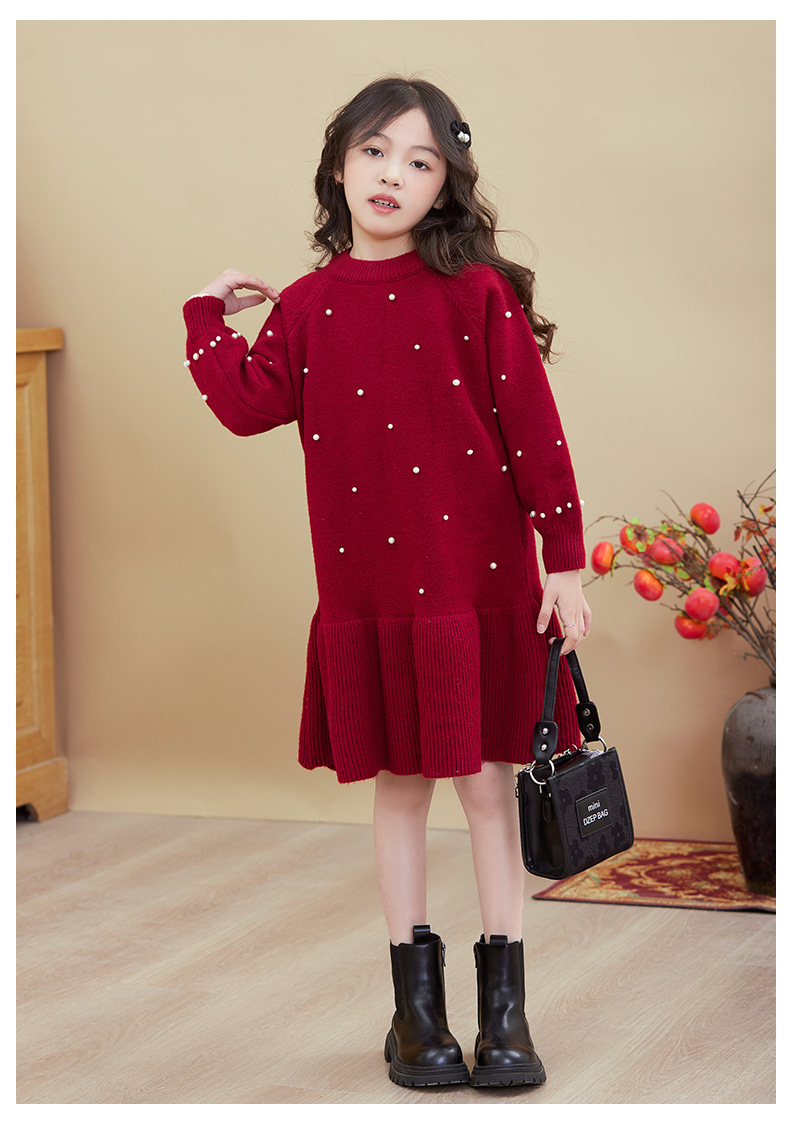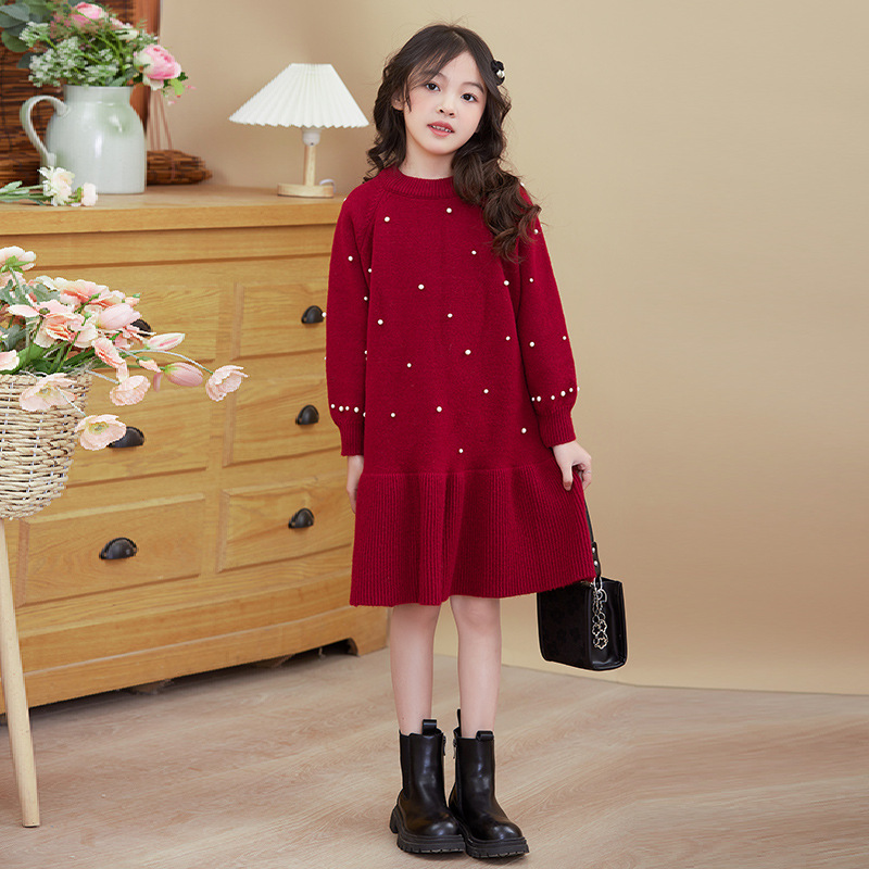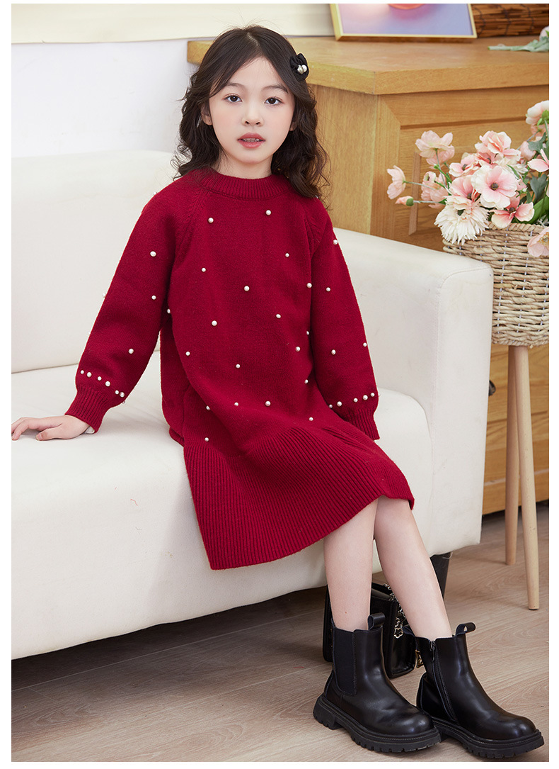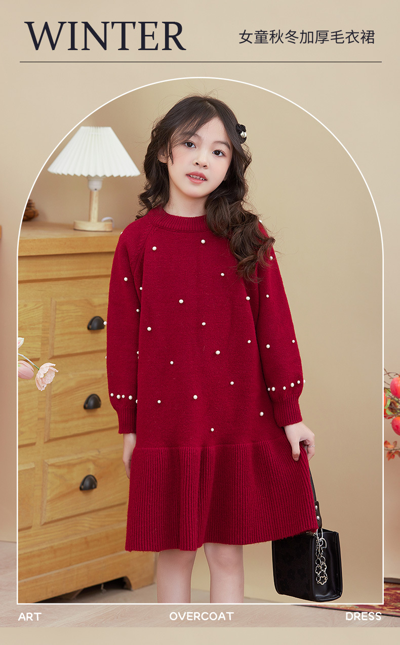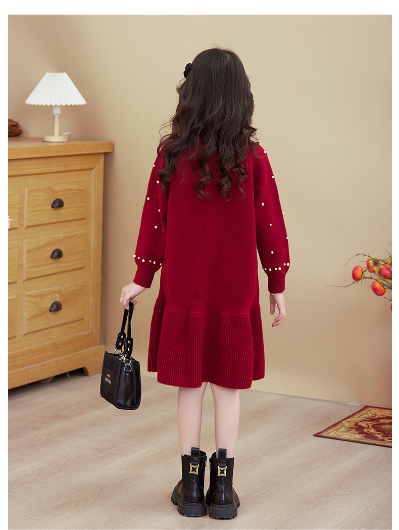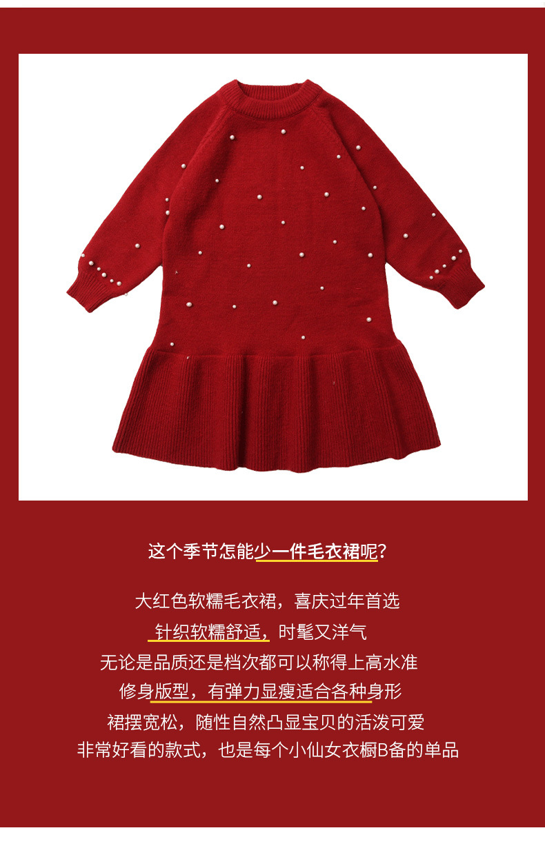 여아용 빨간색 드레스 가을 겨울 2025 신상 스타일리시한 중대형 어린이 겨울옷 새해 니트 스웨터 드레스스토어 가기