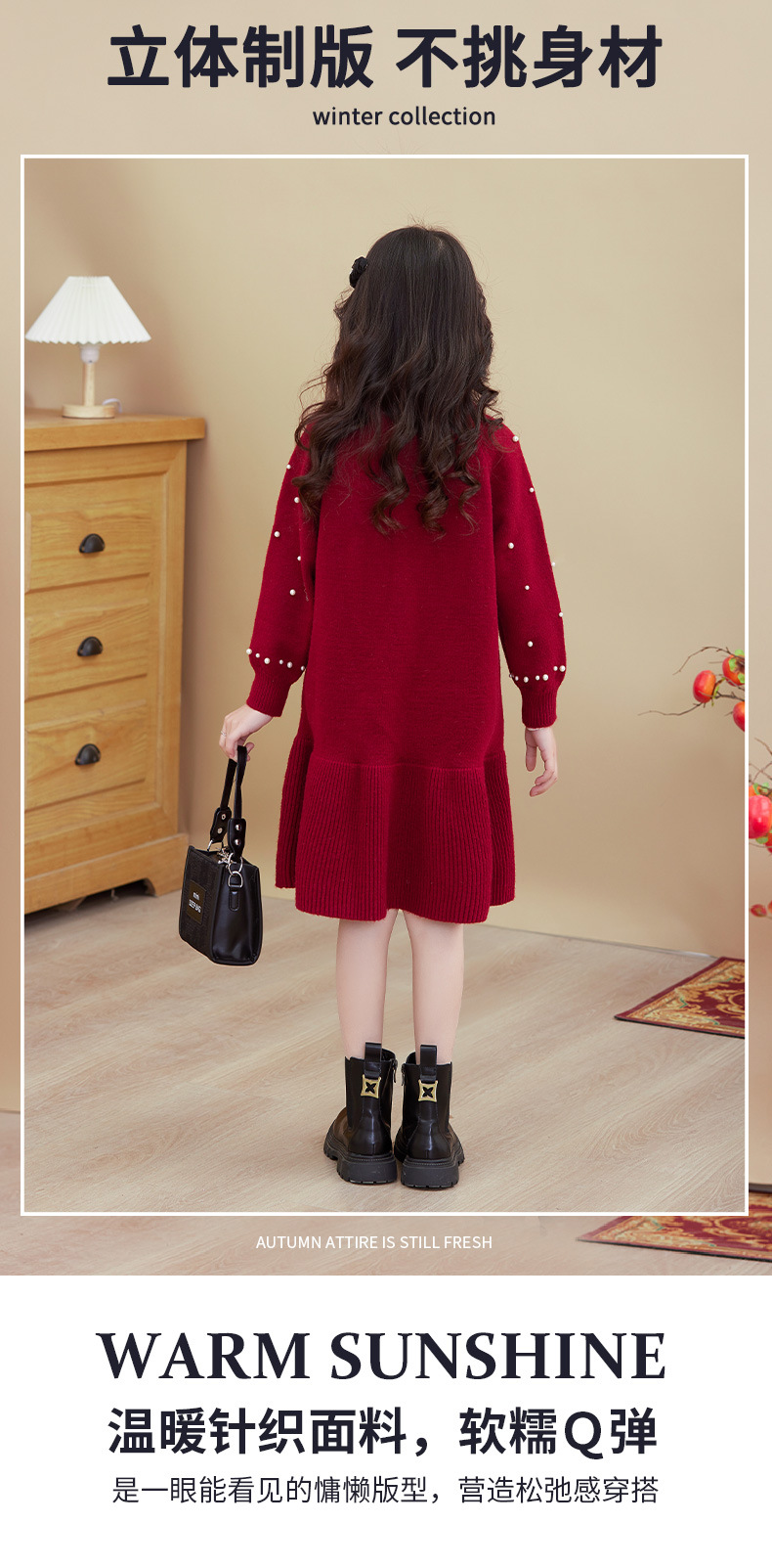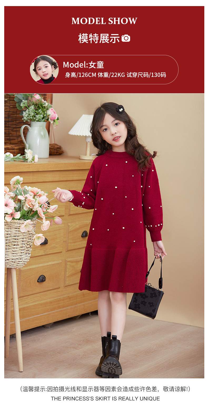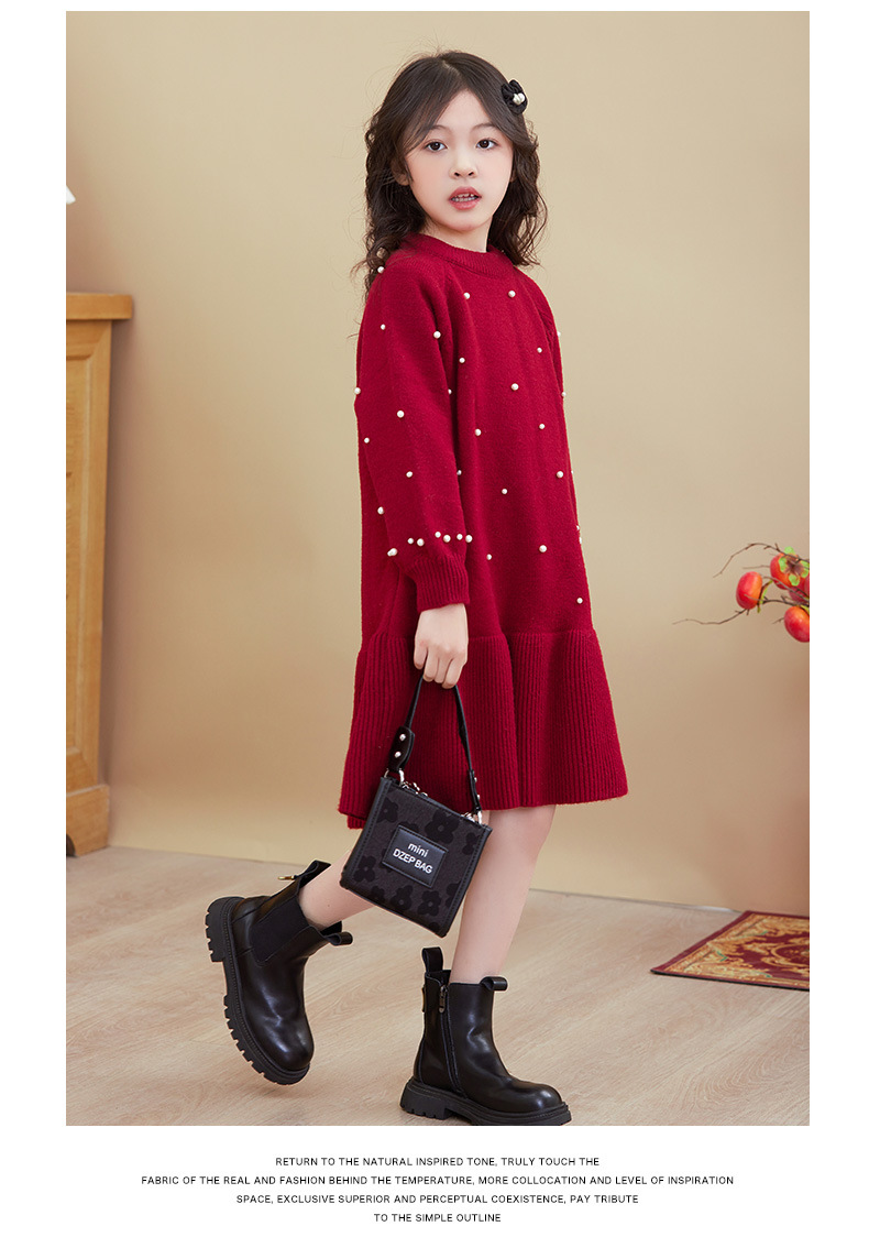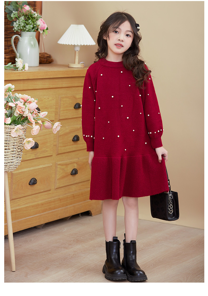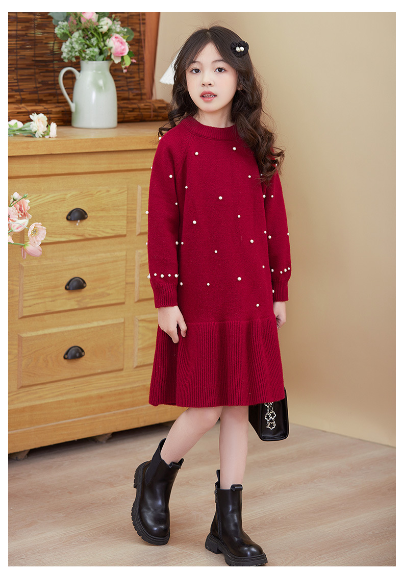여아용 빨간색 드레스 가을 겨울 2025 신상 스타일리시한 중대형 어린이 겨울옷 새해 니트 스웨터 드레스스토어 가기