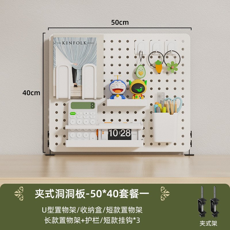 클립 형 데스크탑 홀 플레이트 금속 스토리지 랙 펀치 프리 액세서리 학습 책상 책장 상단 파티션 디스플레이 랙
