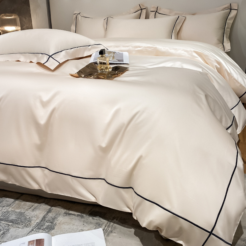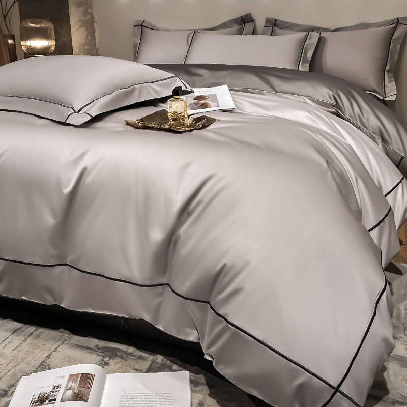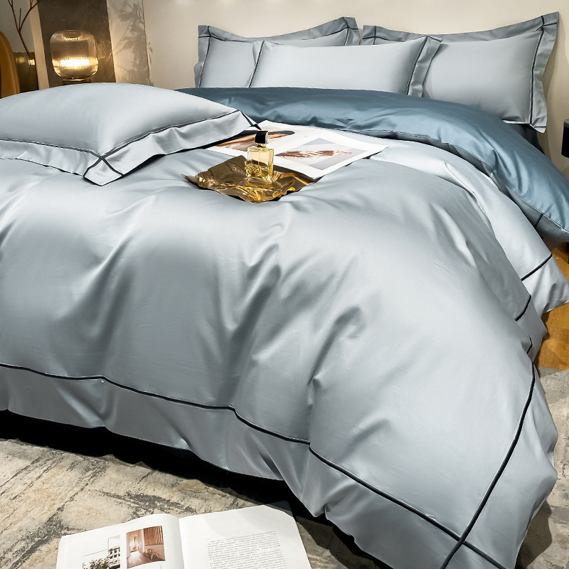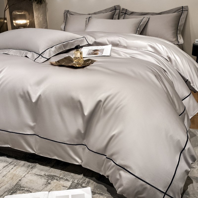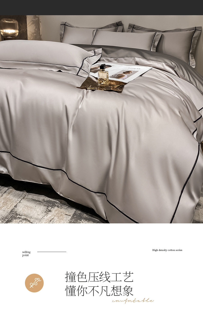 고급 200 긴 스테이플 코튼 4 피스 세트 라이트 럭셔리 순수한면 100 시트 퀼트 커버 침구 4