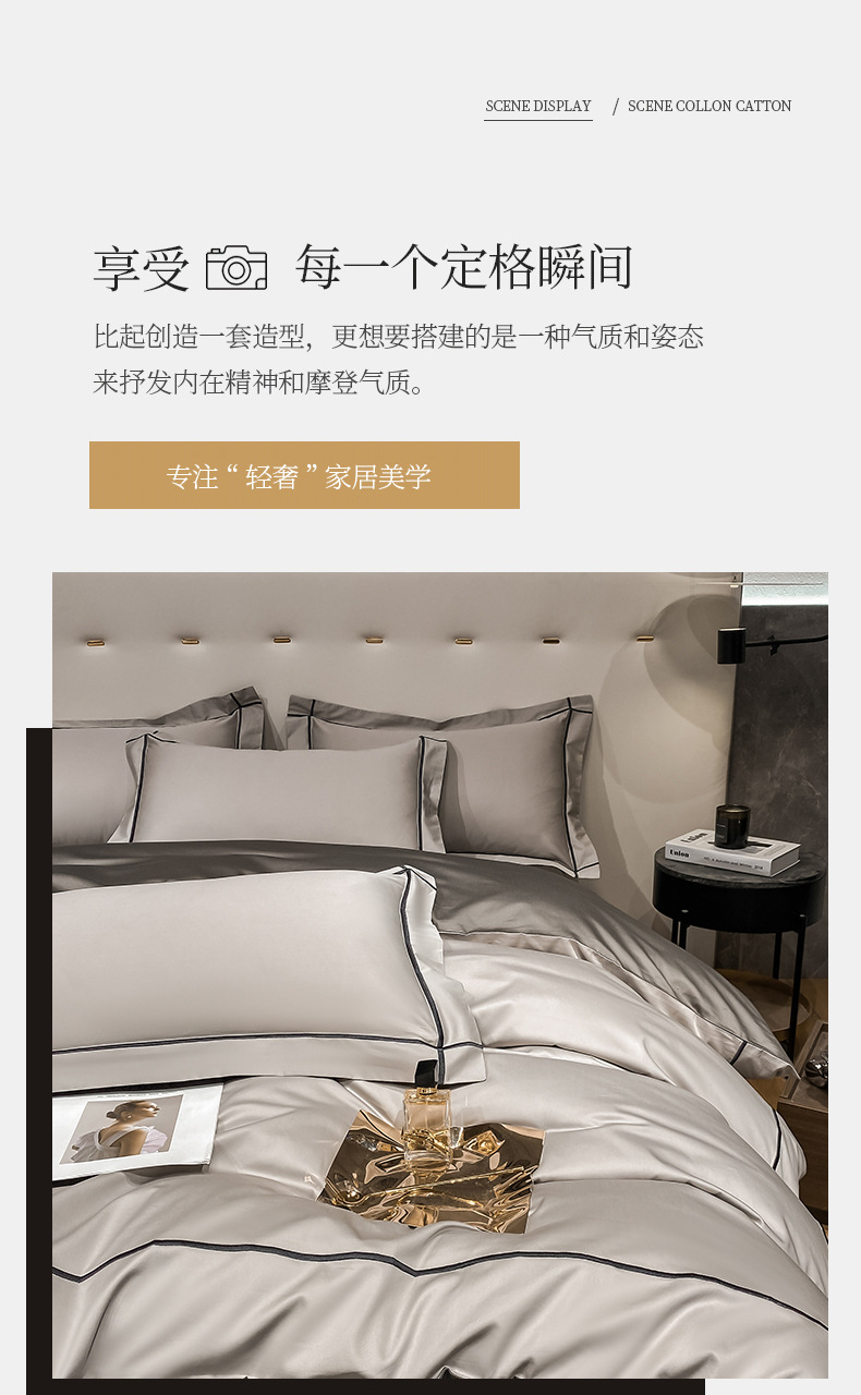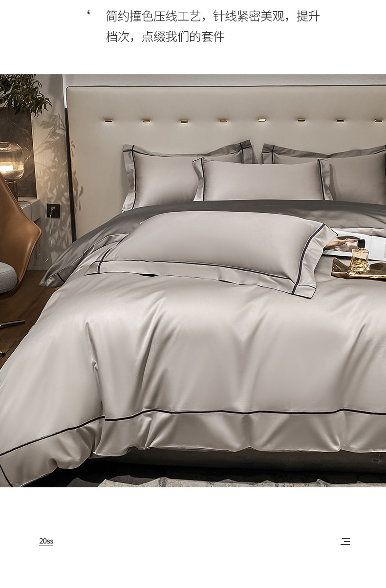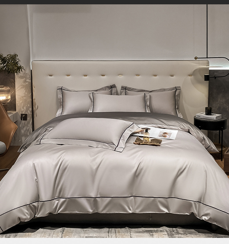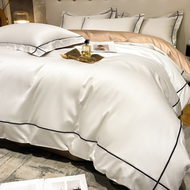 고급 200 긴 스테이플 코튼 4 피스 세트 라이트 럭셔리 순수한면 100 시트 퀼트 커버 침구 4