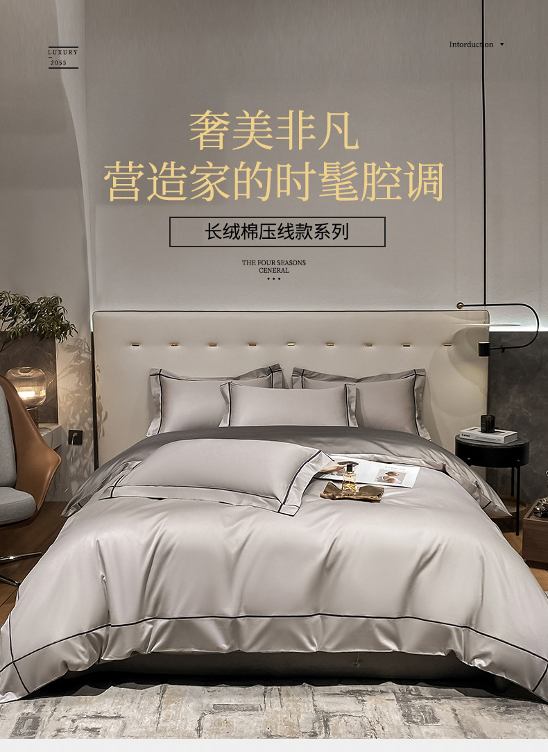 고급 200 긴 스테이플 코튼 4 피스 세트 라이트 럭셔리 순수한면 100 시트 퀼트 커버 침구 4스토어 가기
