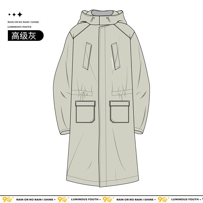 후드가 달린 3중 복합 원단 레인코트, 여행용 롱 스타일, 전신 방수, 하이킹용 패셔너블한 아웃도어 일체형 윈드코트스토어 가기