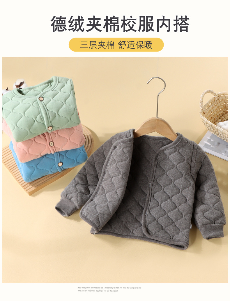 어린이 가을 겨울 보온 안감 면옷, 벨벳 안감으로 두껍게, 남녀 어린이 교복 겉옷, 보온 기능이 뛰어난 아동용 재킷