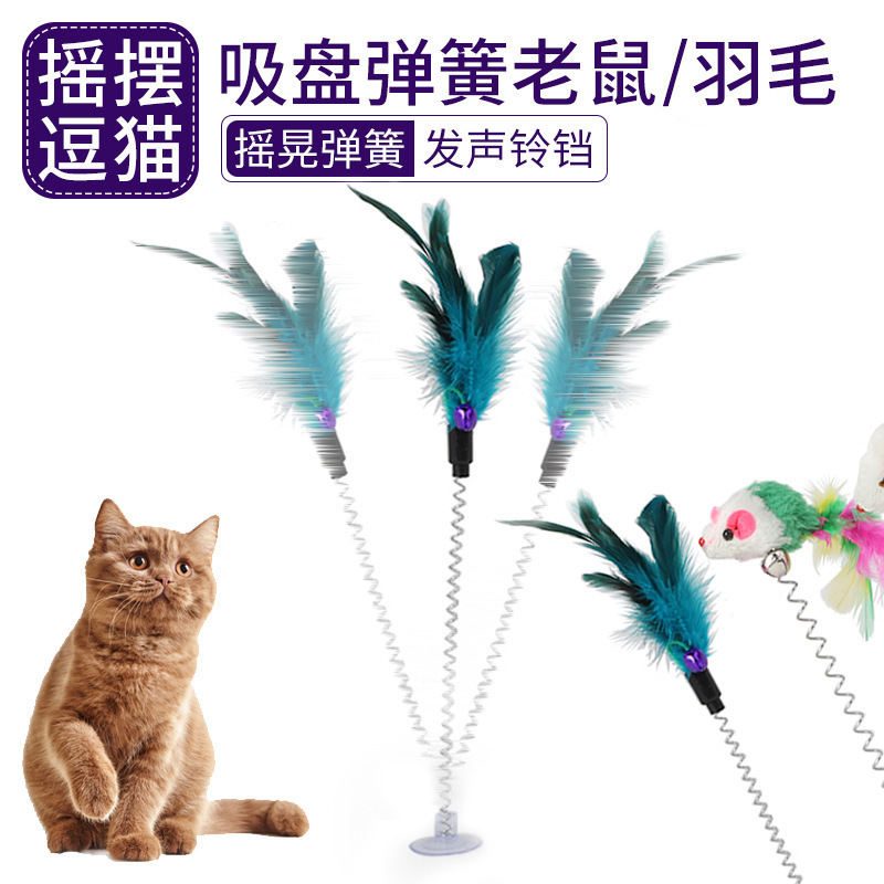 재고 도매 다채로운 흡입 컵 고양이 봄 마우스 빨판 봄 깃털 고양이 장난감 재미있는 고양이 스틱스토어 가기