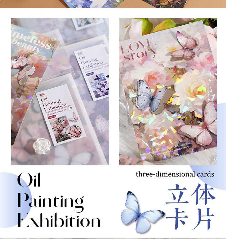 Yuxian 3 차원 나비 꽃 카드 유화 전시회 시리즈 높은 찾고 손 계정 배경 장식 사진 프레임 인사말 카드