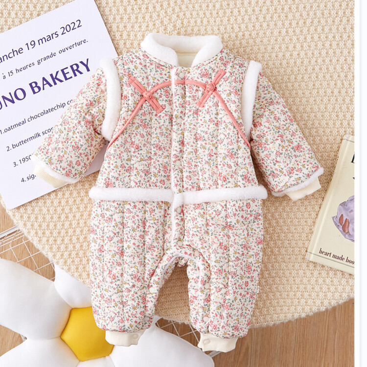 아기 점프 수트 겨울 중국 스타일 꽃 공주 3-6-9 개월 8 아기 소녀 롬퍼 퀼트 따뜻한 포옹 옷스토어 가기
