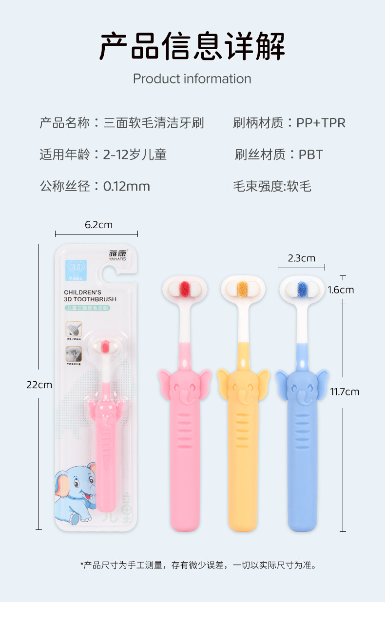 어린이 3 면 칫솔 귀여운 코끼리 도파민 마카롱 컬러 어린이 부드러운 칫솔 3-12 세 치과스토어 가기