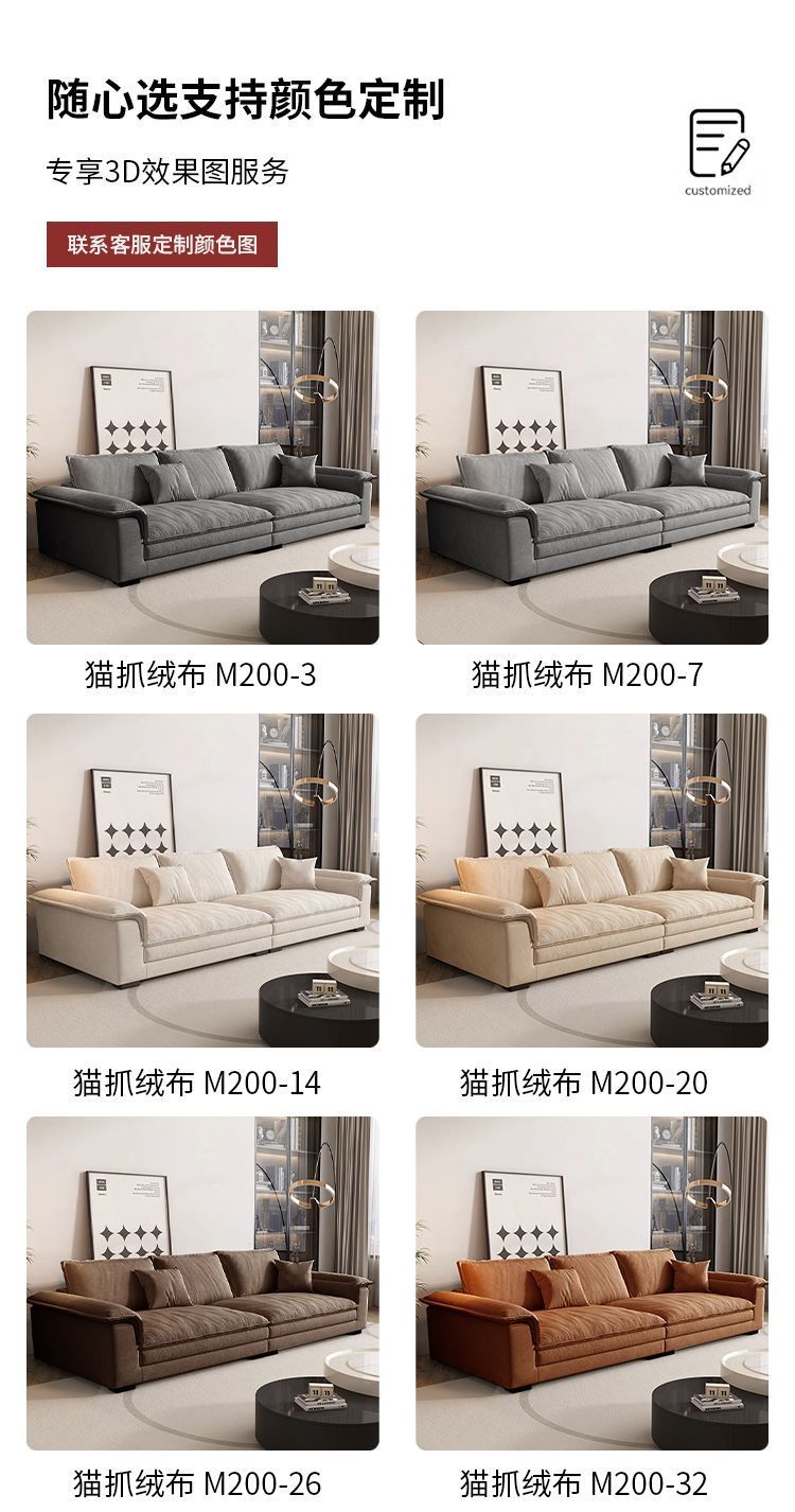 이탈리아 미니멀리스트 기술 패브릭 샌드 라이트 럭셔리 현대 헤어 거실 작은 아파트 가정용 스트레이트 로우 라이트 럭셔리 3 인승 소파