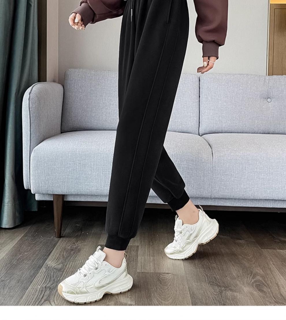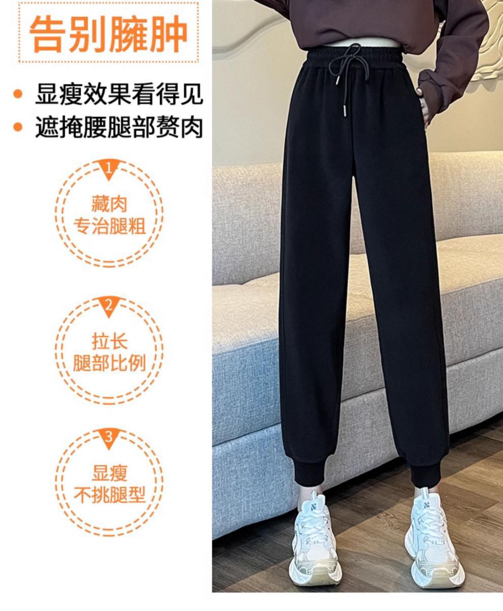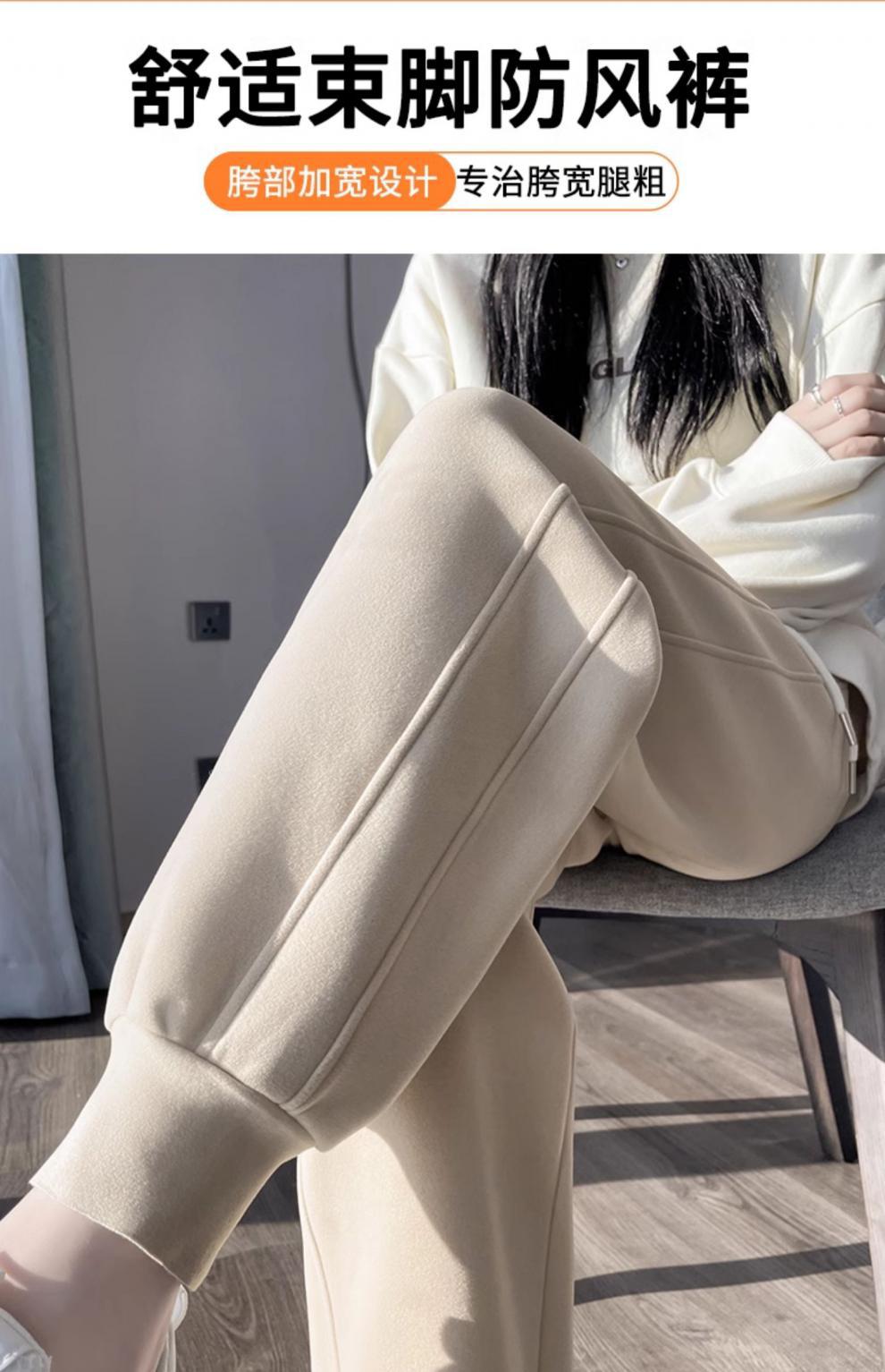 작은 스포츠 바지 여성의 가을과 겨울 캐주얼 따뜻한 방풍 바지 2023 새로운 기모 두꺼운 발목 묶음 바지스토어 가기