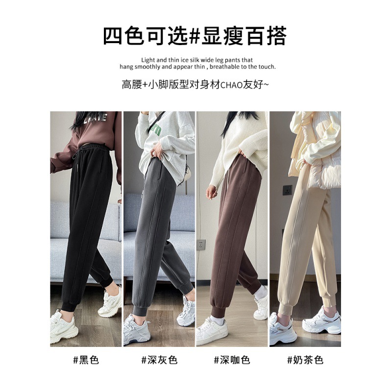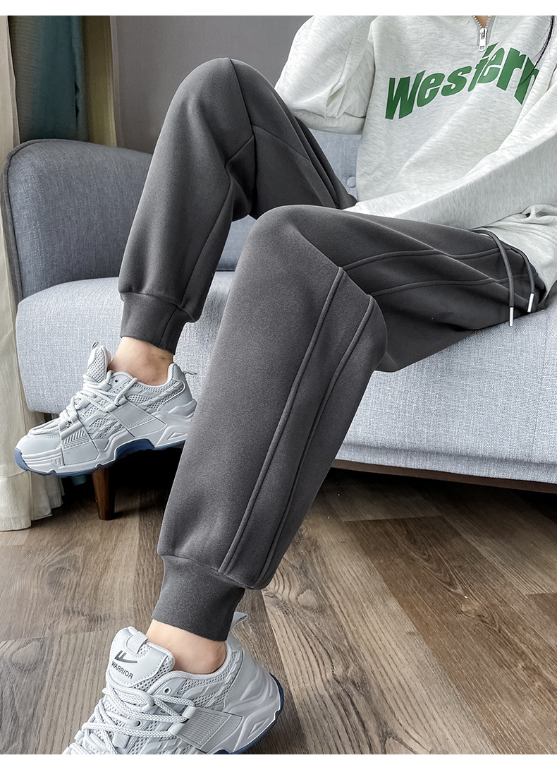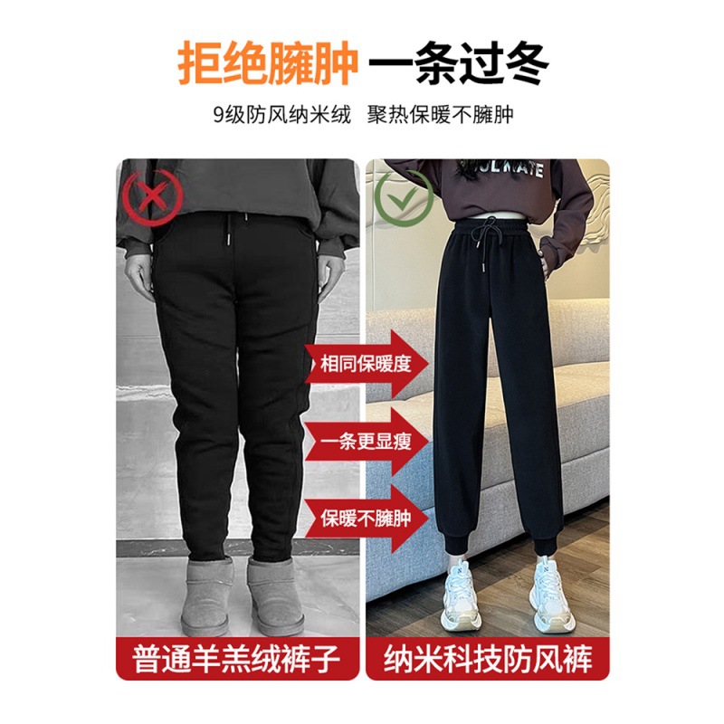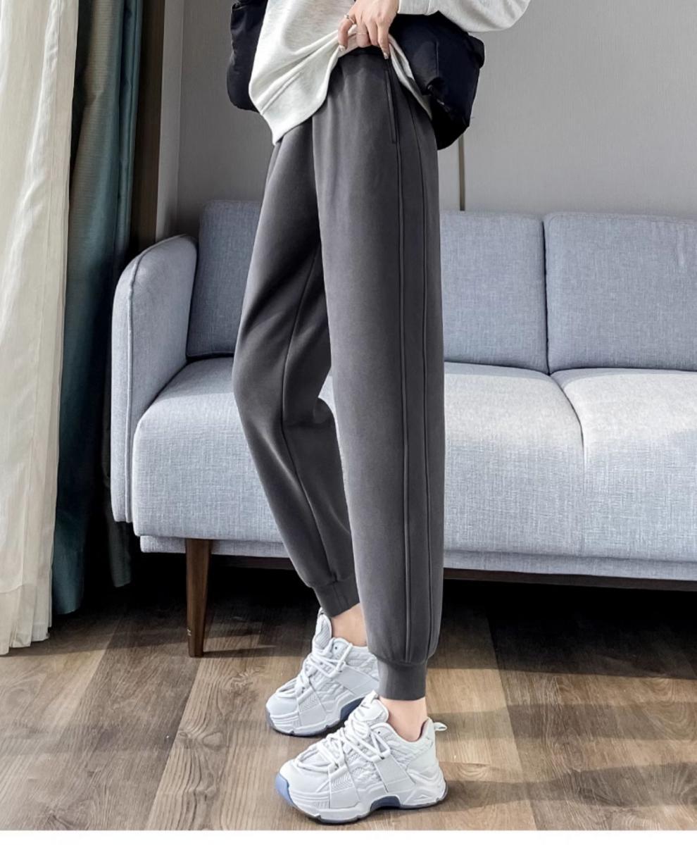 작은 스포츠 바지 여성의 가을과 겨울 캐주얼 따뜻한 방풍 바지 2023 새로운 기모 두꺼운 발목 묶음 바지스토어 가기