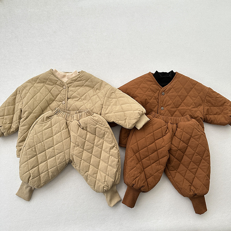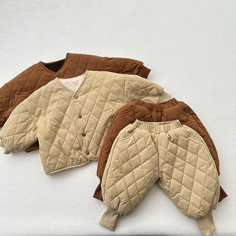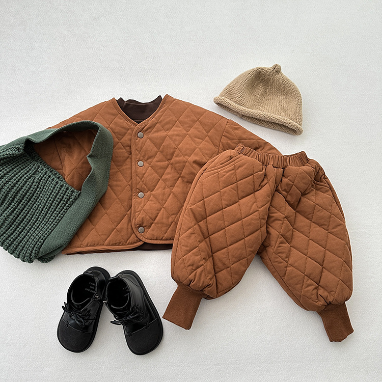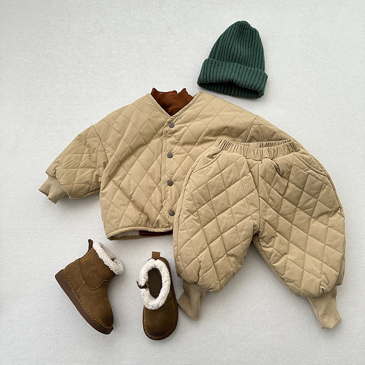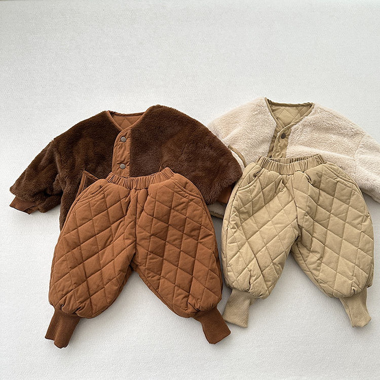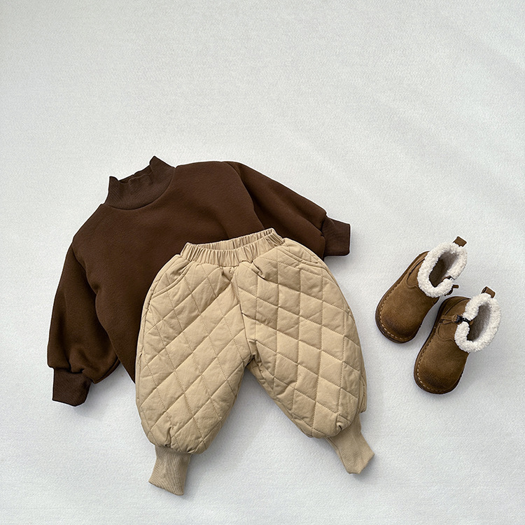 따뜻한 겨울 ~ 새로운 어린이 더블 레이어 퀼트 캐주얼 바지 남녀 바오산 마름모 기모 유치원 면화 바지스토어 가기