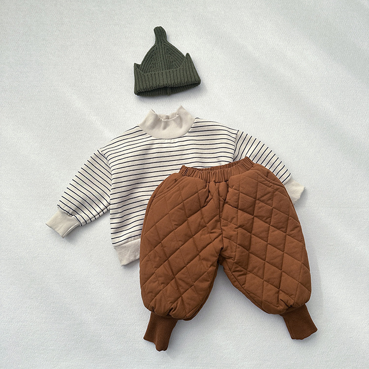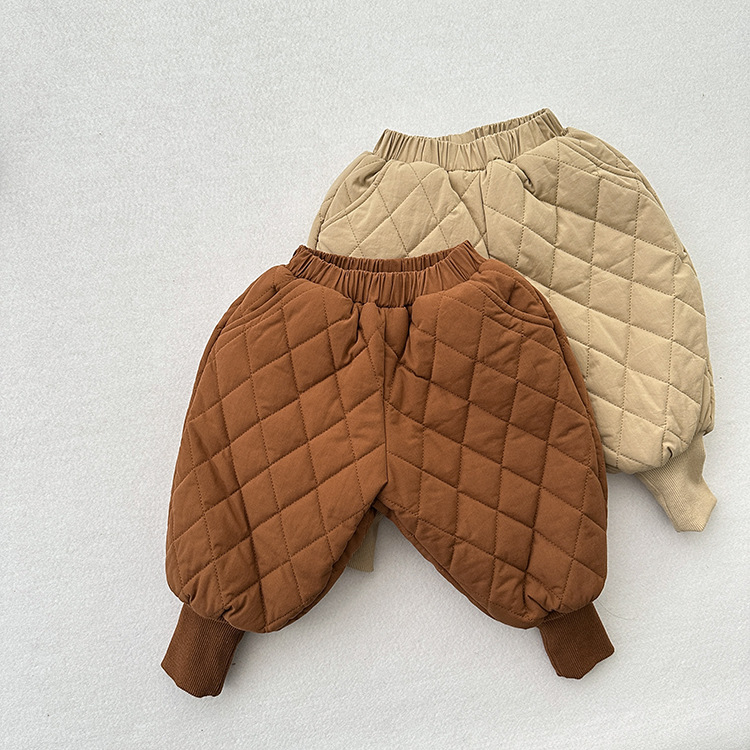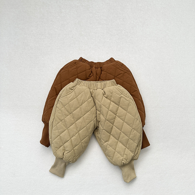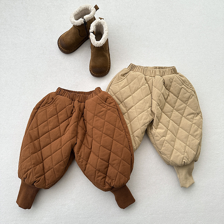 따뜻한 겨울 ~ 새로운 어린이 더블 레이어 퀼트 캐주얼 바지 남녀 바오산 마름모 기모 유치원 면화 바지