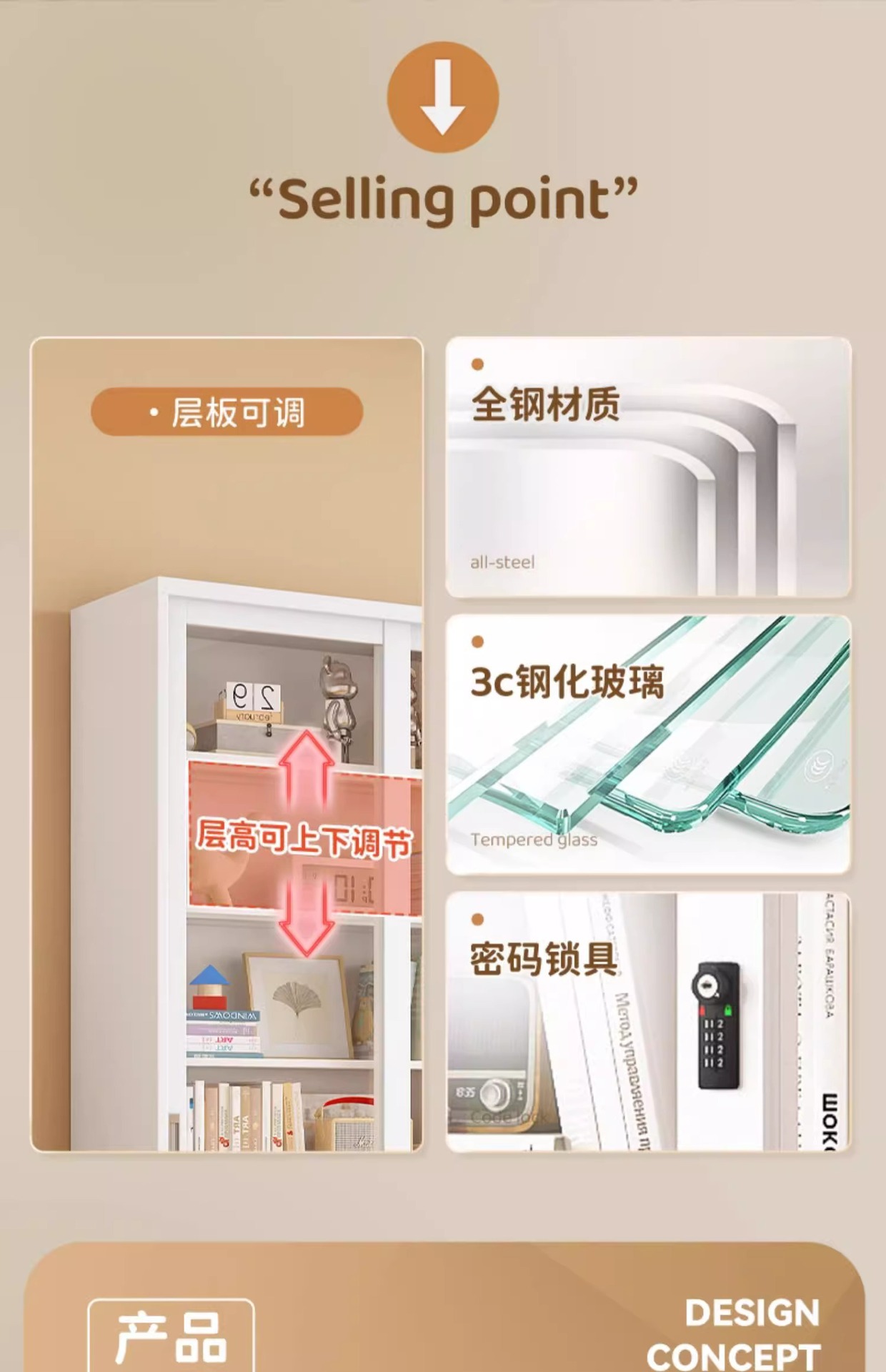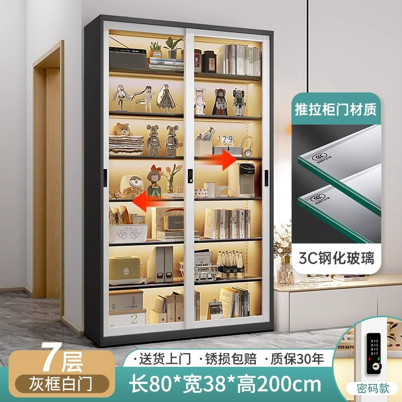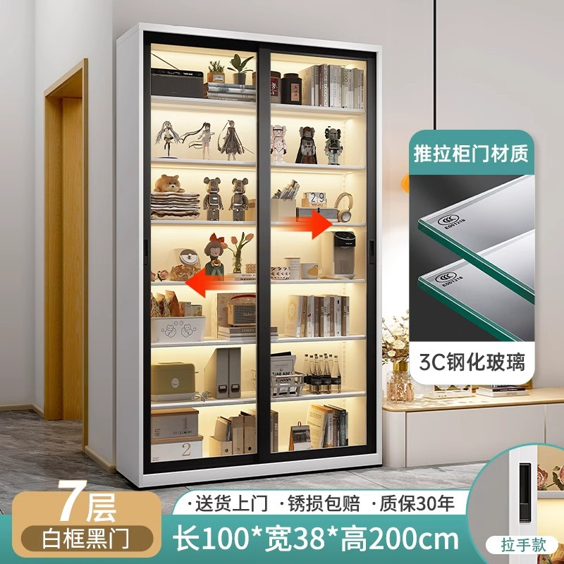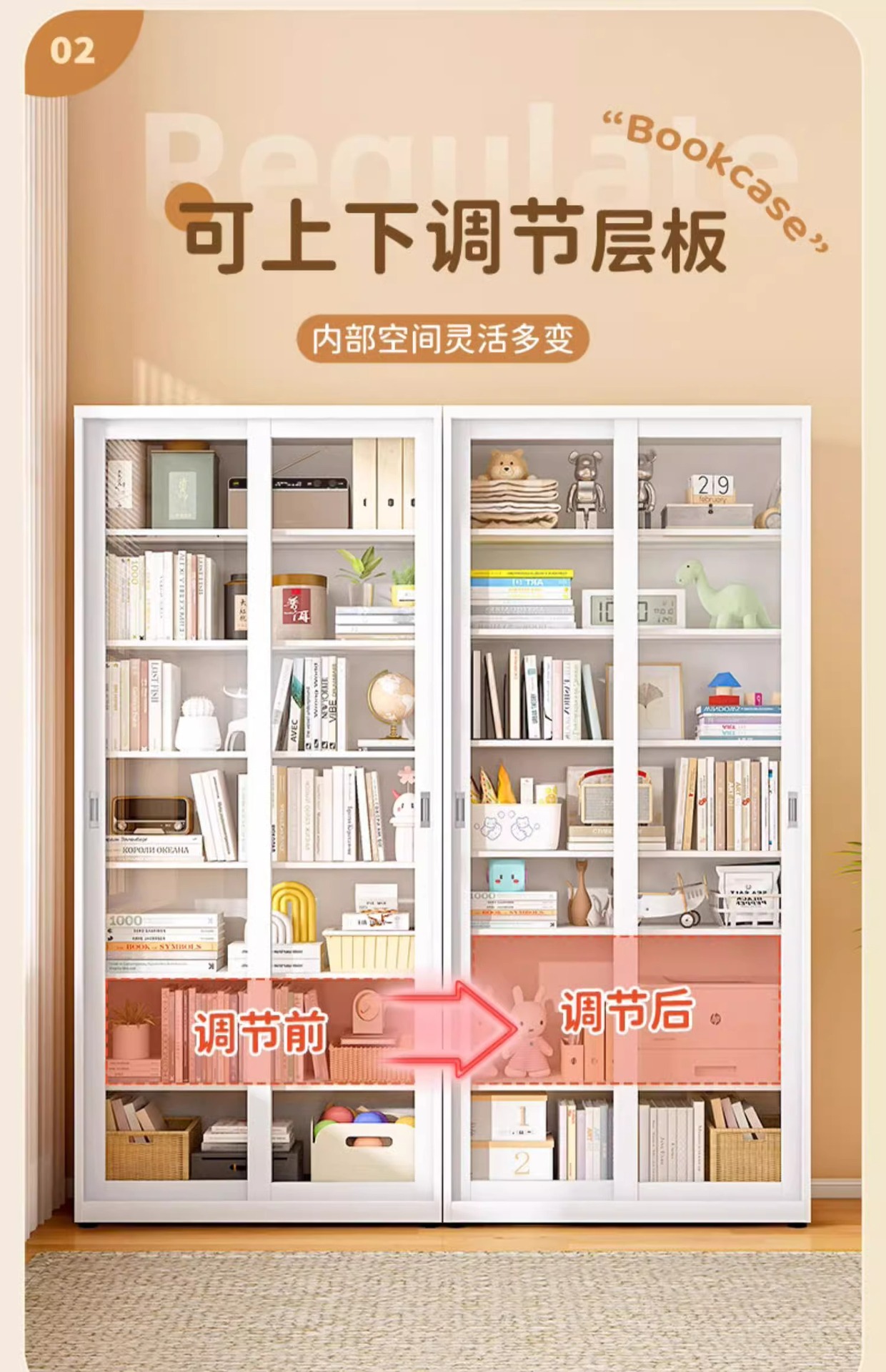 책장 슬라이딩 도어 유리 거실 문 통합 벽 어린이 책꽂이 바닥-층 가정용 다층 책 선반