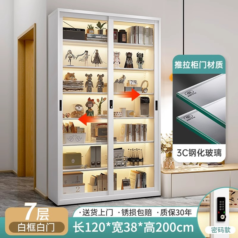 책장 슬라이딩 도어 유리 거실 문 통합 벽 어린이 책꽂이 바닥-층 가정용 다층 책 선반스토어 가기