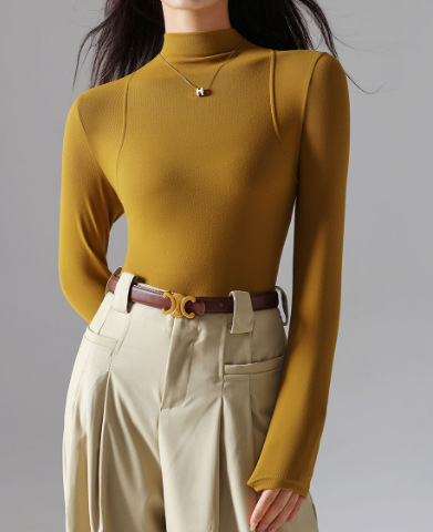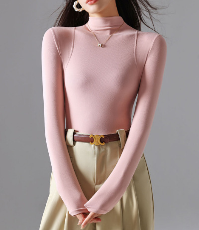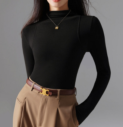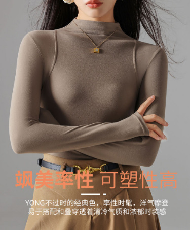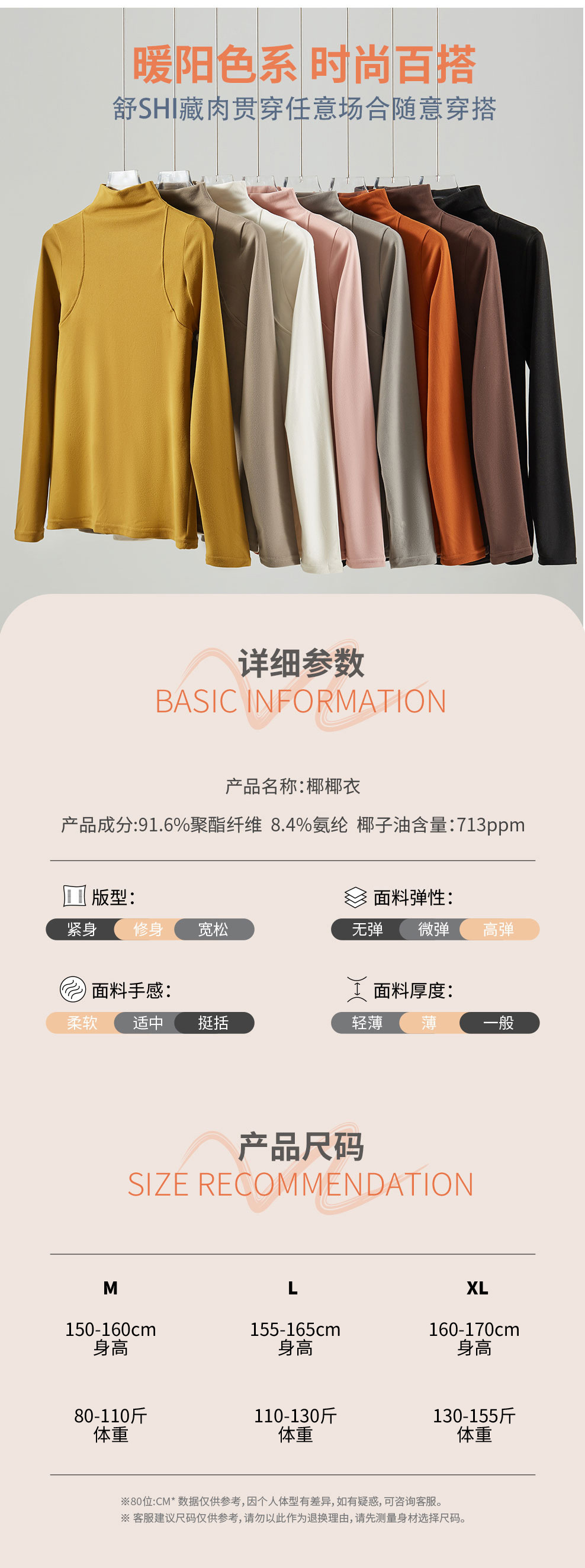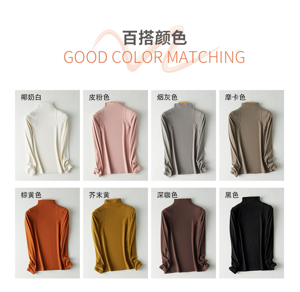 코코넛 피부 영양 옷베이스 셔츠 여성의 2024 가을 및 겨울 보습 슬림 핏 이너 탑 올 매치 하프 하이 칼라 여성베이스 셔츠