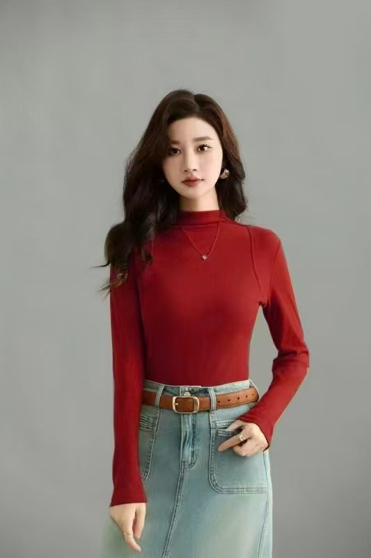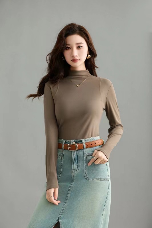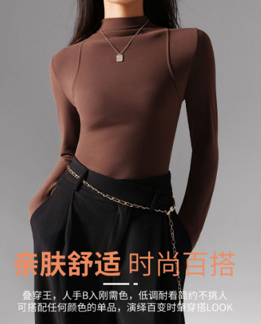 코코넛 피부 영양 옷베이스 셔츠 여성의 2024 가을 및 겨울 보습 슬림 핏 이너 탑 올 매치 하프 하이 칼라 여성베이스 셔츠스토어 가기