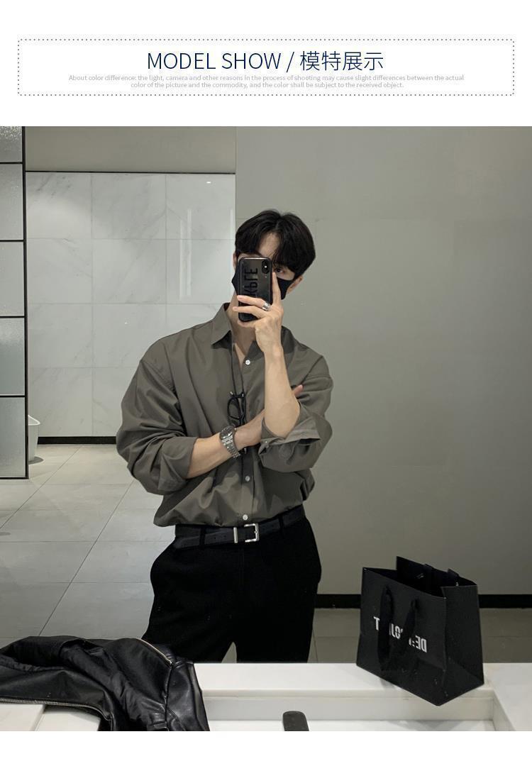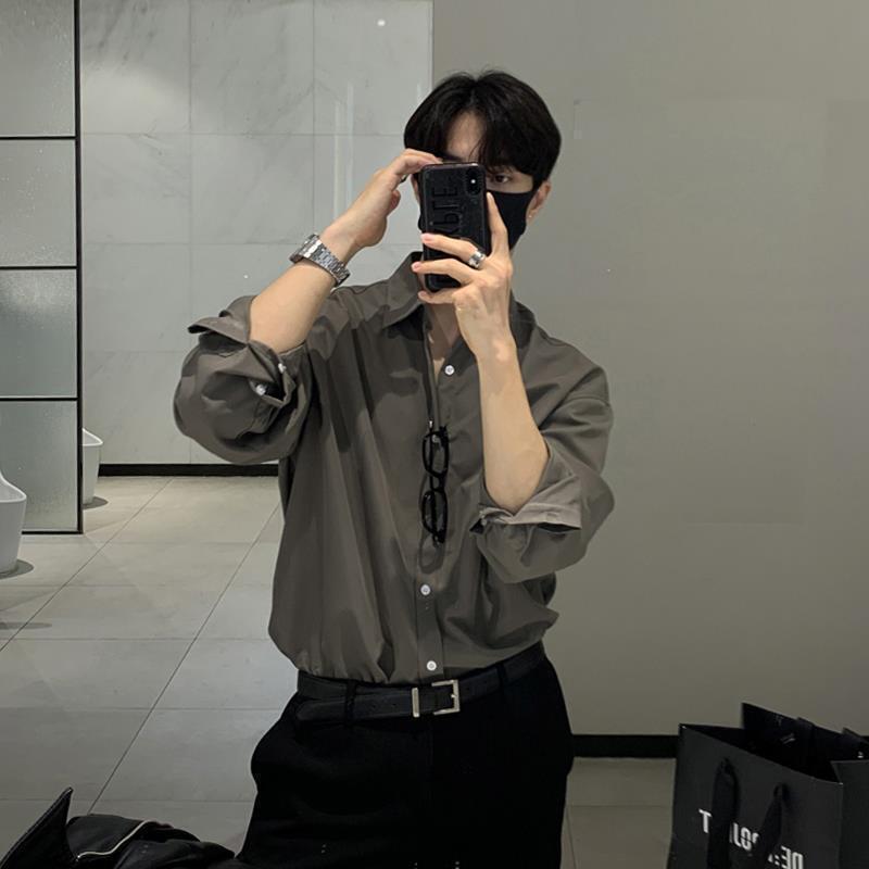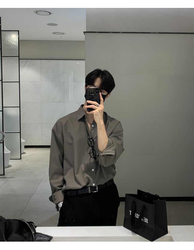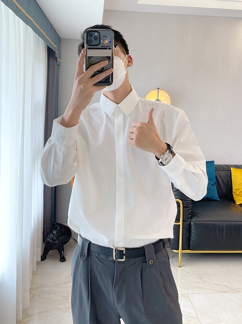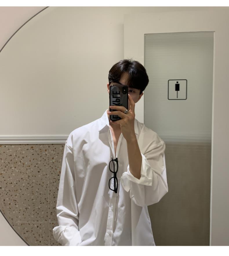라이트 성숙한 스타일 다크 버튼 화이트 셔츠 남성용 하이 엔드 센스 느슨한 긴팔 세트 내부 셔츠 일본식 시티 보이 셔츠스토어 가기
