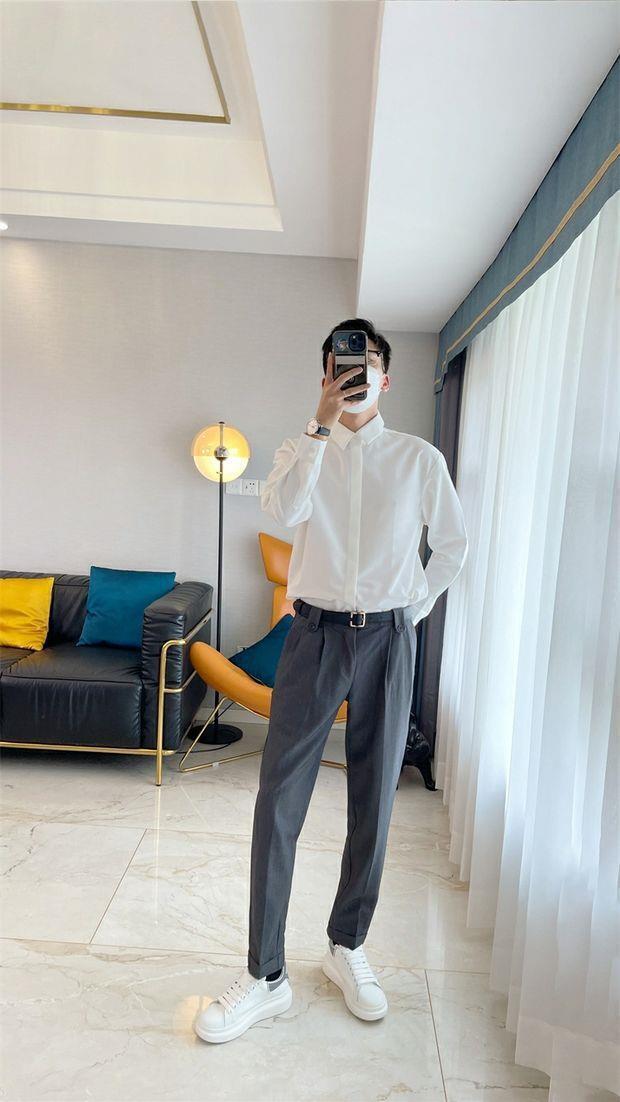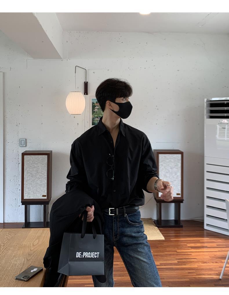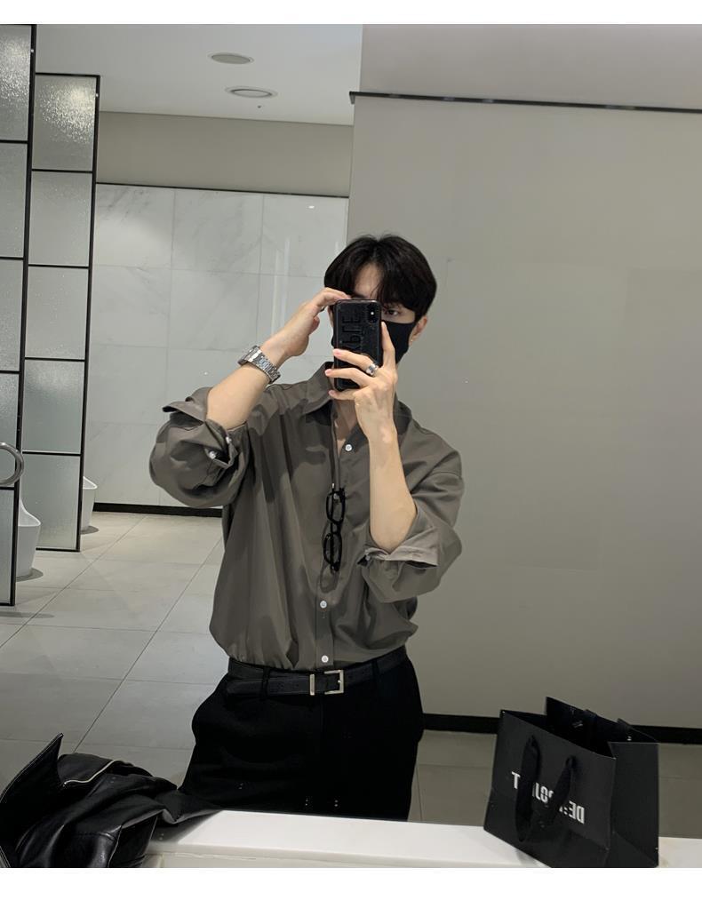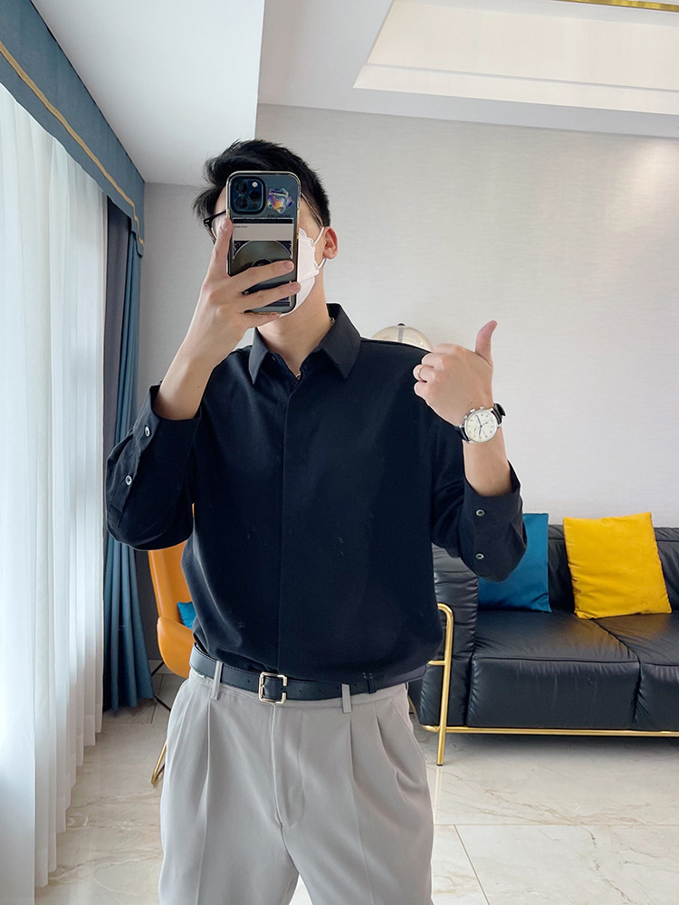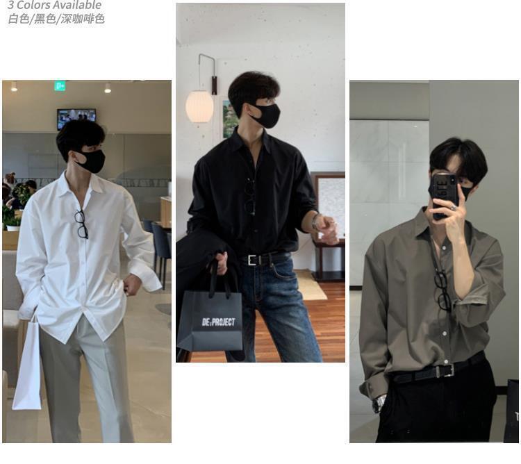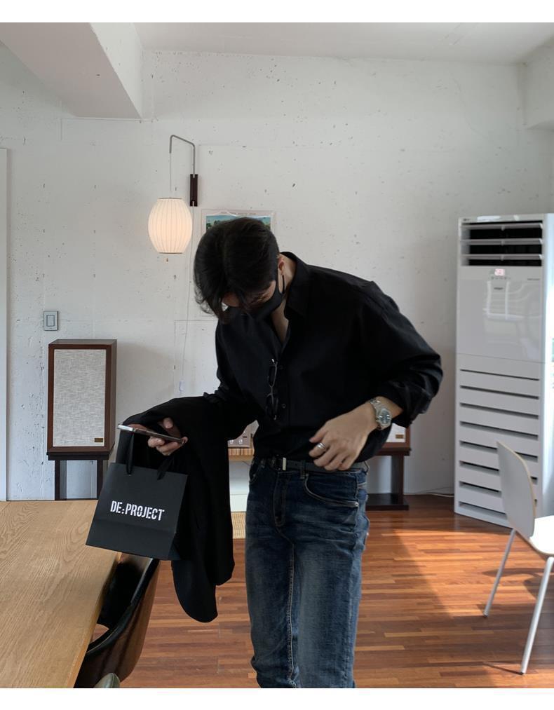 라이트 성숙한 스타일 다크 버튼 화이트 셔츠 남성용 하이 엔드 센스 느슨한 긴팔 세트 내부 셔츠 일본식 시티 보이 셔츠스토어 가기