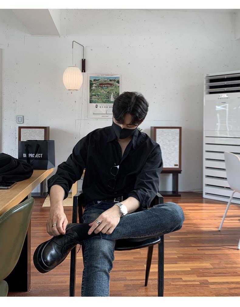 라이트 성숙한 스타일 다크 버튼 화이트 셔츠 남성용 하이 엔드 센스 느슨한 긴팔 세트 내부 셔츠 일본식 시티 보이 셔츠