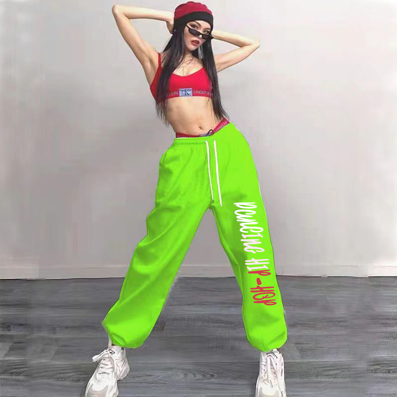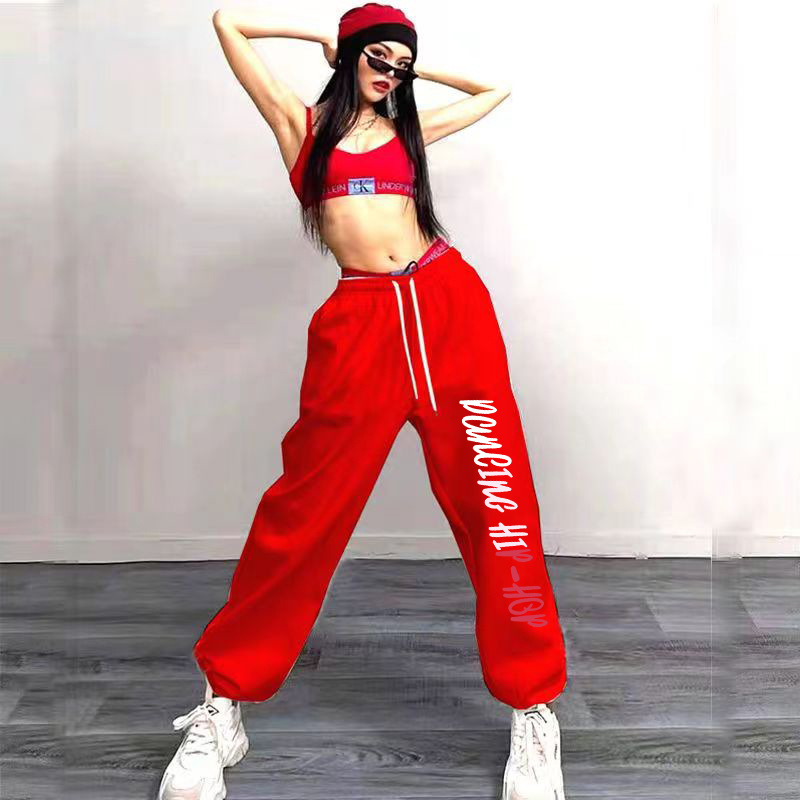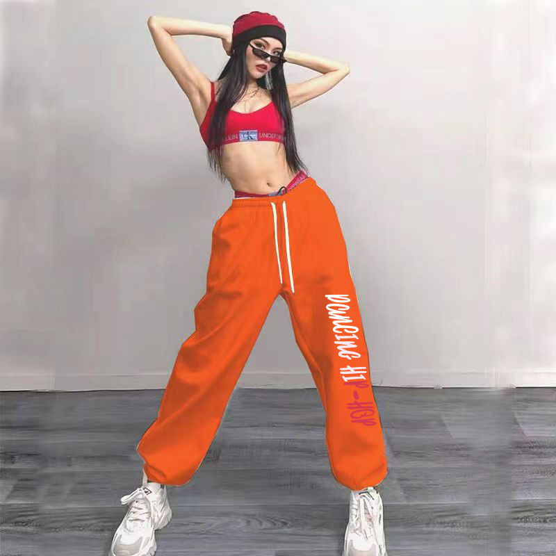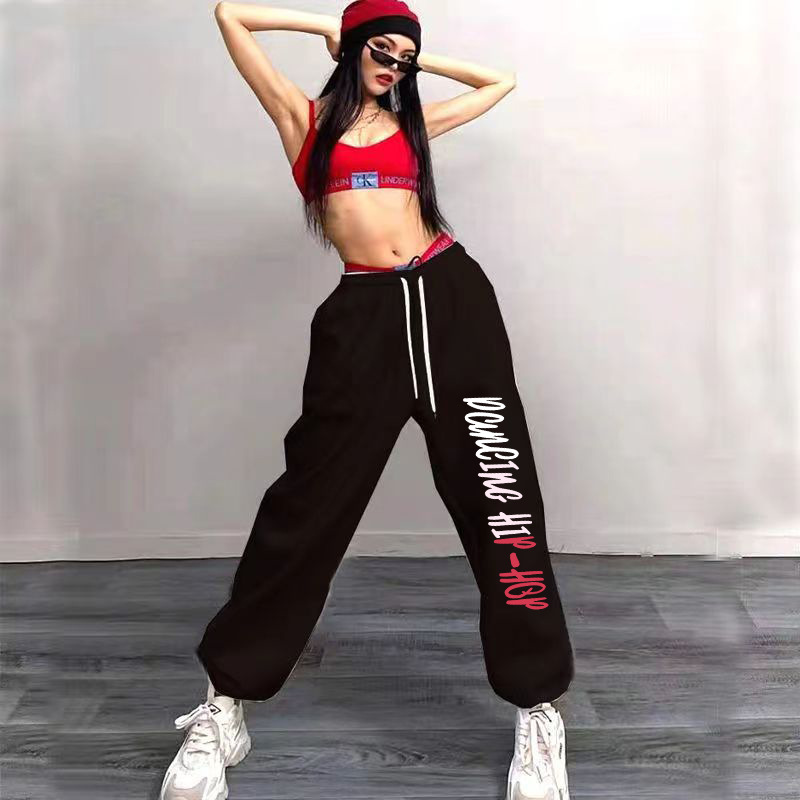 힙합 힙합 힙합 발목 묶인 스포츠 바지 여성 하이 허리 느슨한 캐주얼 재즈 댄스 롱 팬츠스토어 가기