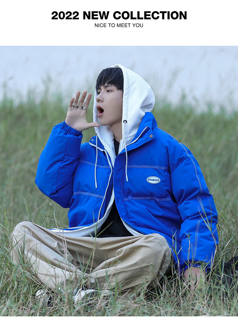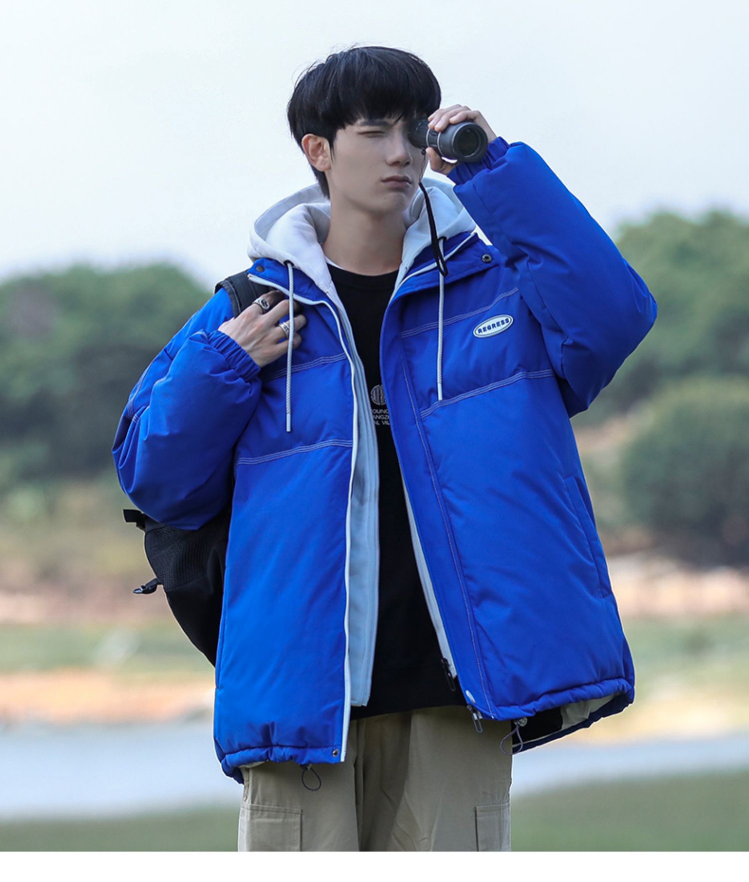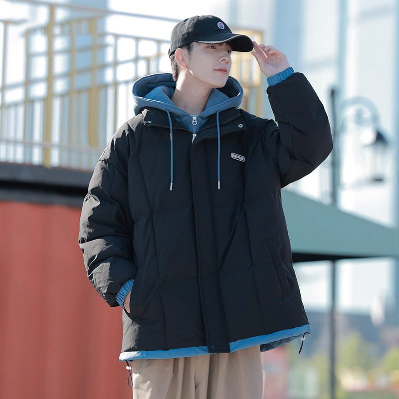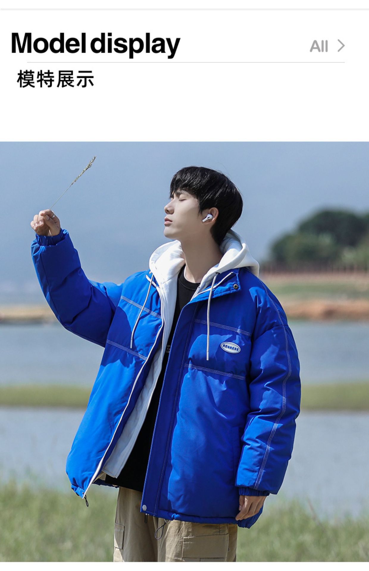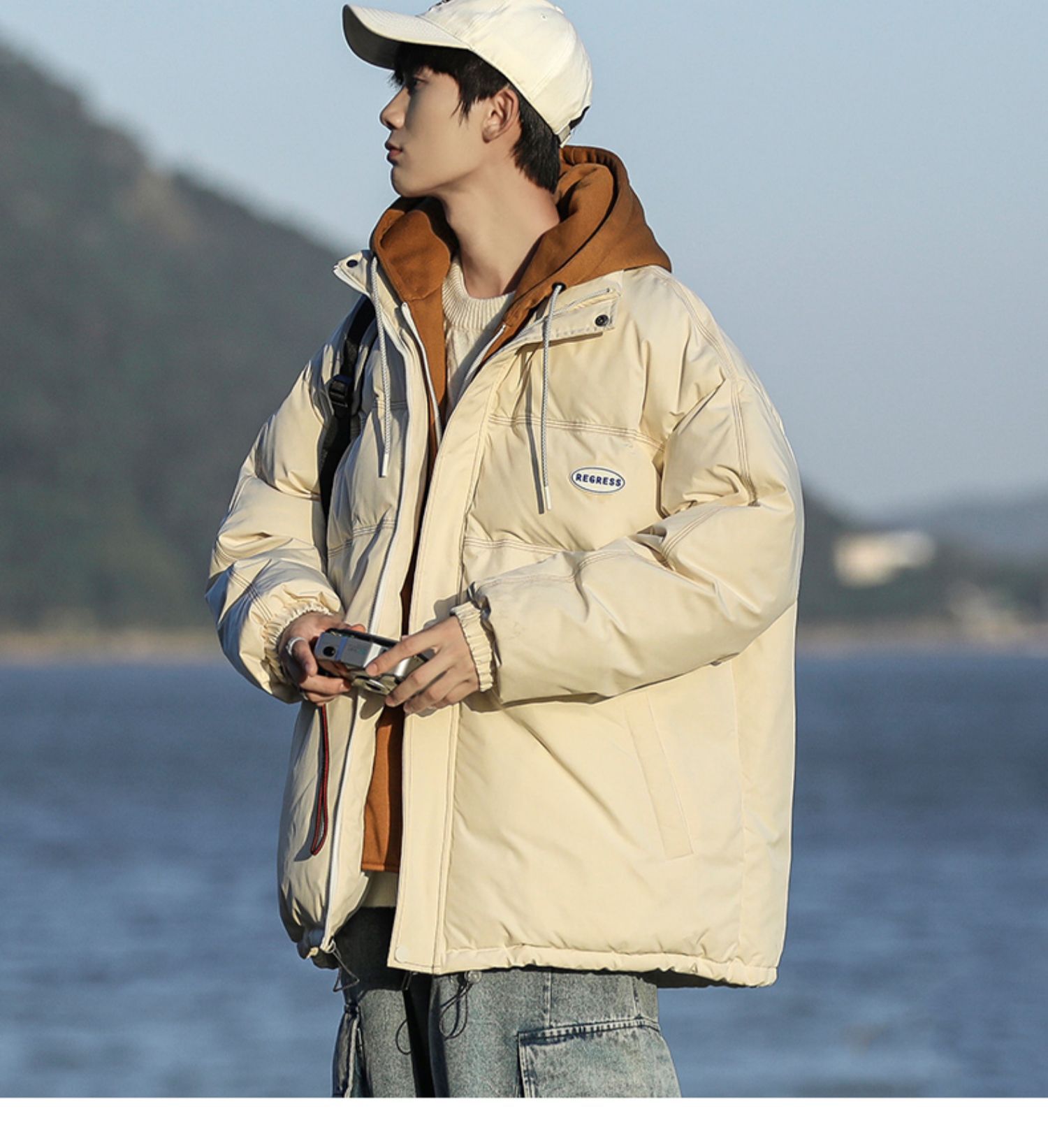 NASA 겨울 남성면 패딩 코트 가짜 투피스 후드면 패딩 재킷 느슨한 두꺼운 따뜻한 학생면 패딩 재킷 패션스토어 가기