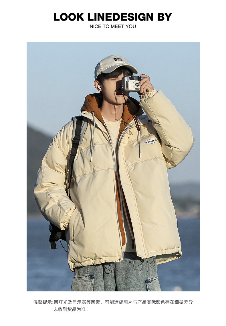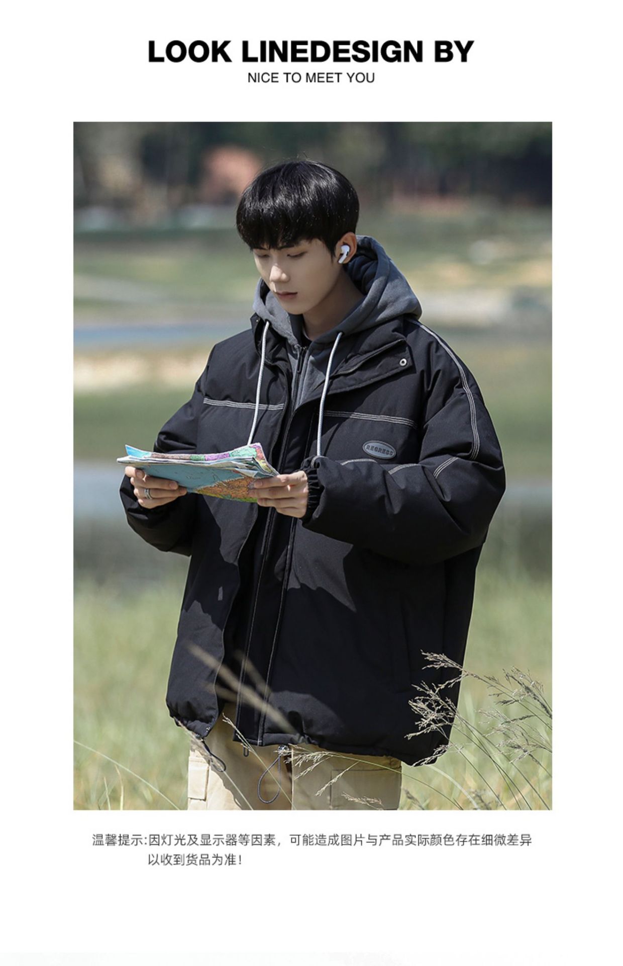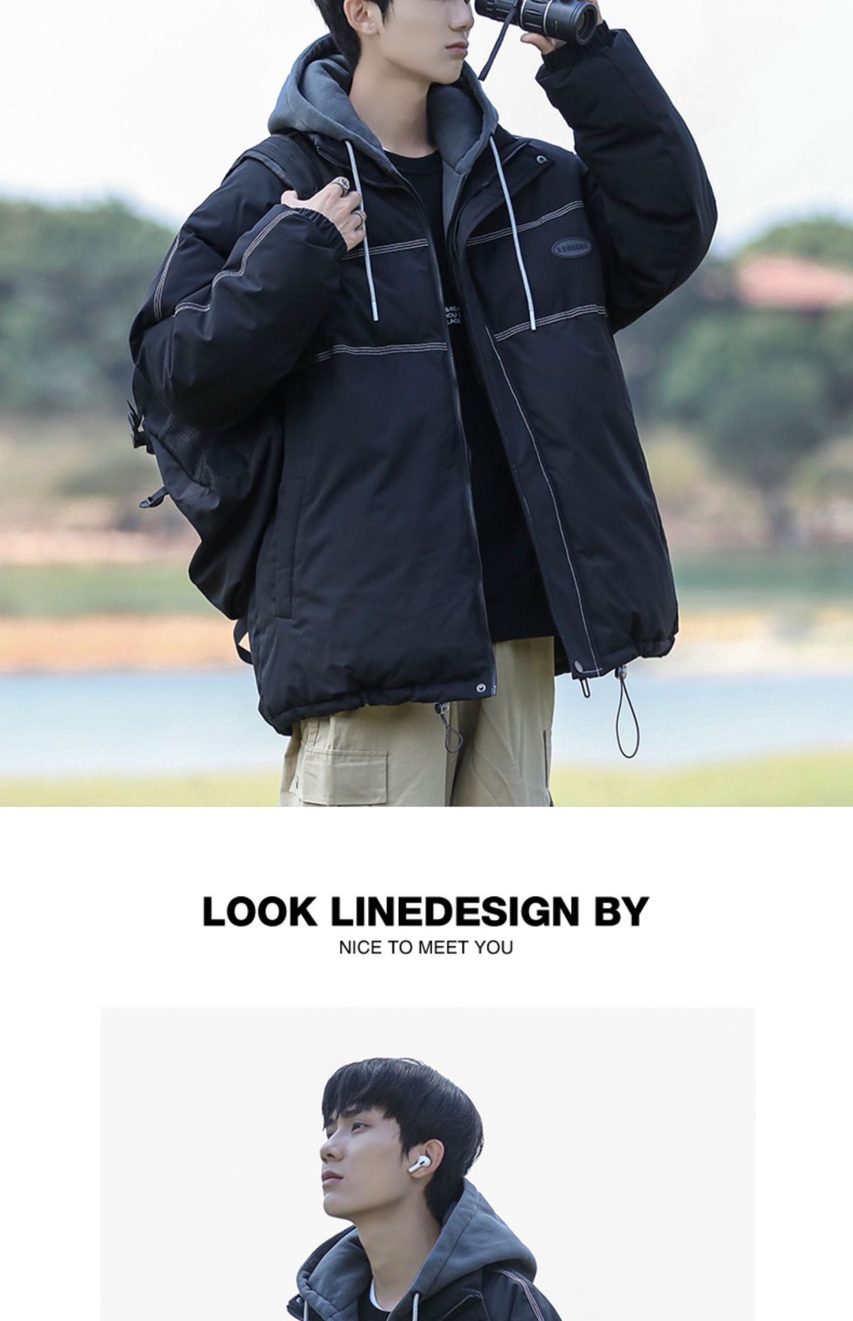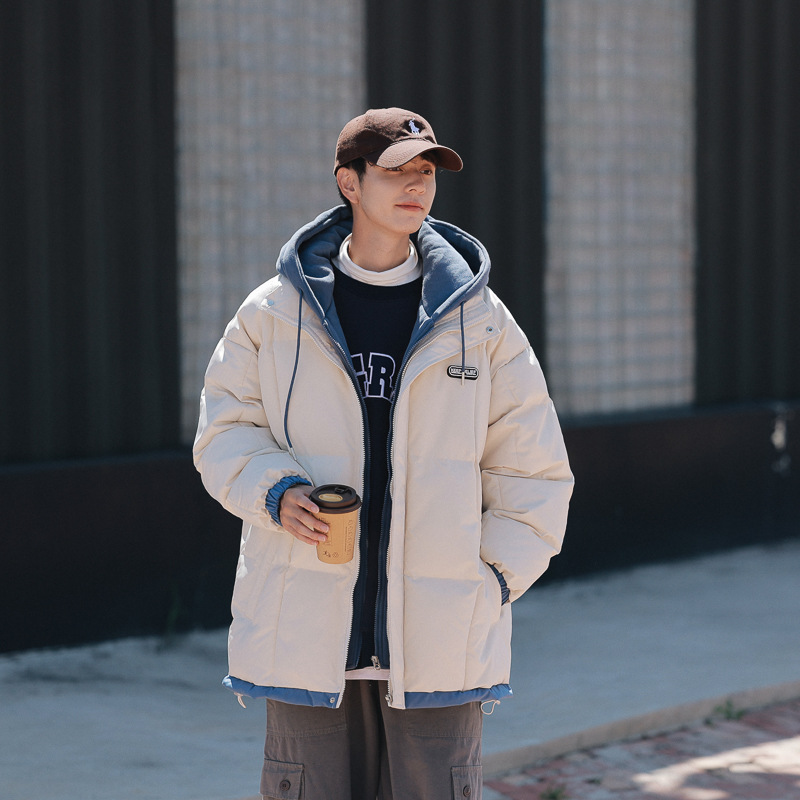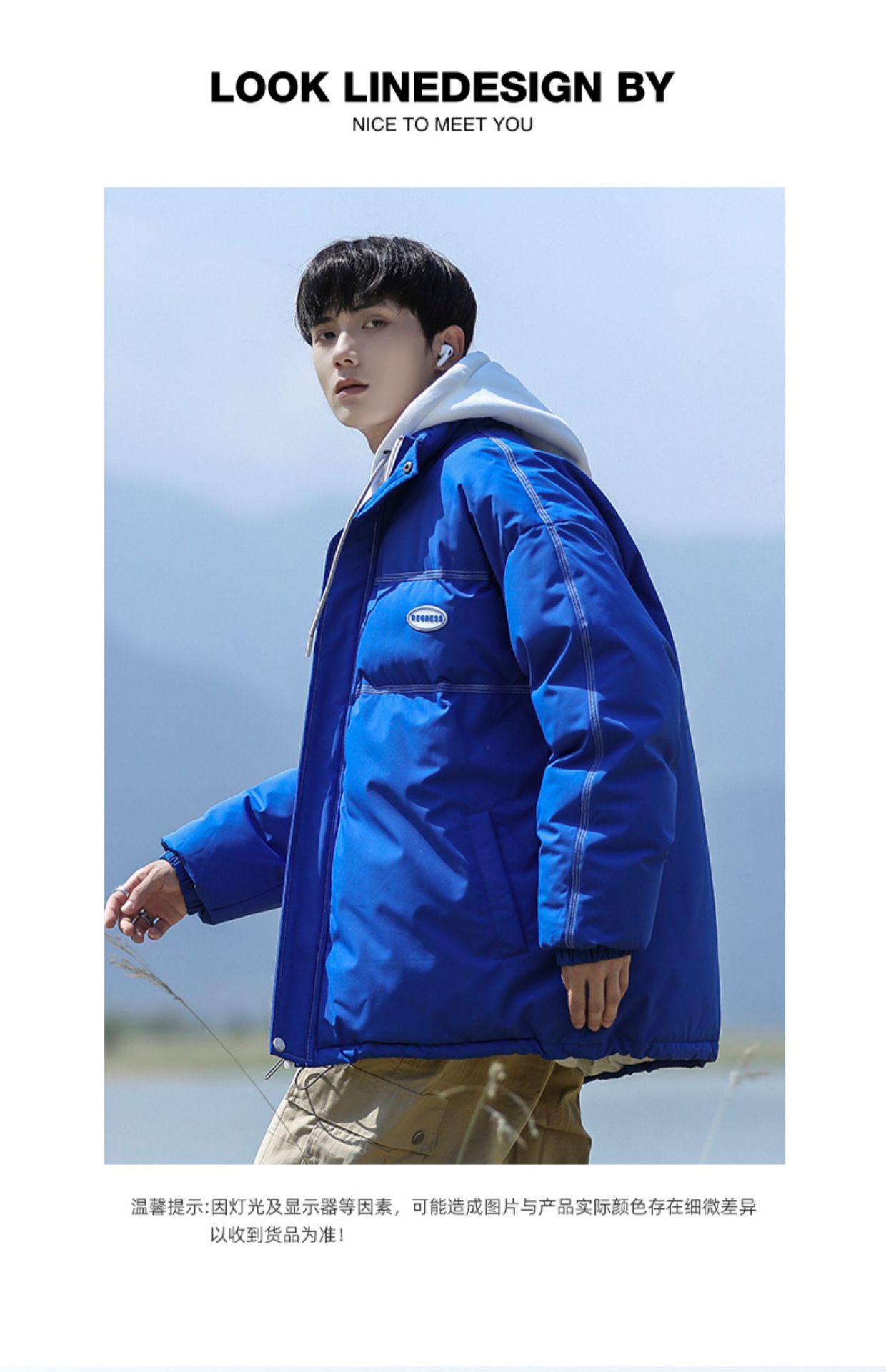NASA 겨울 남성면 패딩 코트 가짜 투피스 후드면 패딩 재킷 느슨한 두꺼운 따뜻한 학생면 패딩 재킷 패션스토어 가기