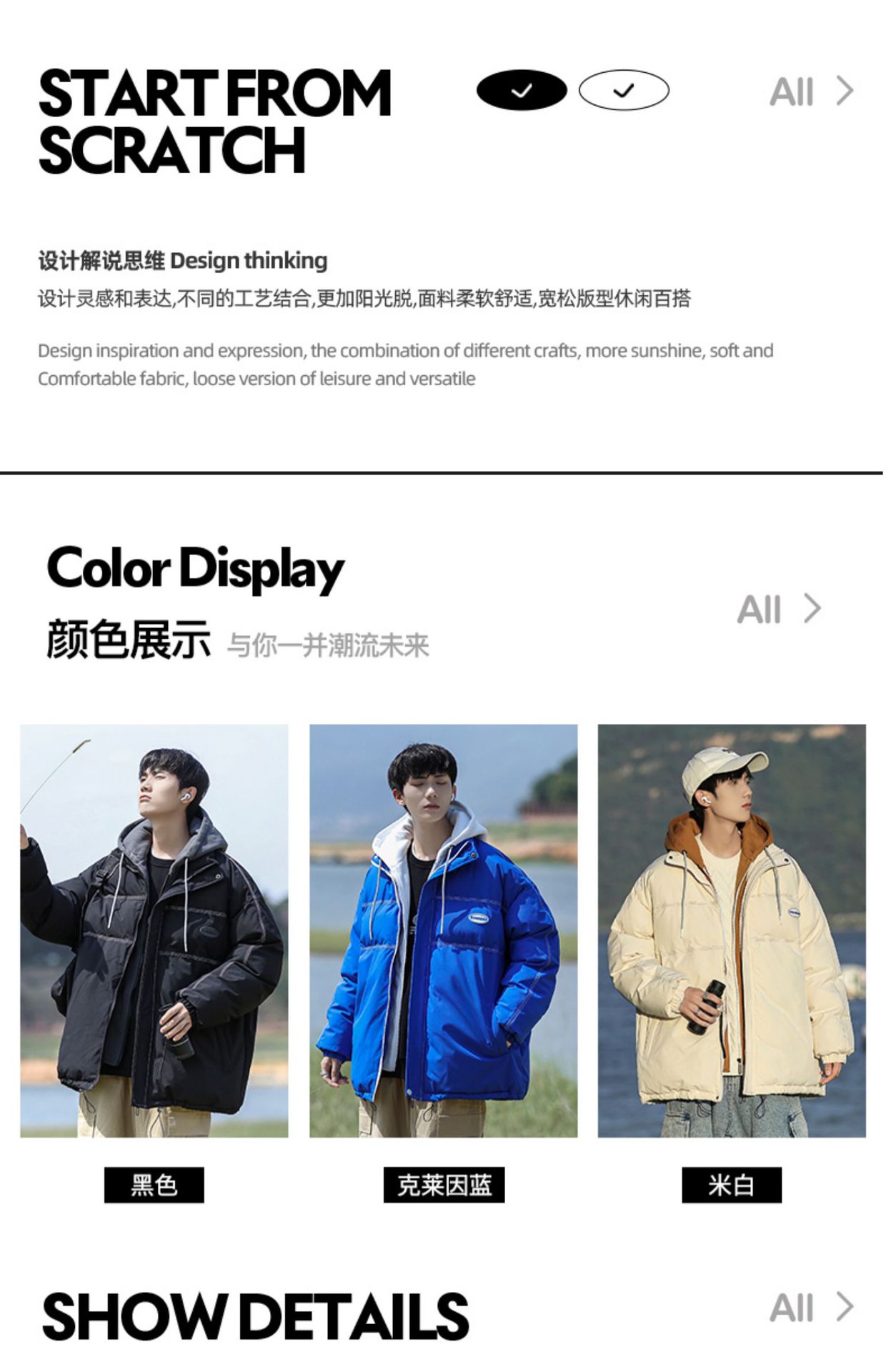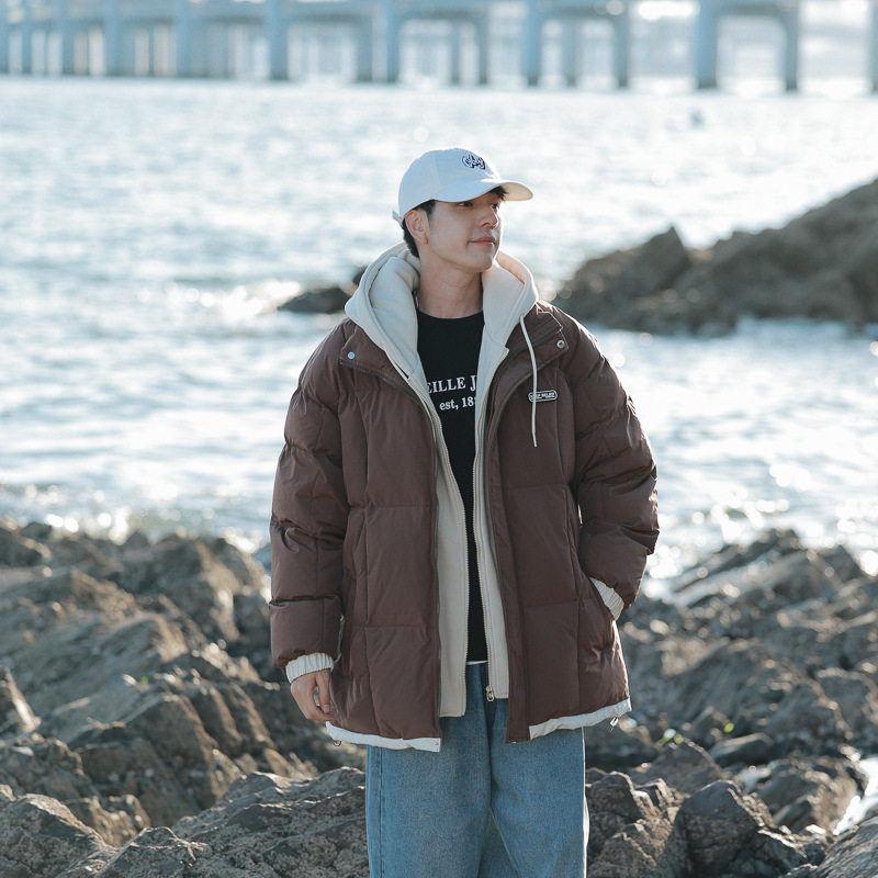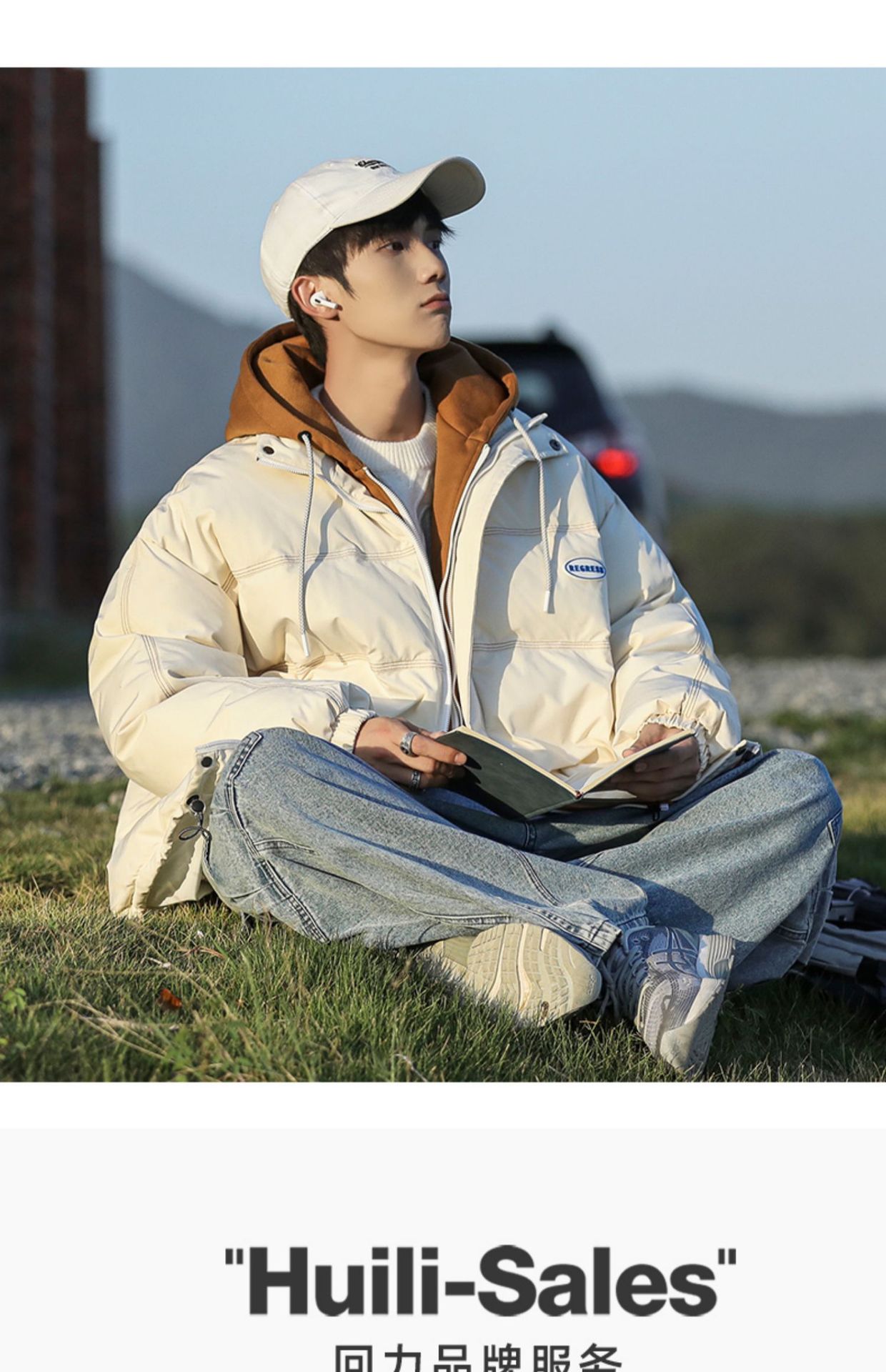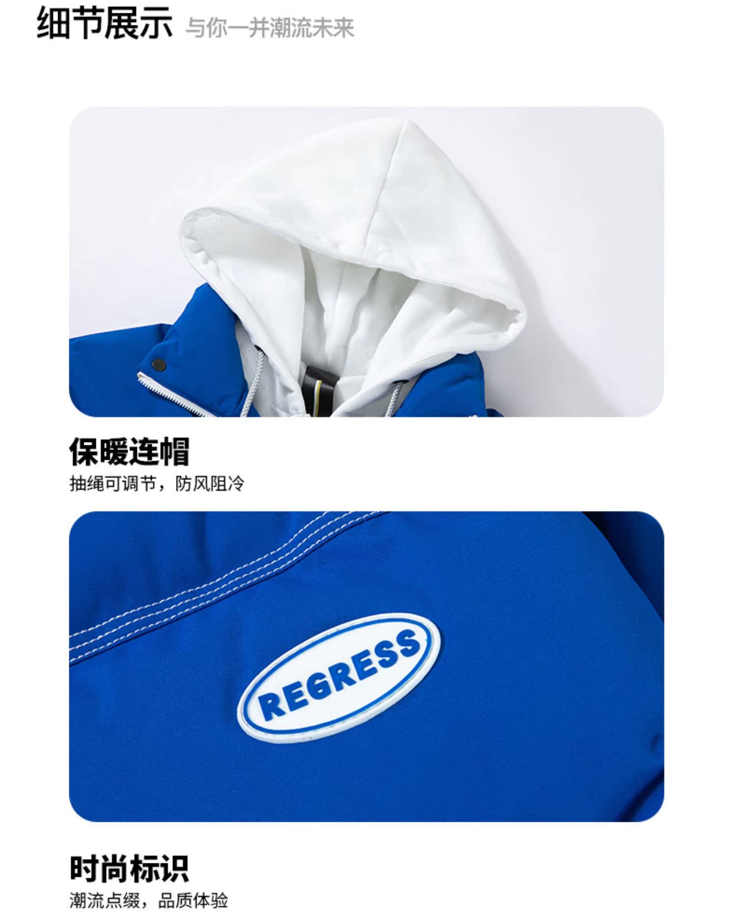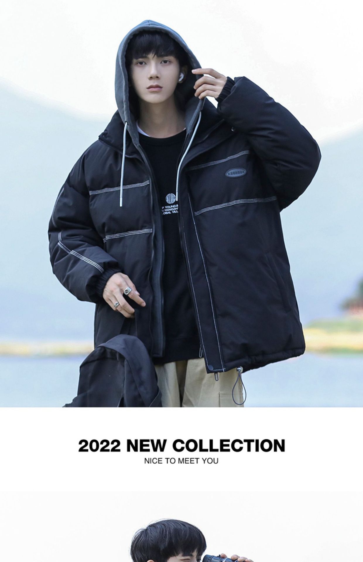 NASA 겨울 남성면 패딩 코트 가짜 투피스 후드면 패딩 재킷 느슨한 두꺼운 따뜻한 학생면 패딩 재킷 패션스토어 가기