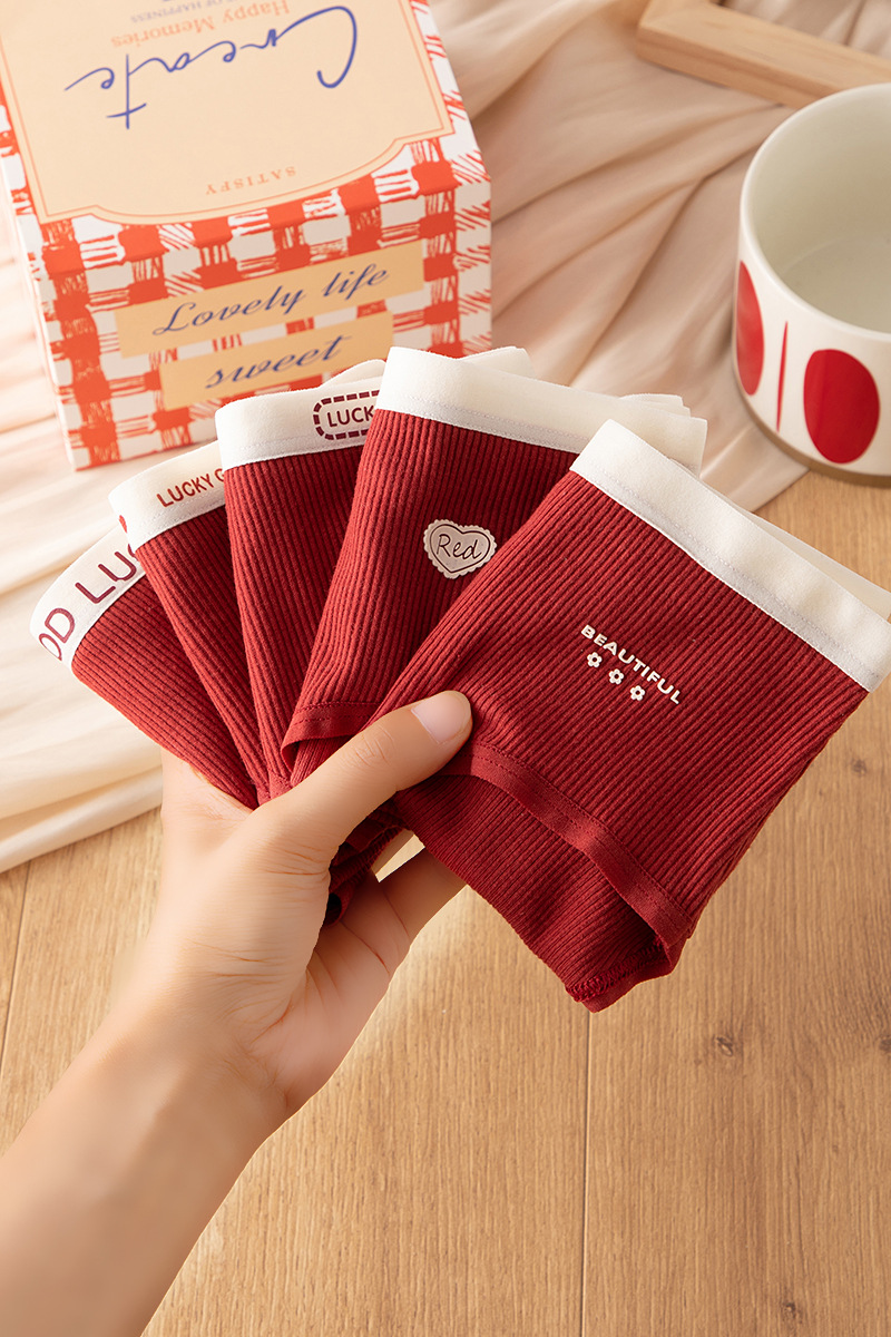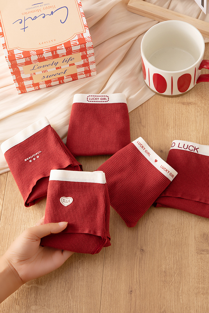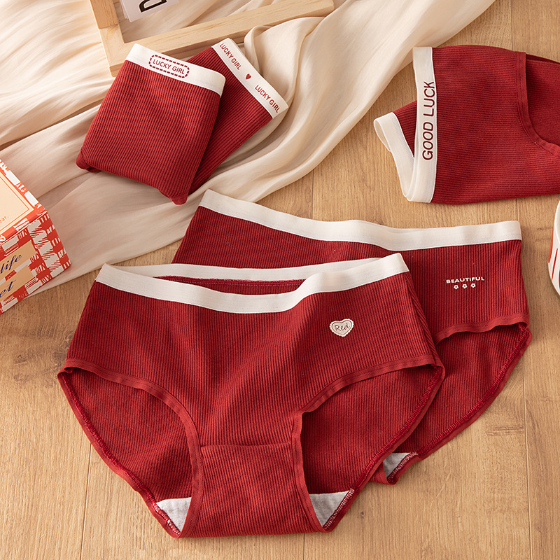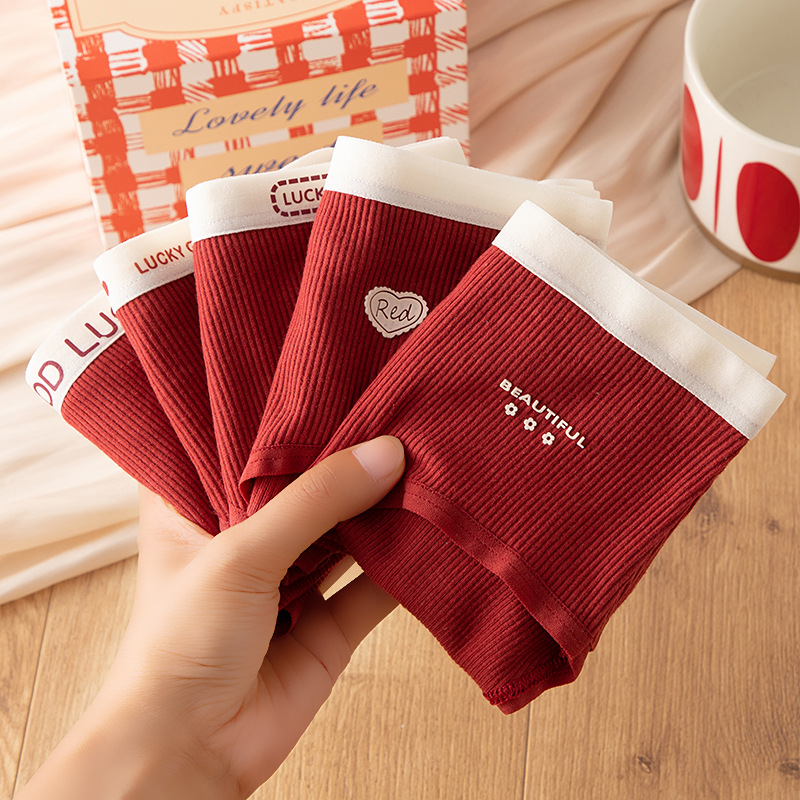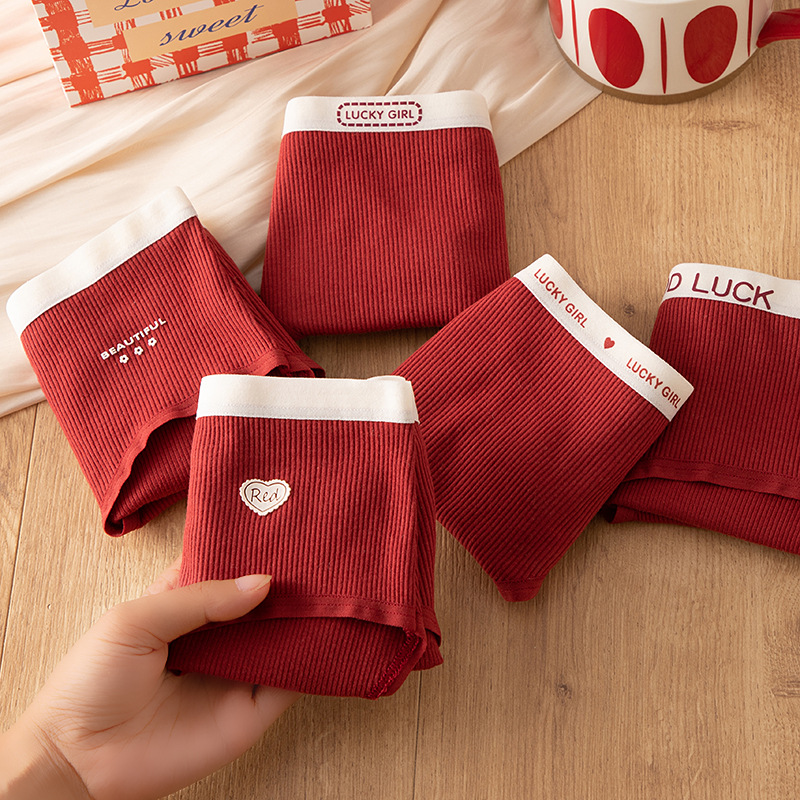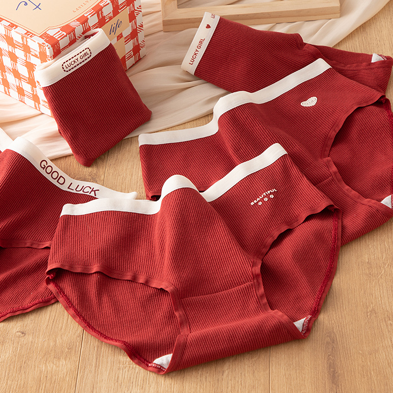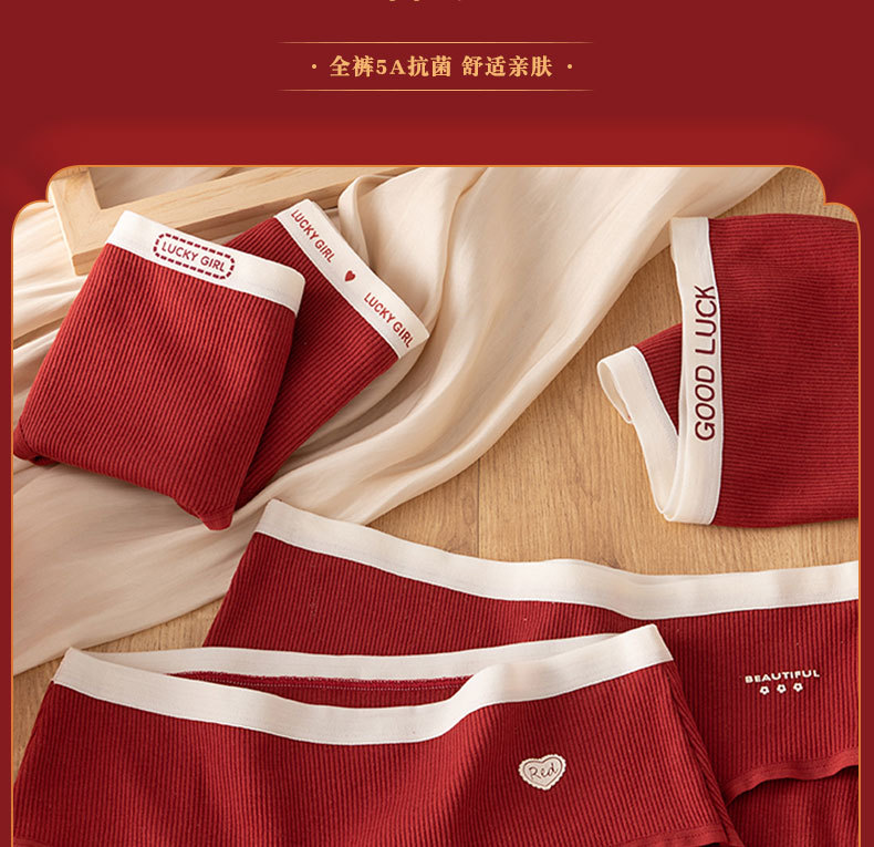 출생 년 빨간 속옷 여성면 클래스 A 아기 코튼 풀 바지 5A 항균 가랑이 중반 허리 삼각형 반바지 결혼식