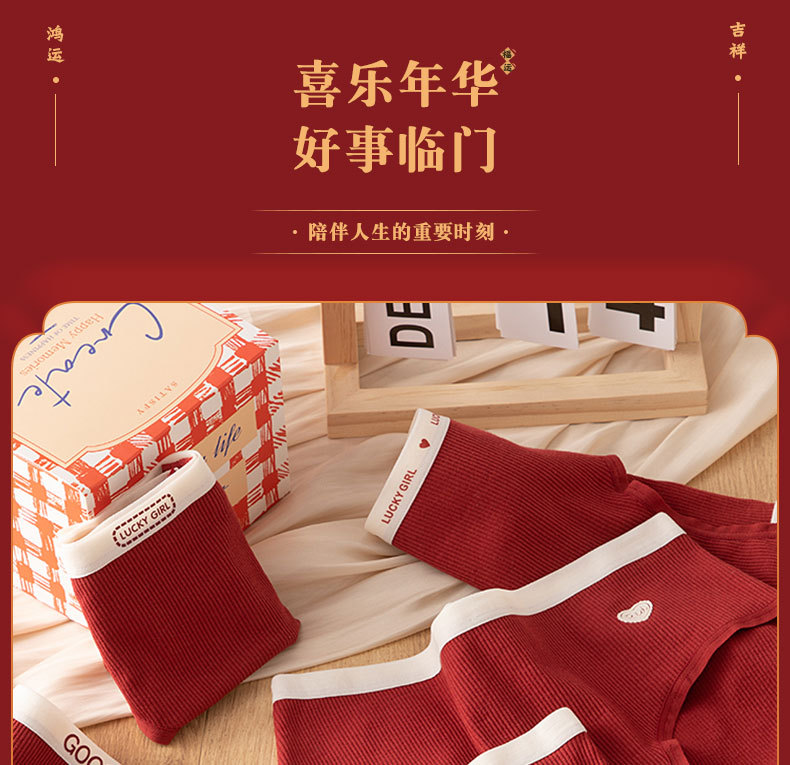 출생 년 빨간 속옷 여성면 클래스 A 아기 코튼 풀 바지 5A 항균 가랑이 중반 허리 삼각형 반바지 결혼식스토어 가기