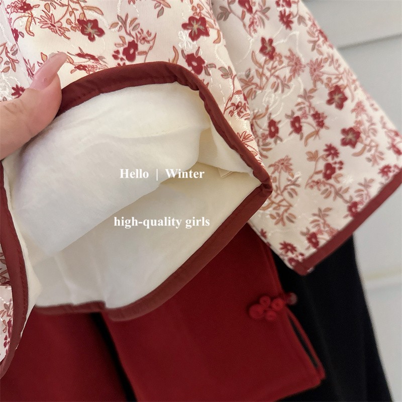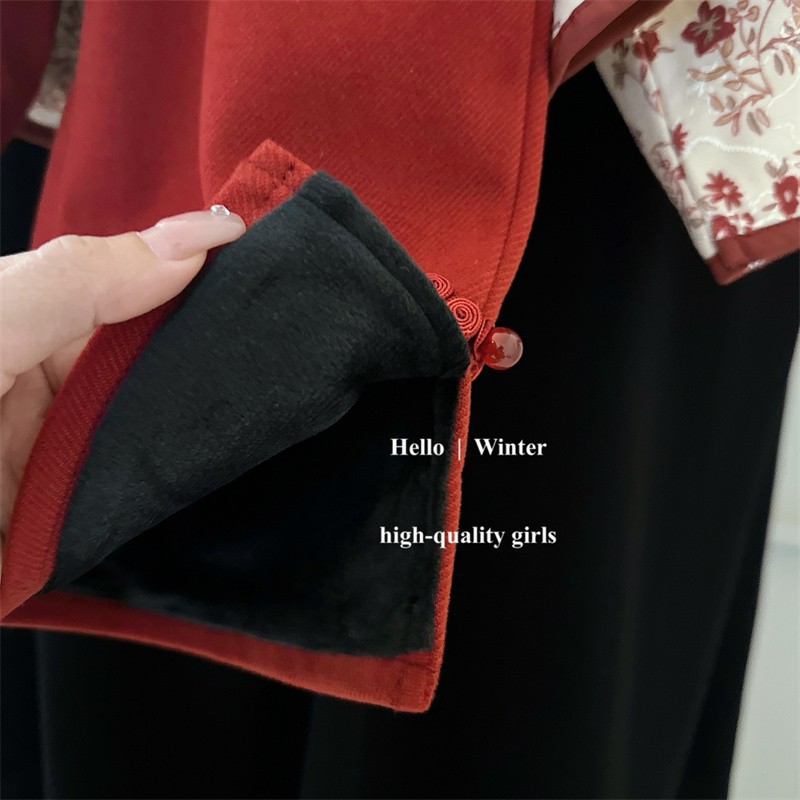 스팟 걸의 겨울 벨벳 당나라 세트 신년 봉사 세트 붉은 한 살 세트 아기 소녀의 가을 · 겨울 한푸 청삼