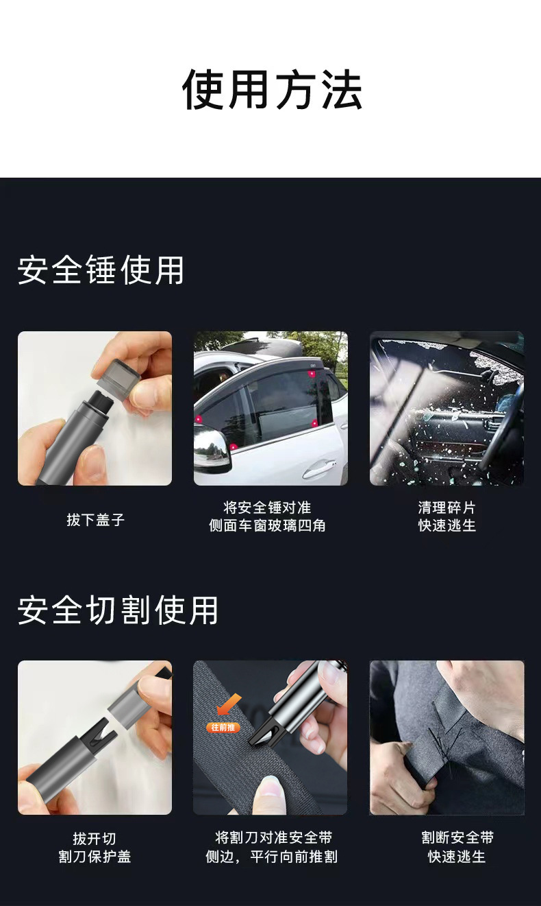 원산지 공장 알루미늄 합금 차량용 미니 창문 파괴기 안전벨트 일체형 탈출 도구 도매스토어 가기