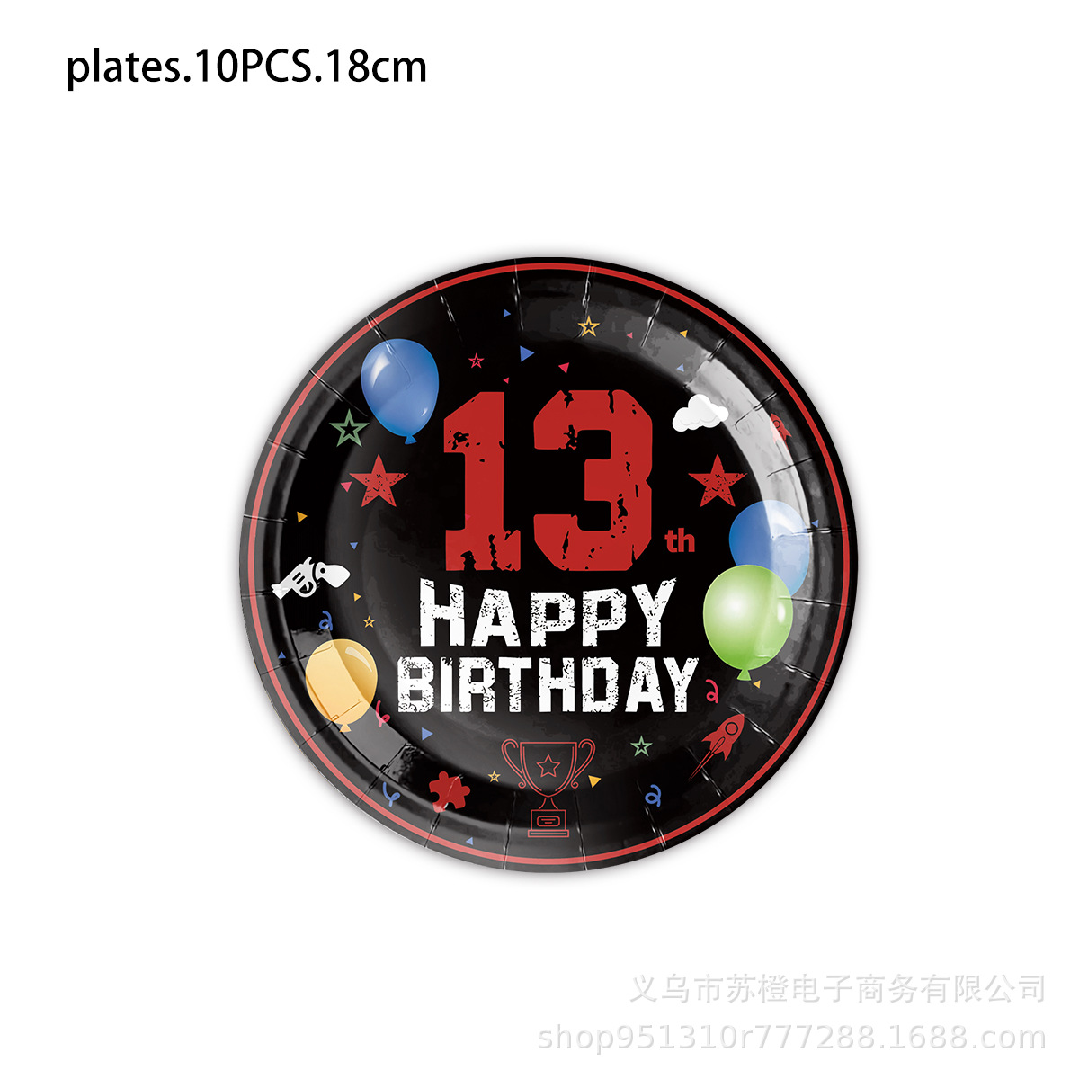 국경 간 핫 세일 13 세 소년 블랙과 레드 디지털 테마 세트 파티 용품 파티 준비 식기 용품 조직스토어 가기