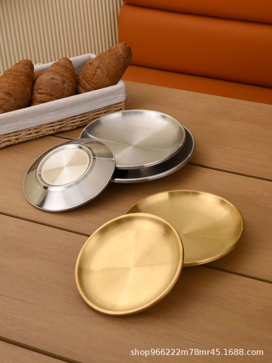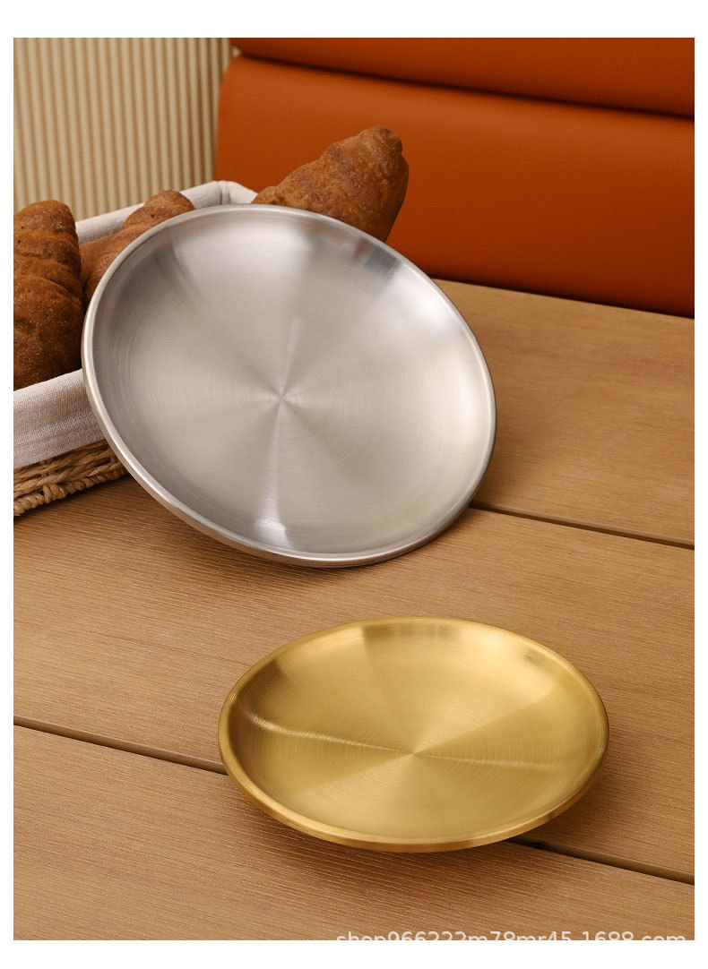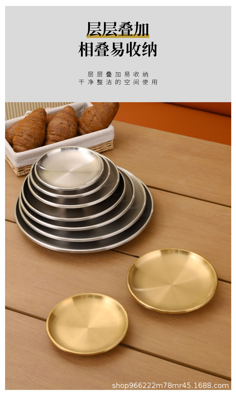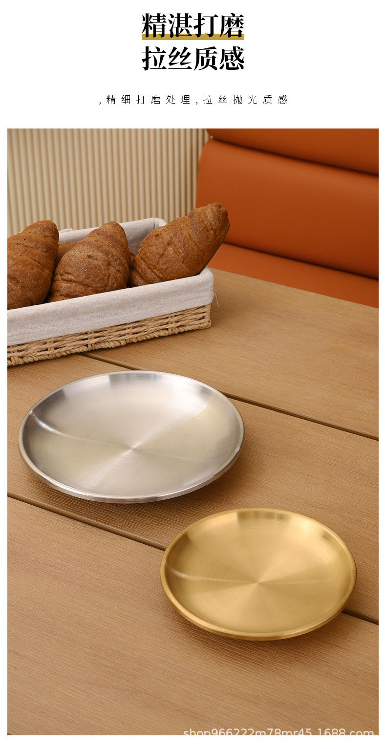 한국식 스테인레스 스틸 플레이트 더블 레이어 황금 접시 과일 플레이트 서양 스테이크 플레이트 상업 바베큐 레스토랑 식기스토어 가기