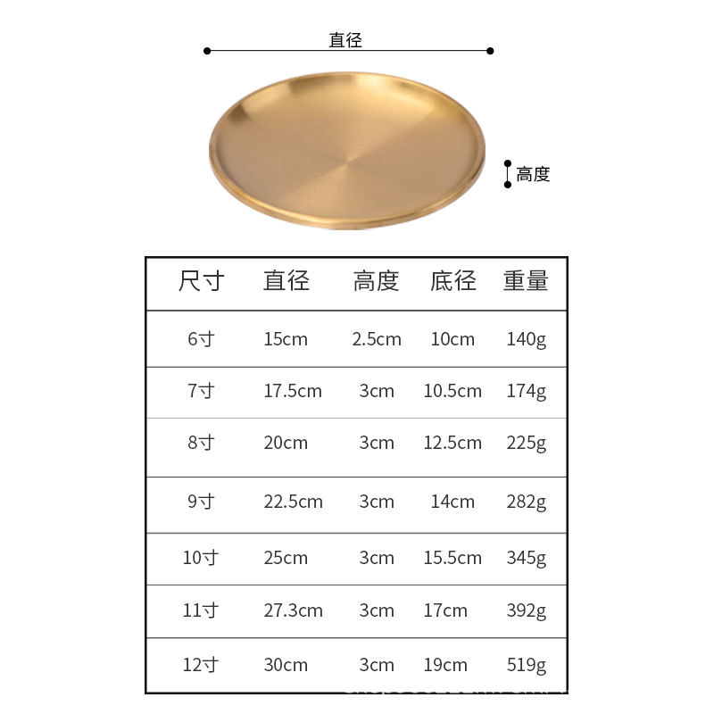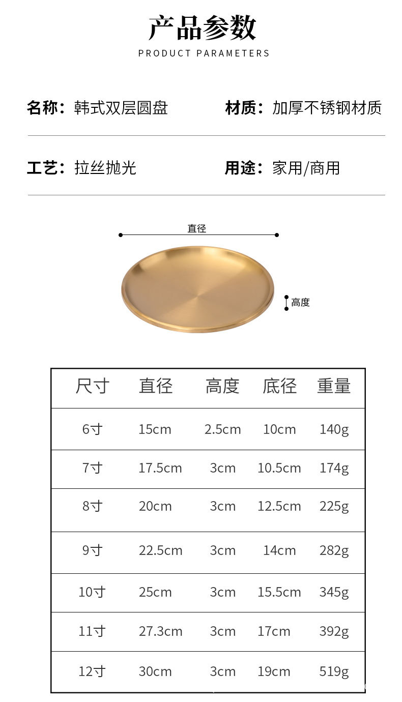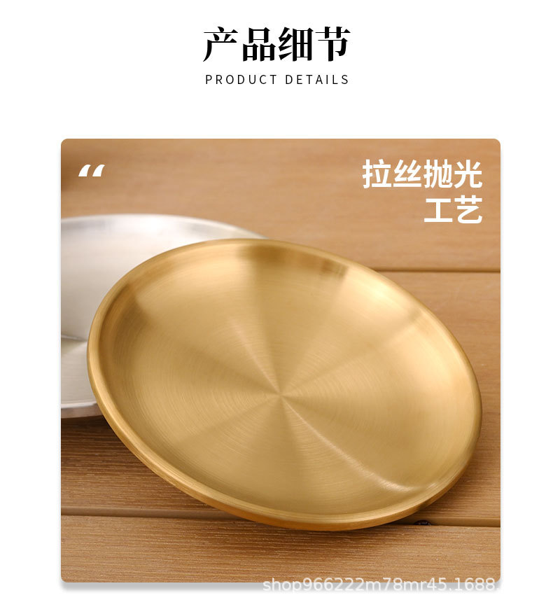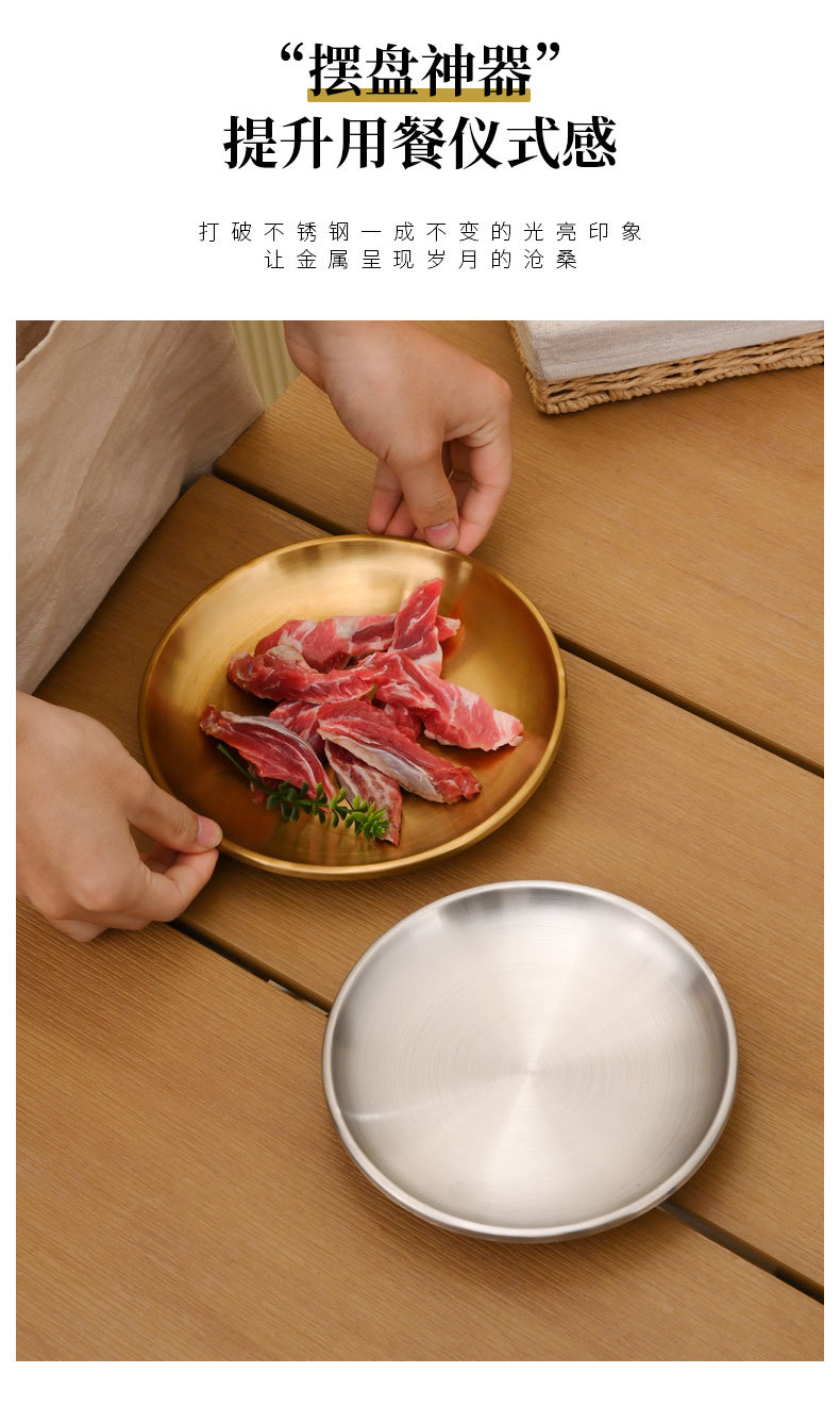 한국식 스테인레스 스틸 플레이트 더블 레이어 황금 접시 과일 플레이트 서양 스테이크 플레이트 상업 바베큐 레스토랑 식기스토어 가기