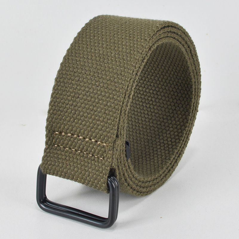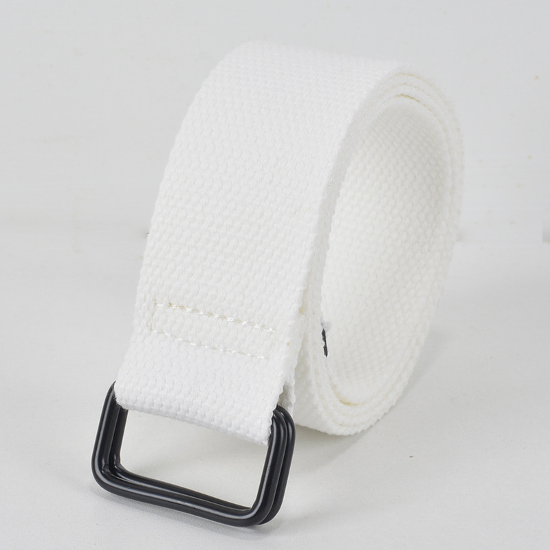 비 홀 펀치 프리 남녀 캔버스 벨트 더블 링 버클 학생 군사 훈련 벨트 남성 장식 더블 버클 짠 바지 벨트
