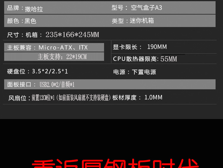 사하라 에어 박스 A3 데스크탑 컴퓨터 섀시 MATX 미니 데스크탑 가정용 소형 섀시 인클로저