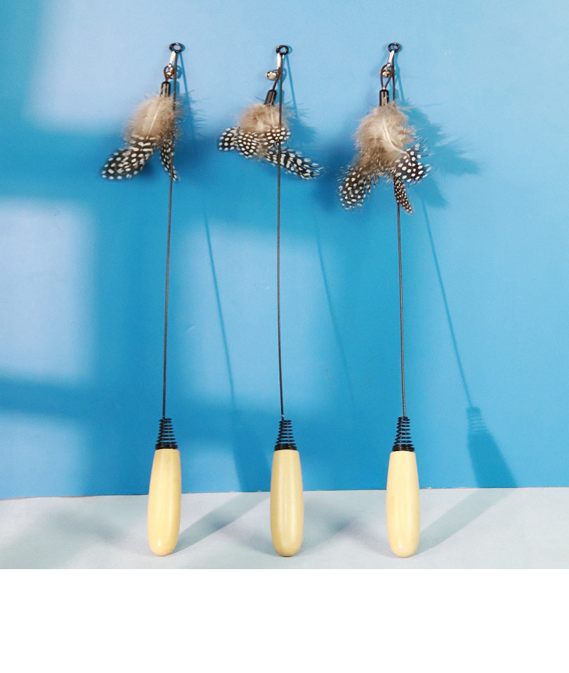 고양이 장난감 긴 막대 나무 손잡이 봄 강철 철사 고양이 막대 교체 가능한 깃털 벨 소리 물린 저항 고양이 장난감스토어 가기