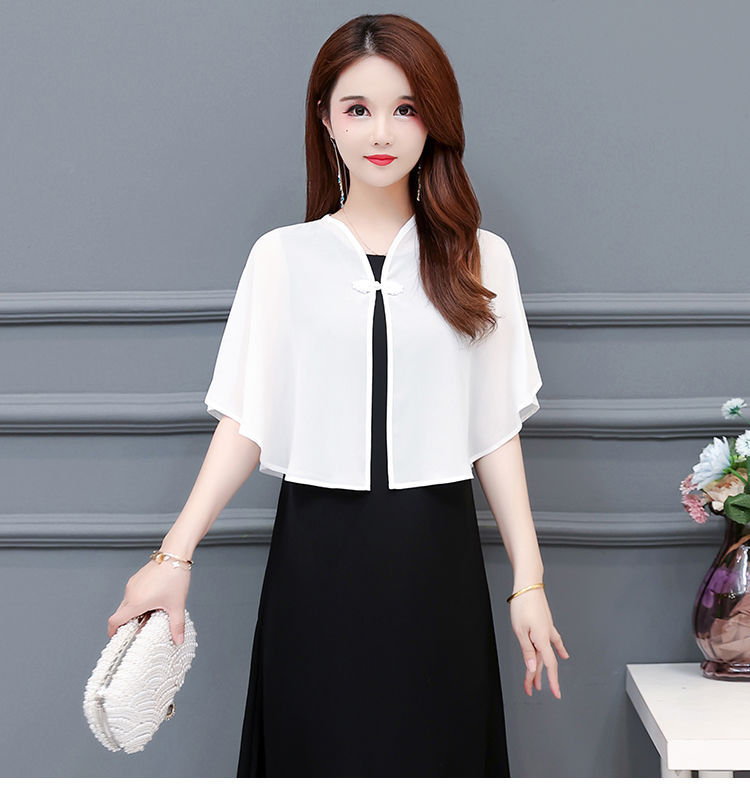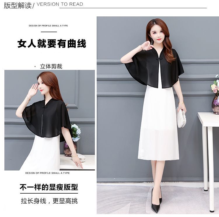 선 스크린 의류 시폰 카디건 얇은 여성용 슬립 스커트 외부 블라우스 툴레 탑 여름 케이프 숄 작은 허리 코트