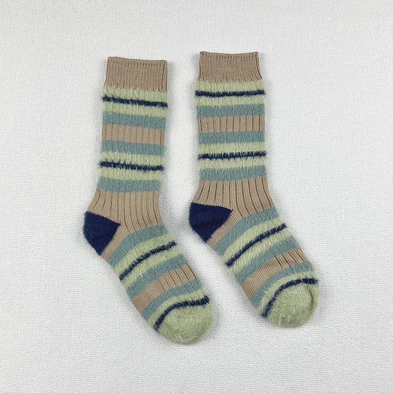 에 한국 스타일 두꺼운 라인 스트라이프 컬러 매칭 콘트라스트 컬러 모조 밍크 모피 양말 달콤한 가을과 겨울 따뜻한 여성의 중간 송아지 길이 양말
