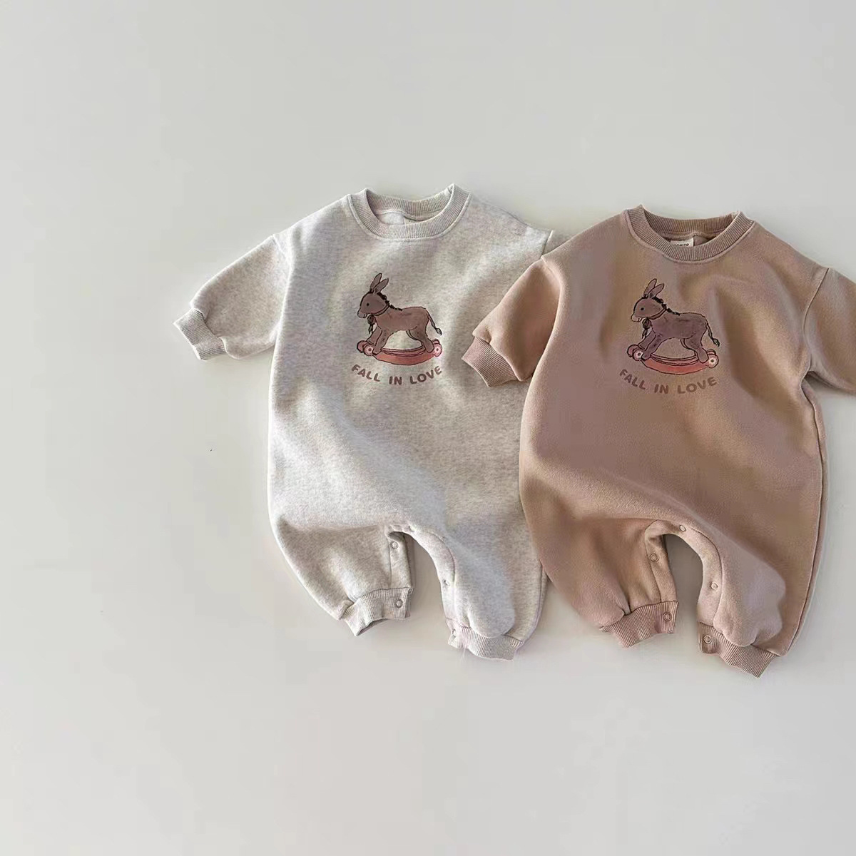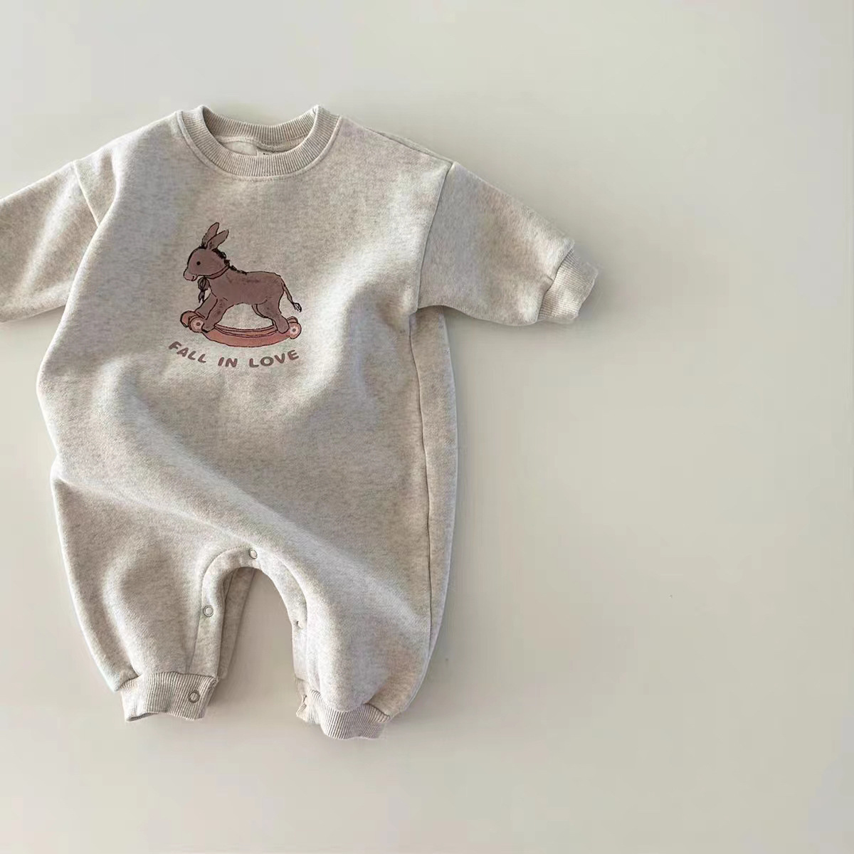 Ins 한국식 봄과 가을 아기 소년과 소녀 만화 동물 인쇄 등반 세트 신생아 소프트 코튼 토끼 옷 유행 의상스토어 가기